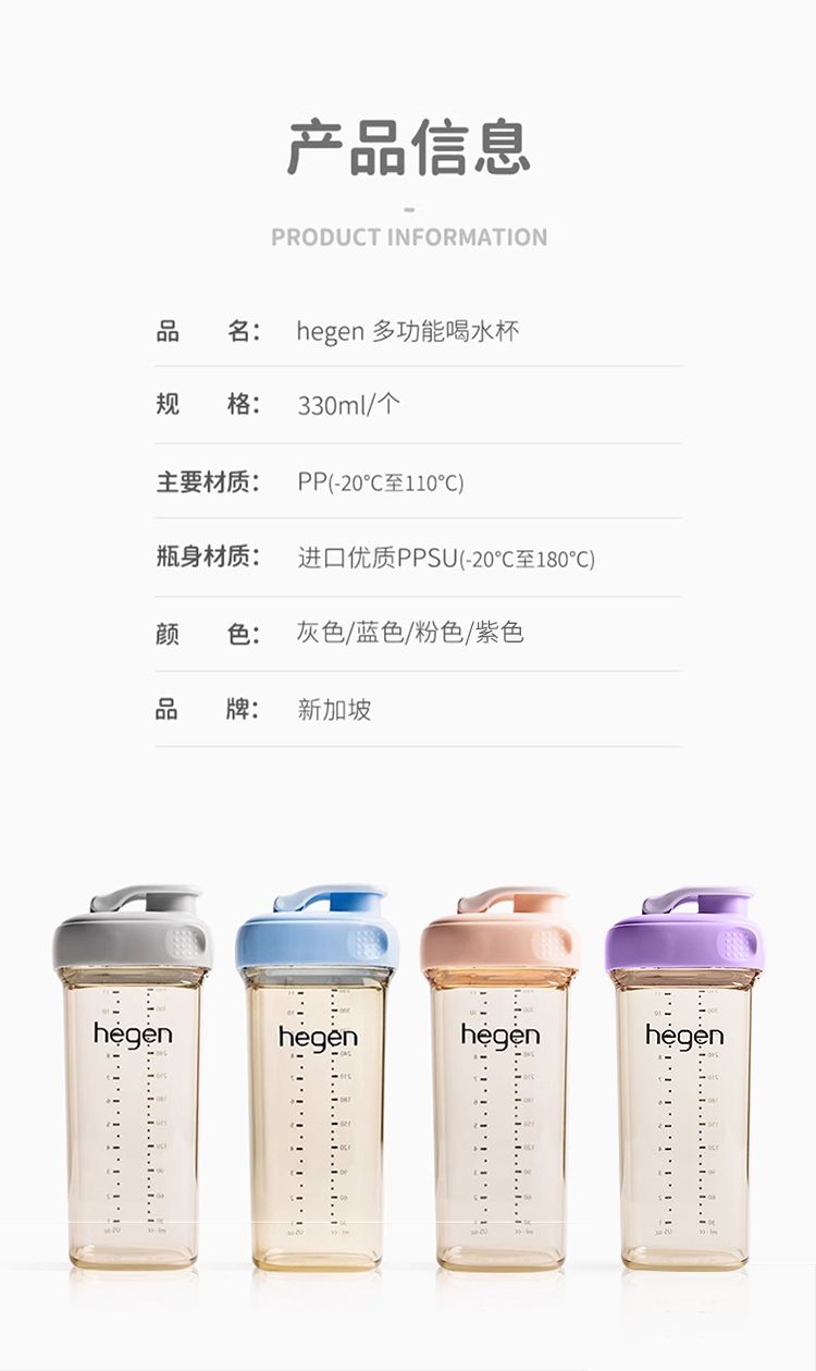 商品名称:hegen 新加坡进口PPSU奶瓶宽口径多功能亲子喝水杯 330ml