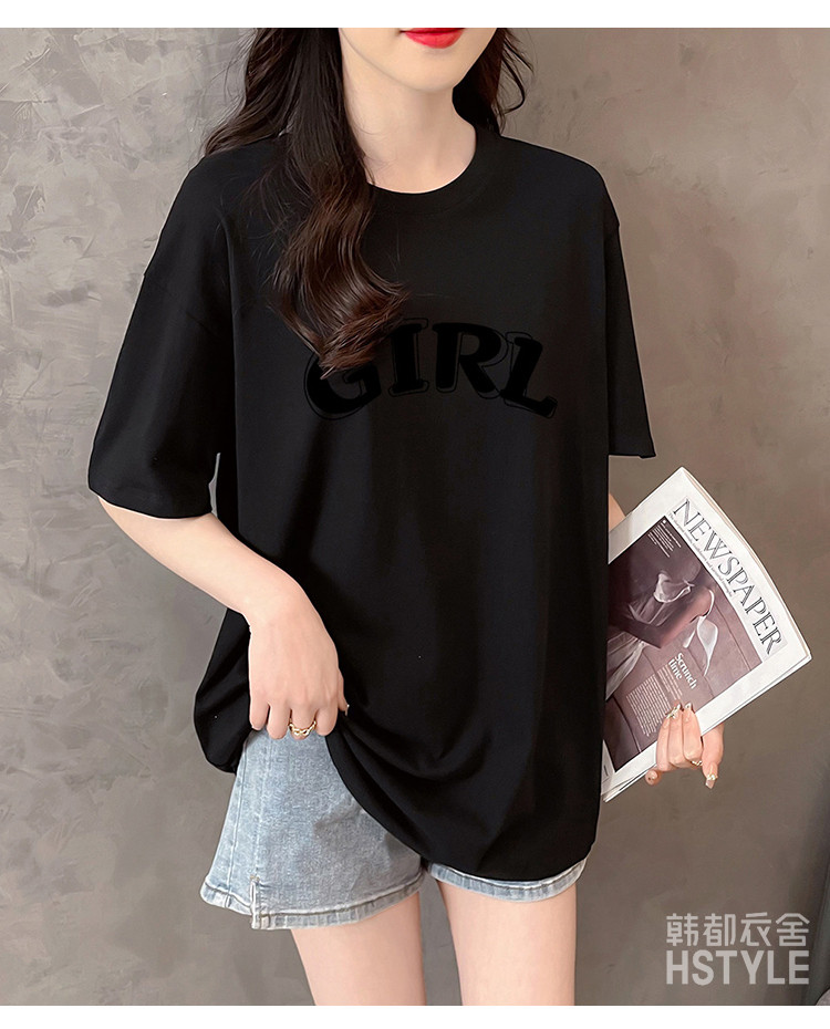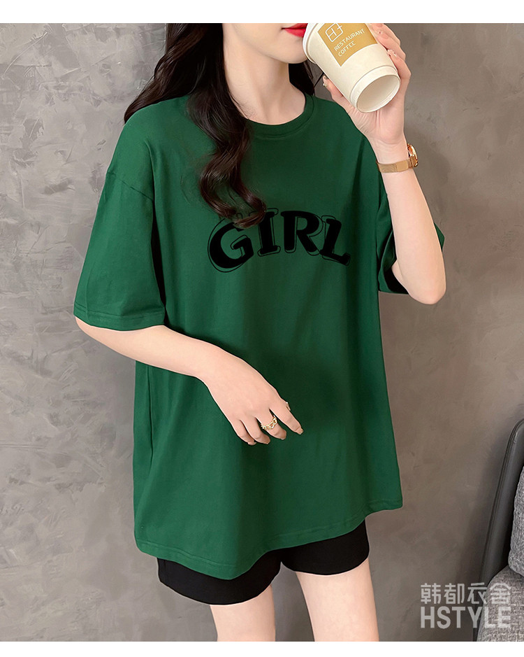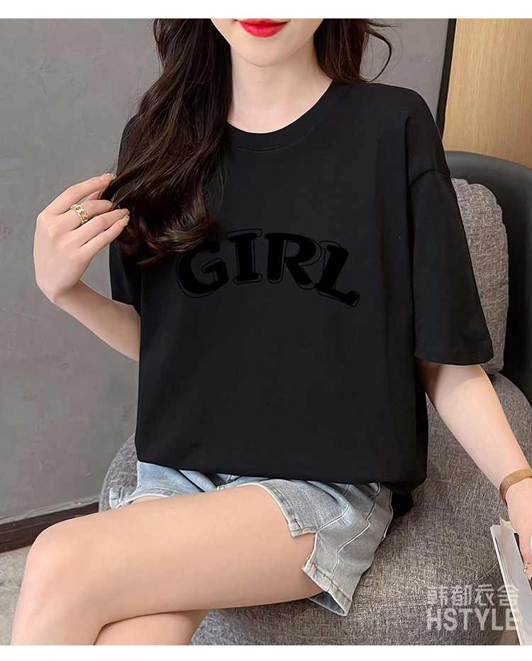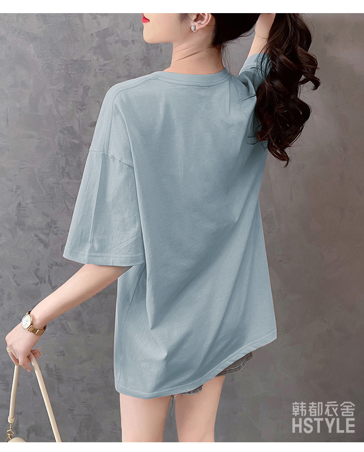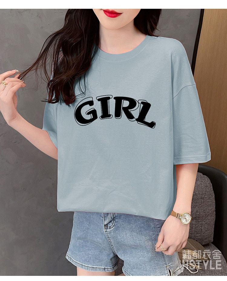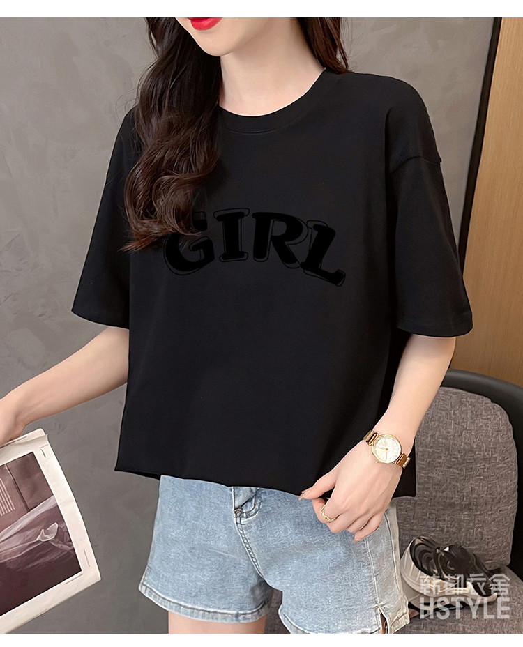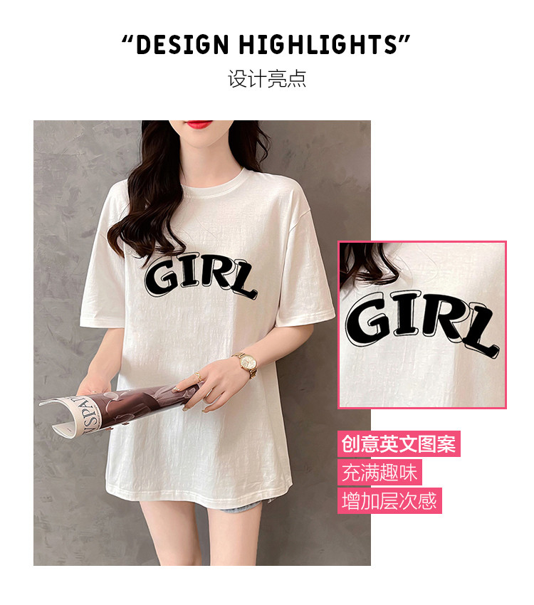 商品名称:夏季款女式百搭纯棉时尚印花通勤短袖T恤 071051