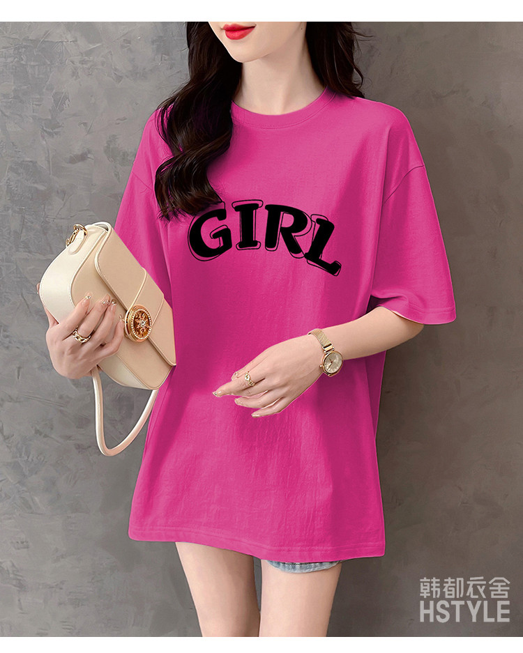 夏季款女式百搭纯棉时尚印花通勤短袖T恤 071051