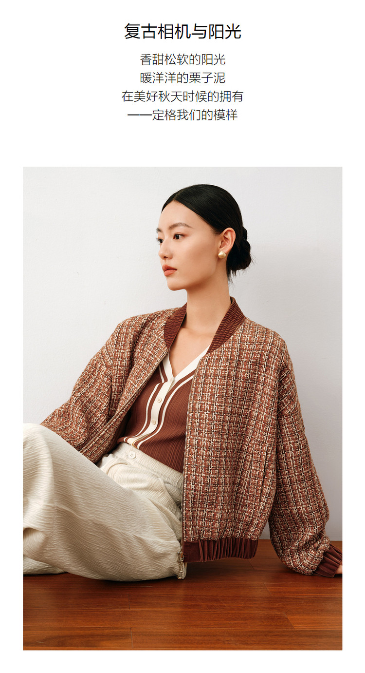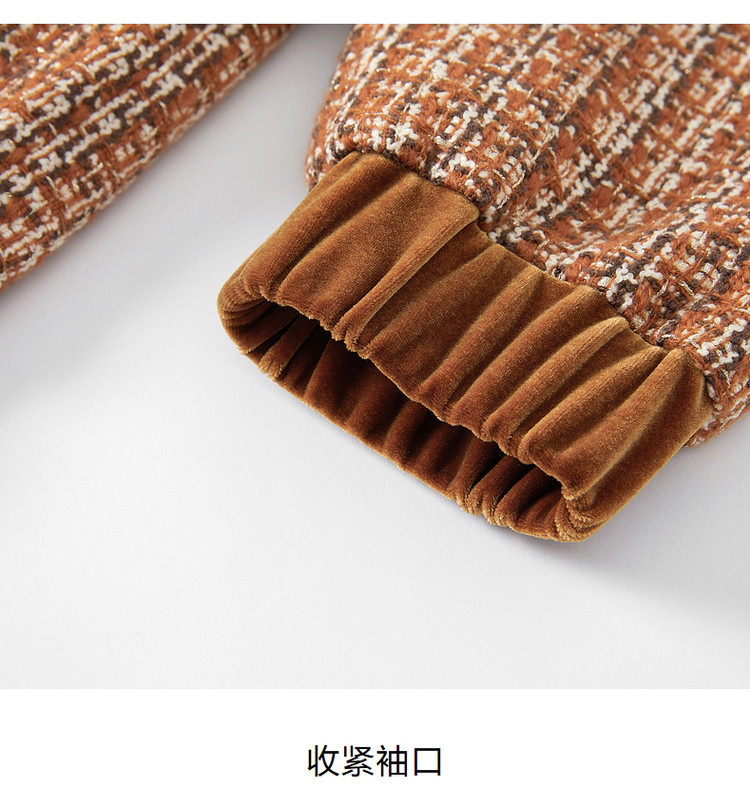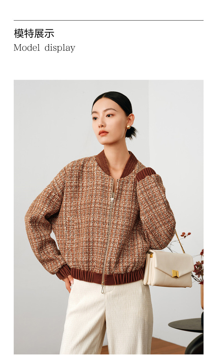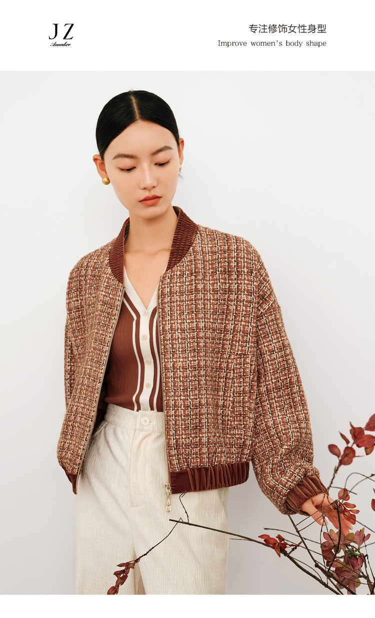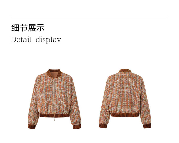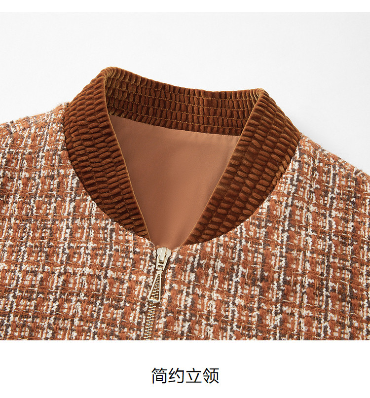 商品名称:玖姿旗下安娜蔻系列长袖休闲拼接粗花呢棒球服外套女秋季 943116