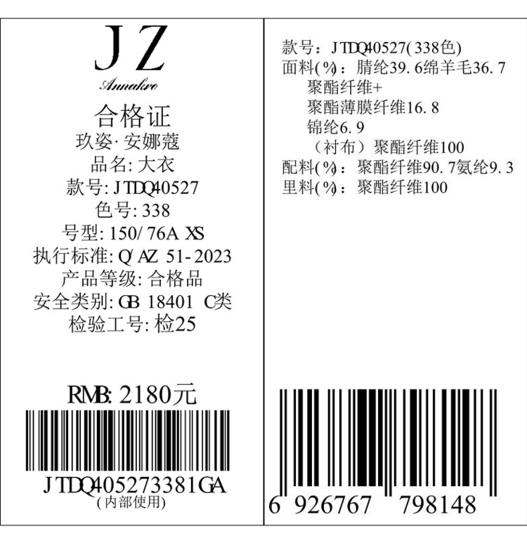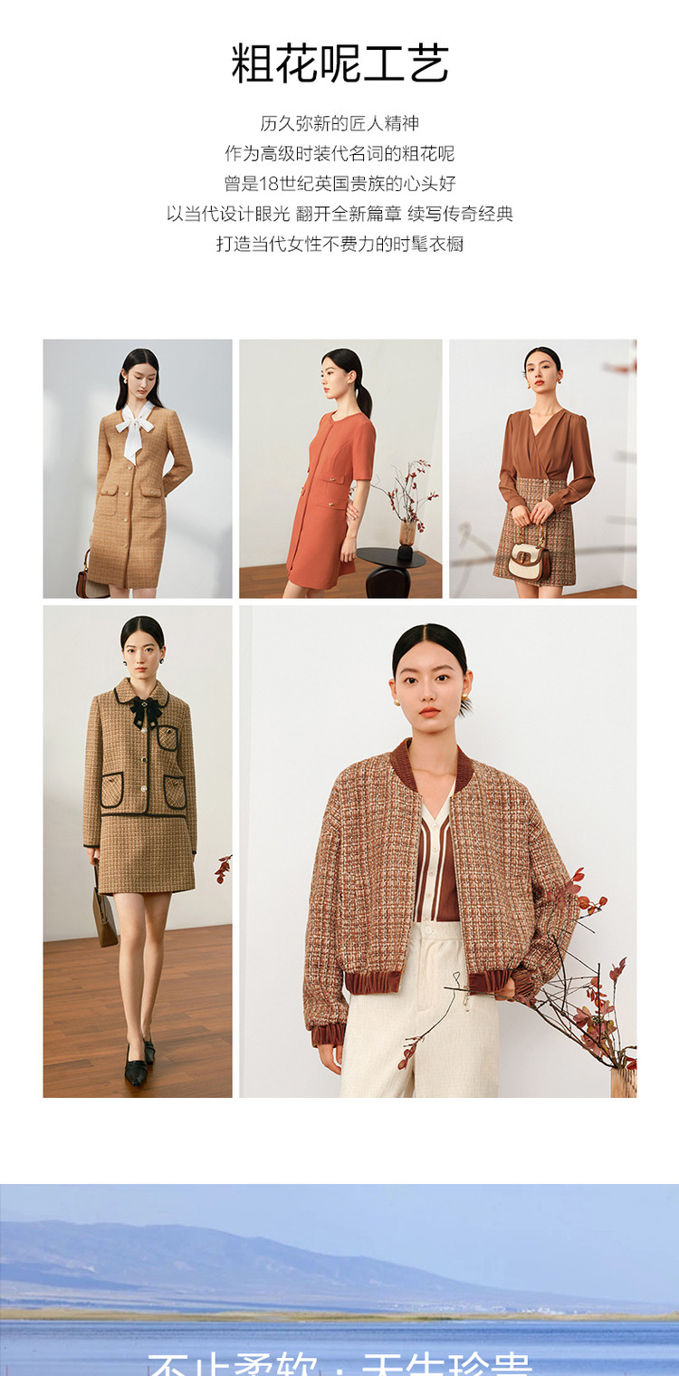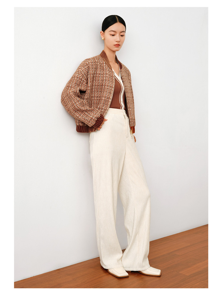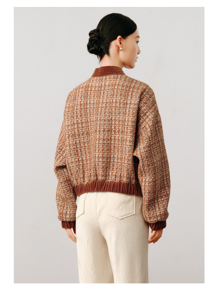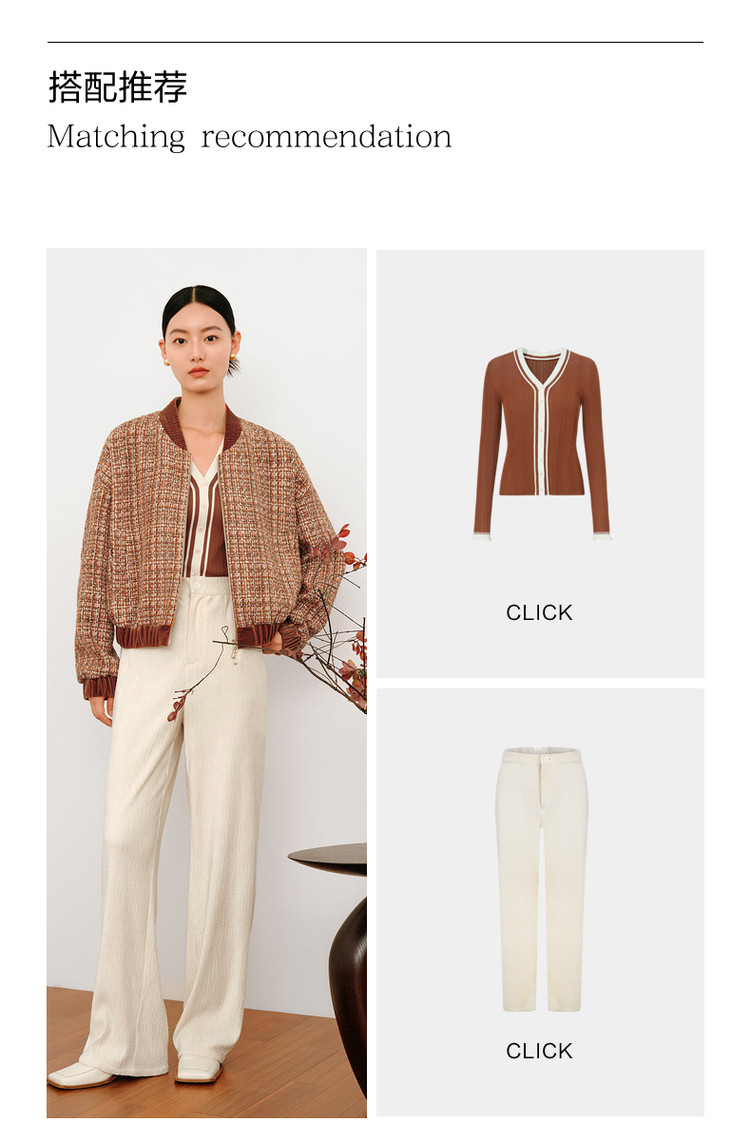 商品名称:玖姿旗下安娜蔻系列长袖休闲拼接粗花呢棒球服外套女秋季 943116