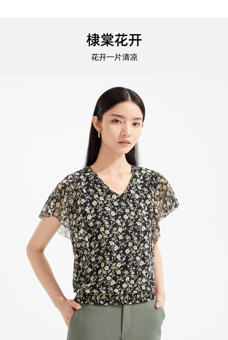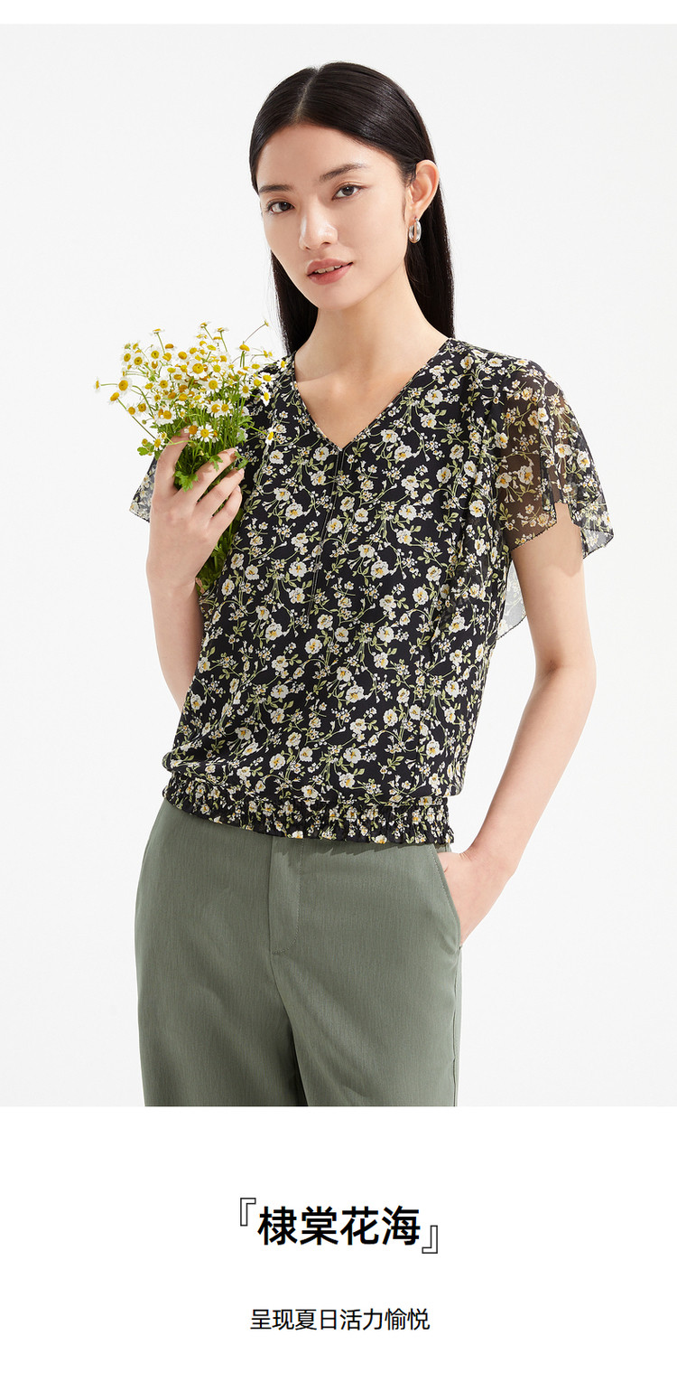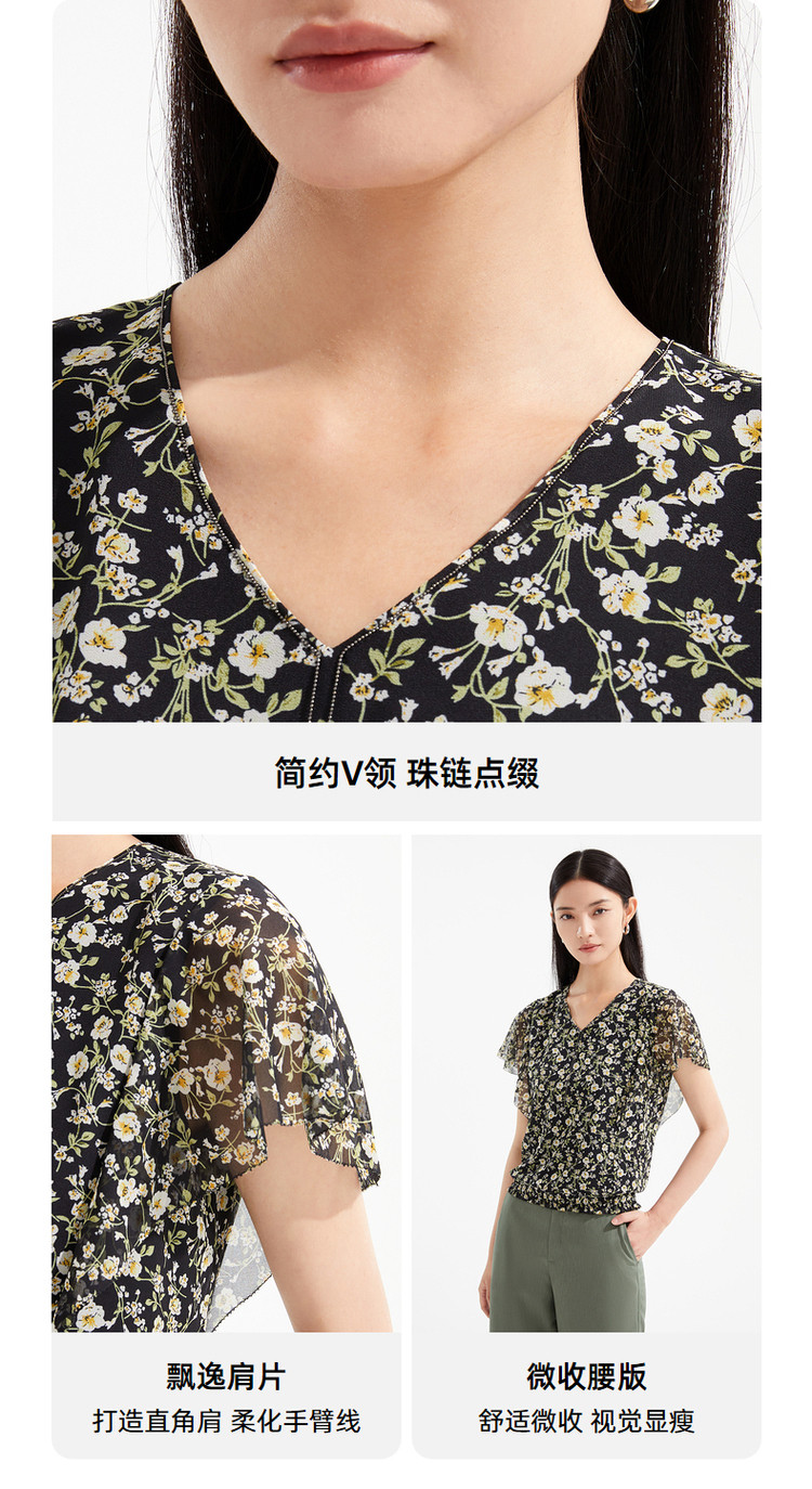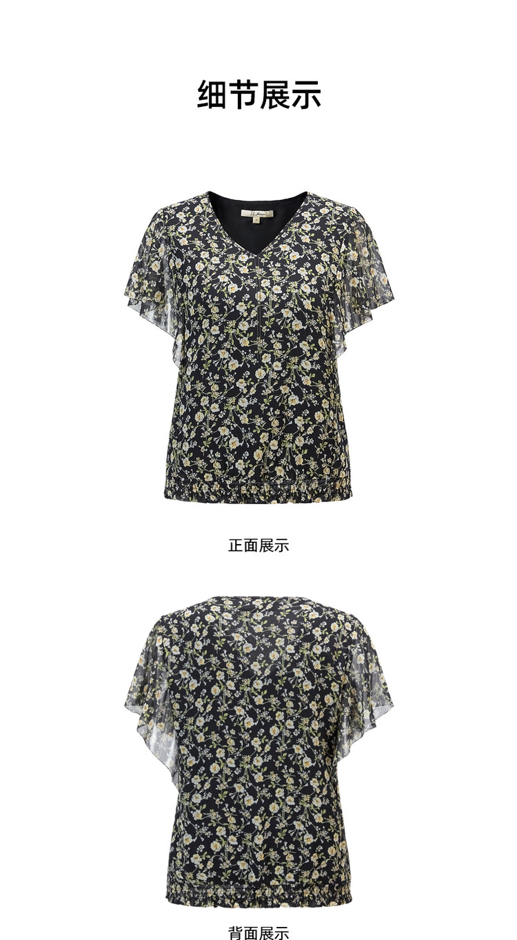 商品名称:JZ玖姿商场同款印花女装夏季短袖V领T恤JWCX80342 178252