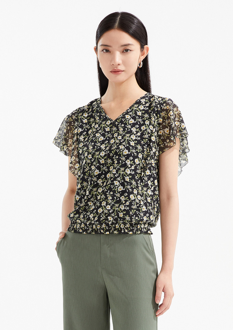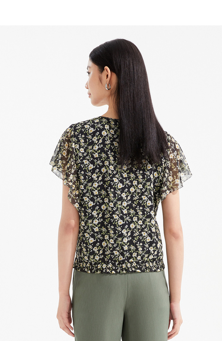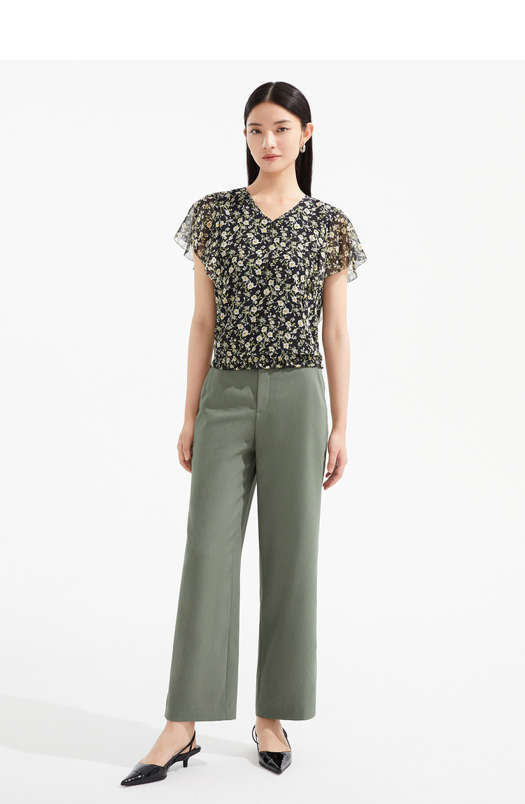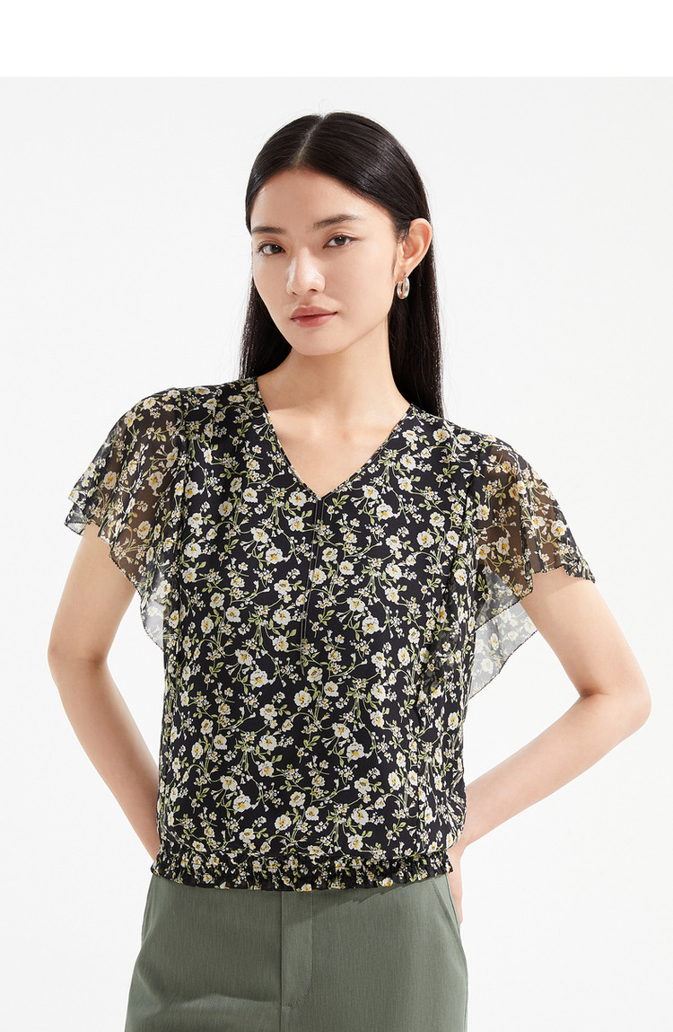 JZ玖姿商场同款印花女装夏季短袖V领T恤JWCX80342 178252