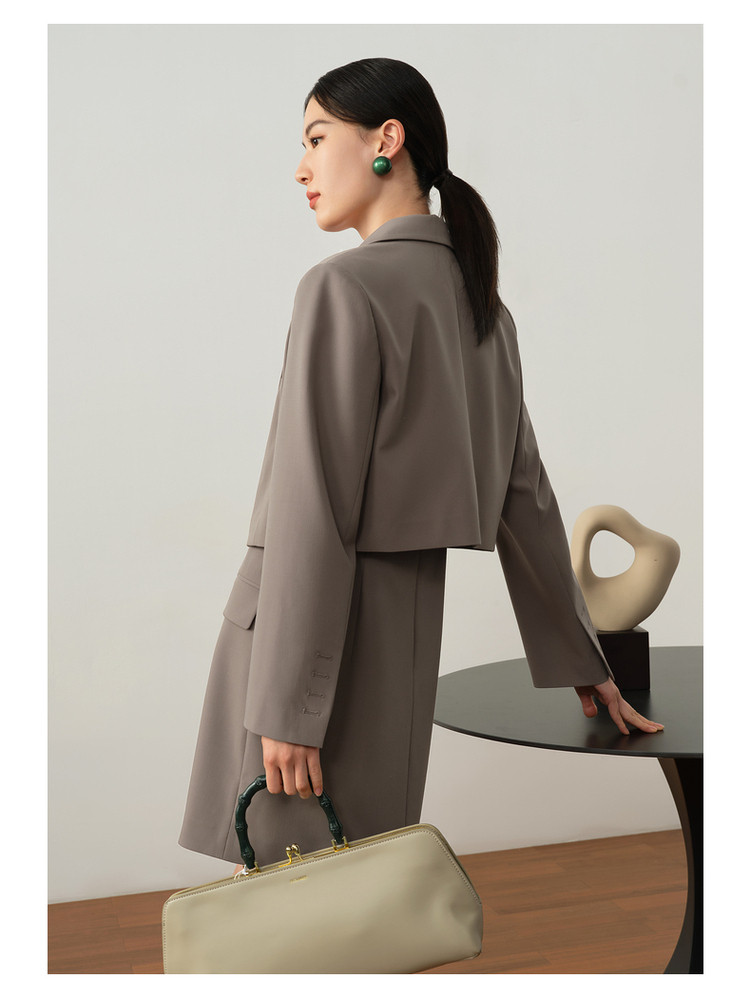 玖姿旗下安娜蔻系列通勤截短式TR西装外套女秋季 982988