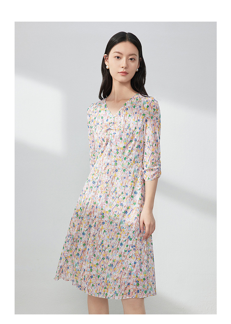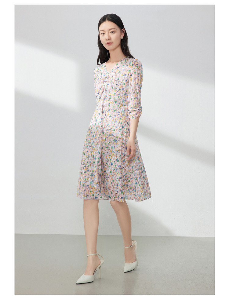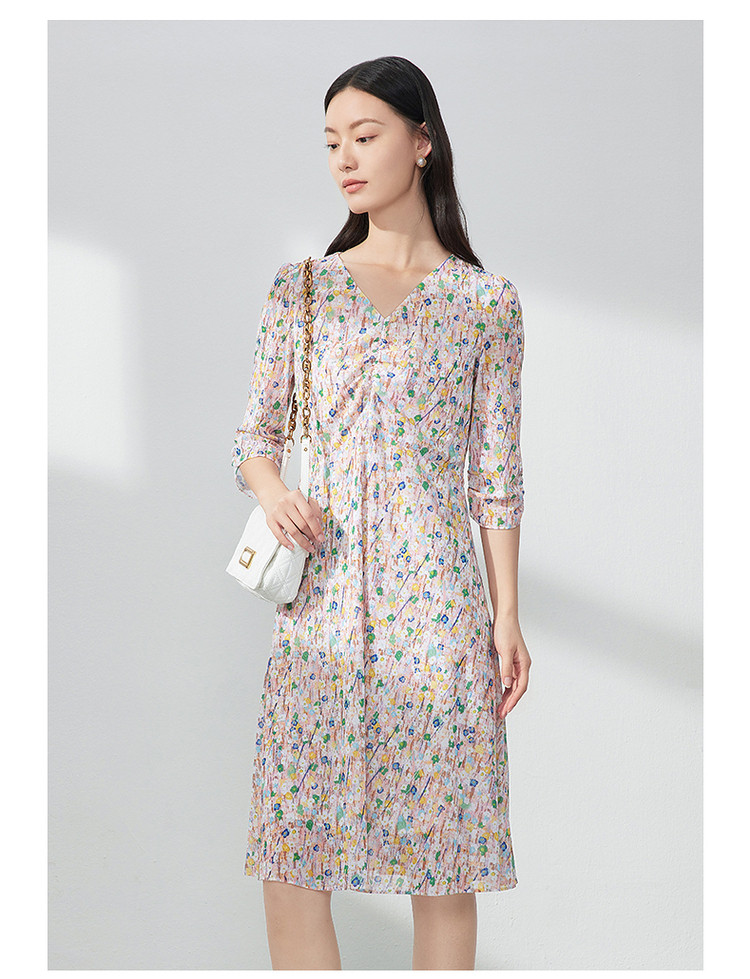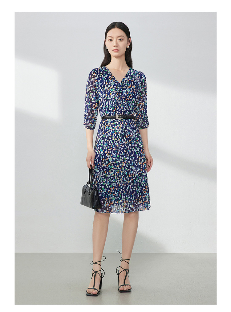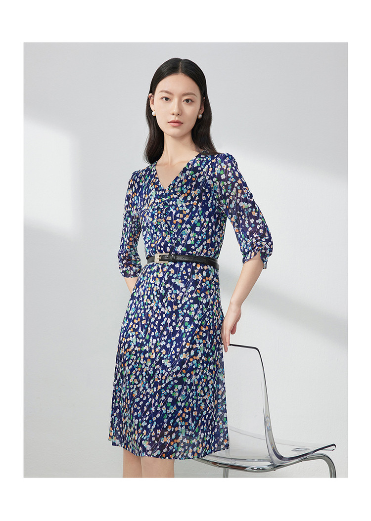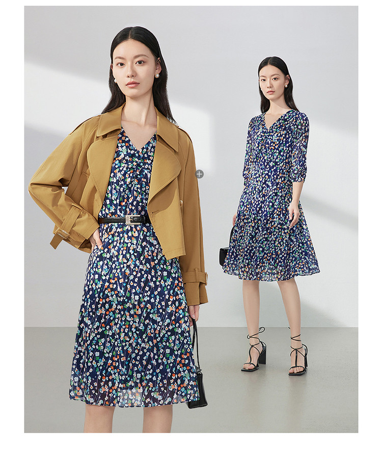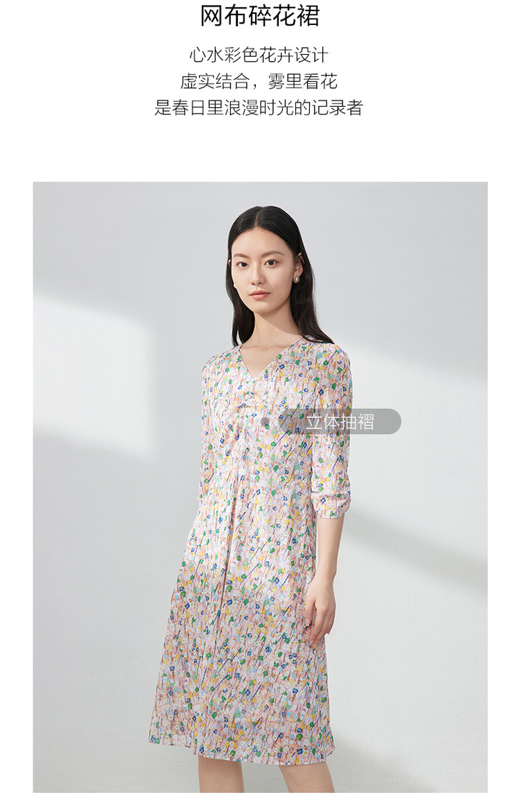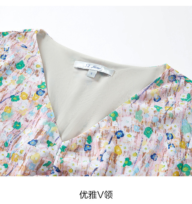 商品名称:JZ玖姿印花网纱连衣裙女装春季女人味碎花裙子 146636