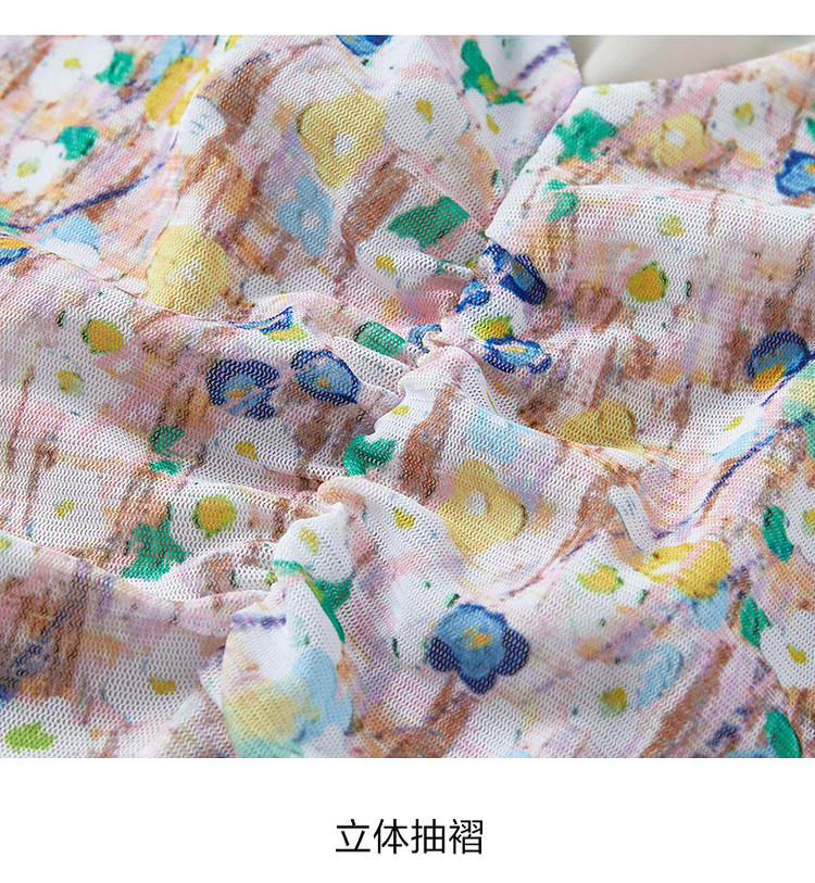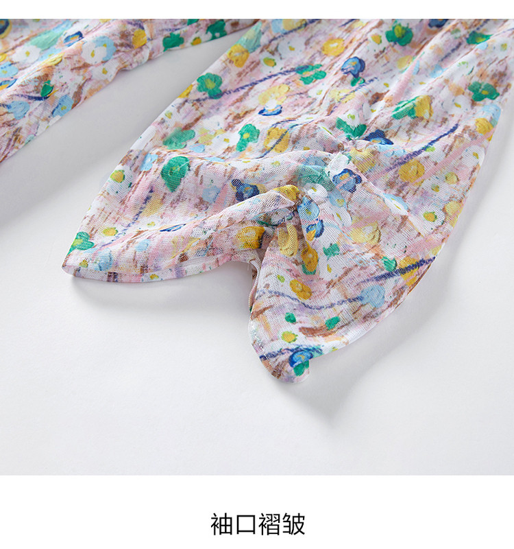 JZ玖姿印花网纱连衣裙女装春季女人味碎花裙子 146636