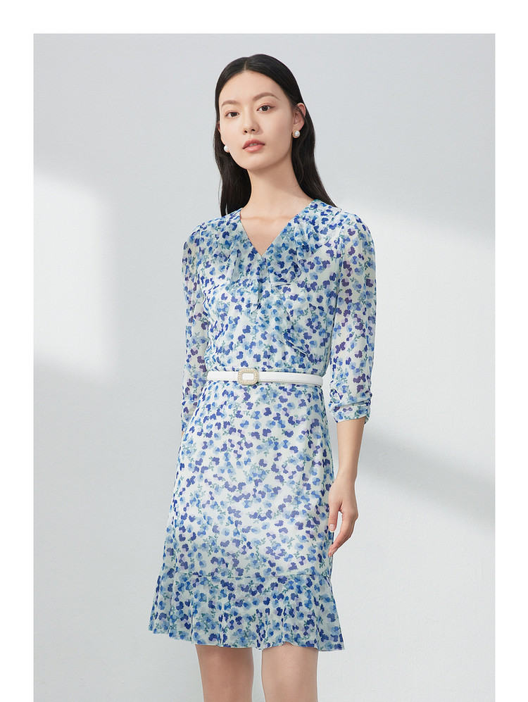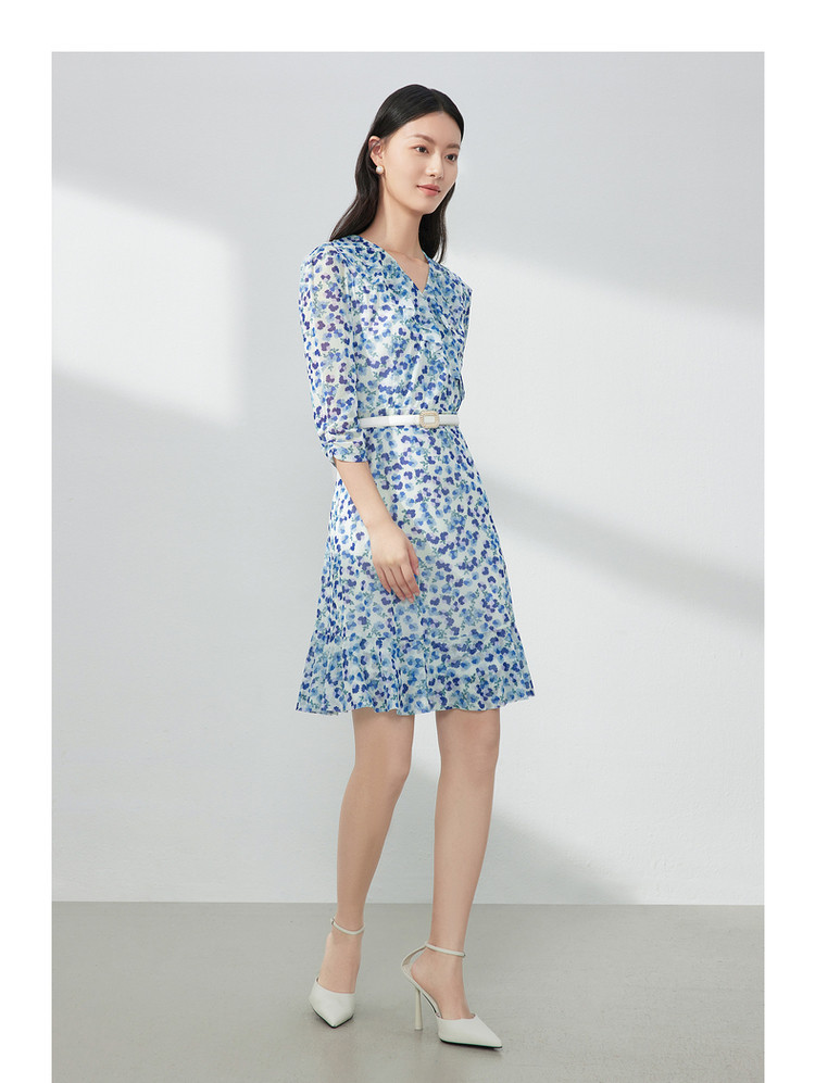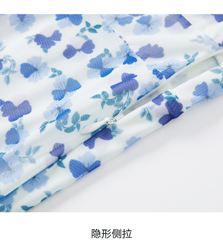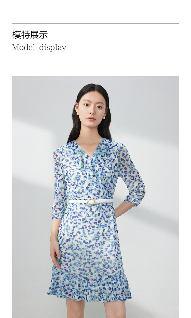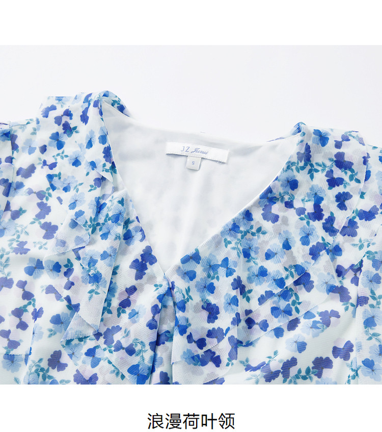 商品名称:JZ玖姿荷叶边网纱连衣裙女装春季蝴蝶印花裙子 200780