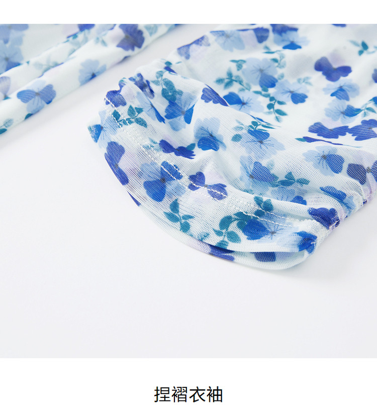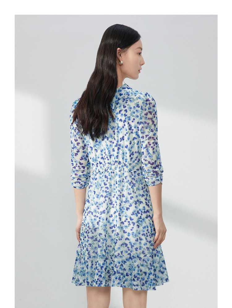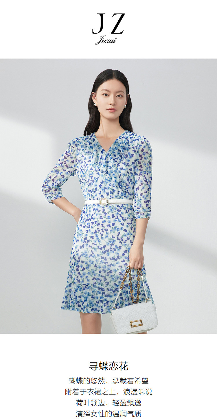 JZ玖姿荷叶边网纱连衣裙女装春季蝴蝶印花裙子 200780