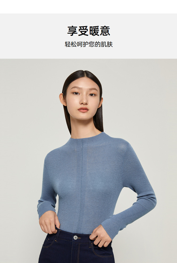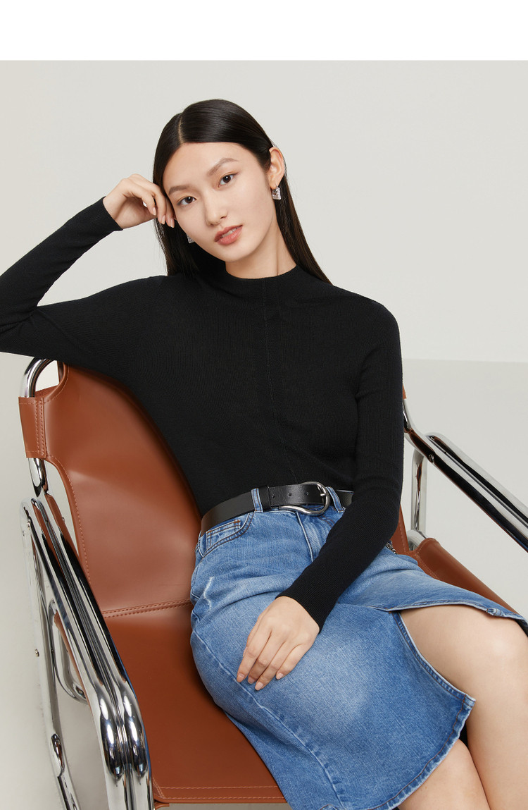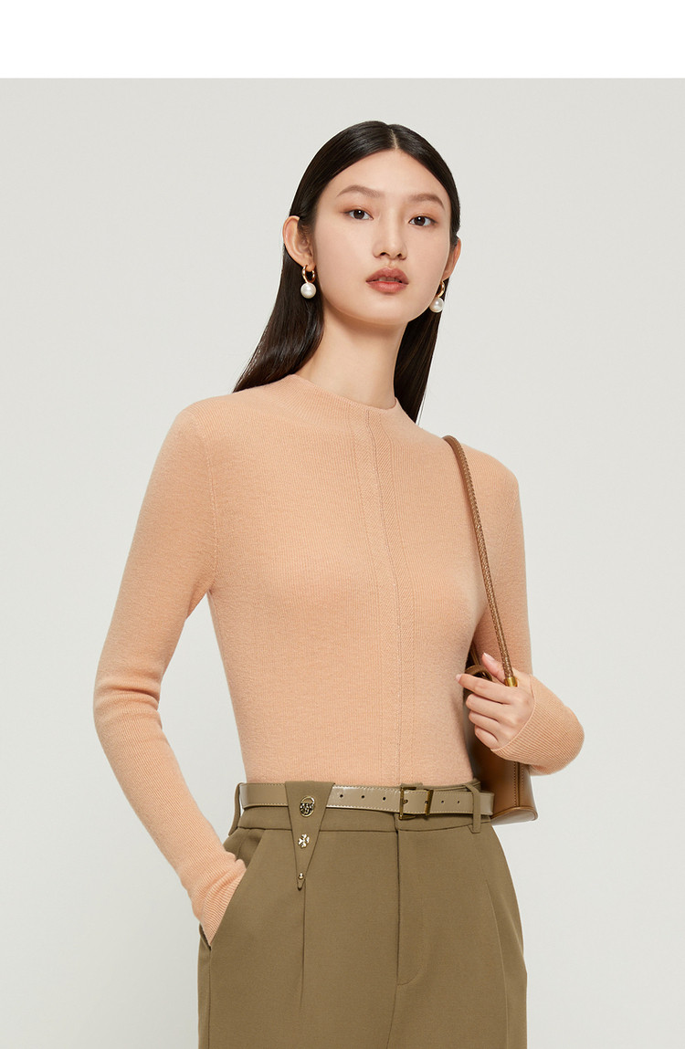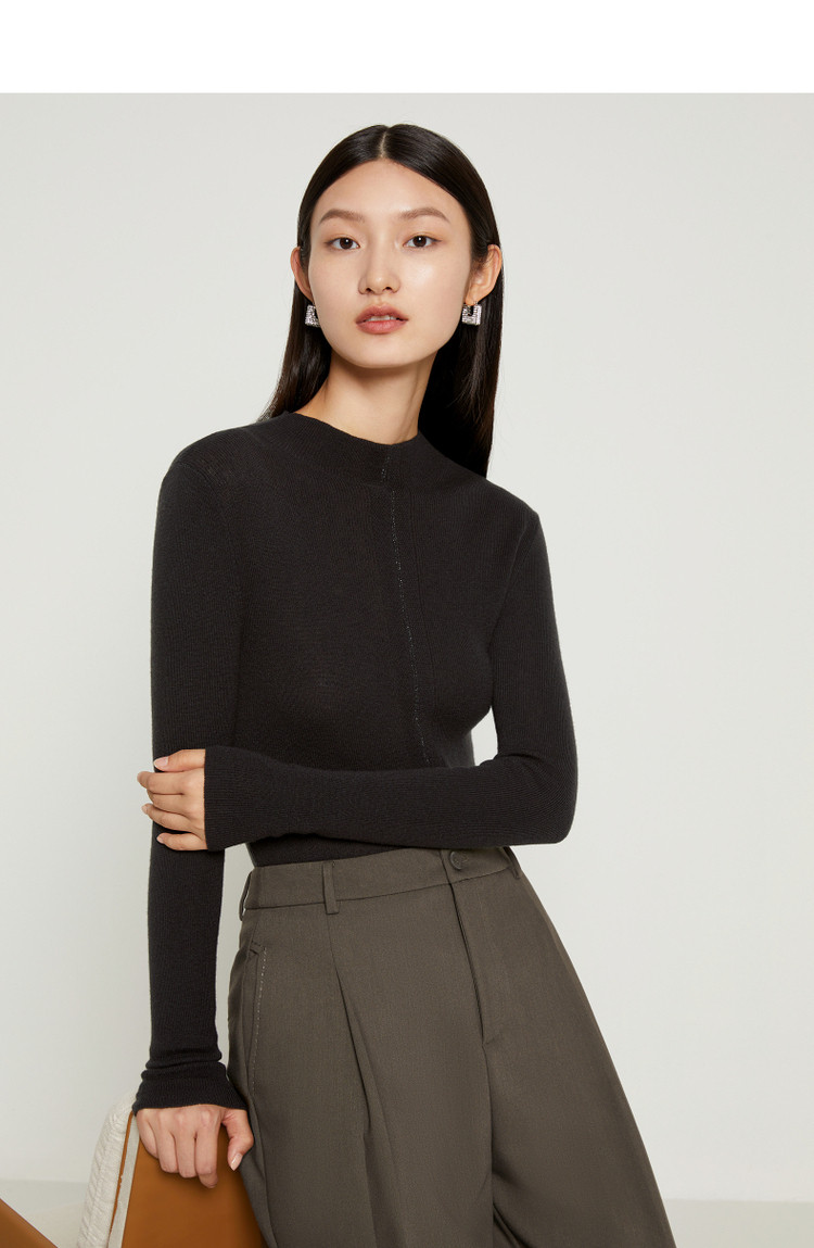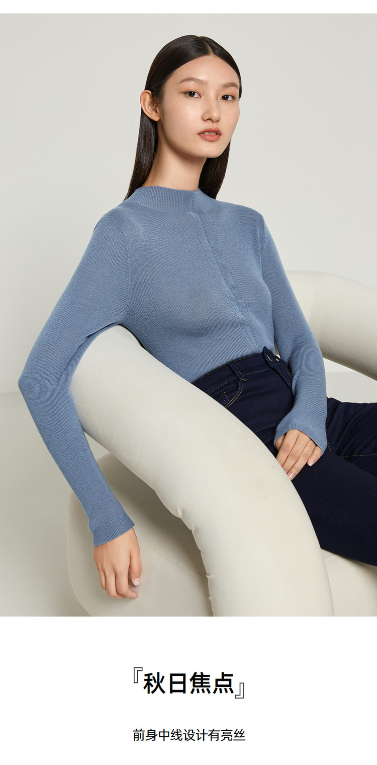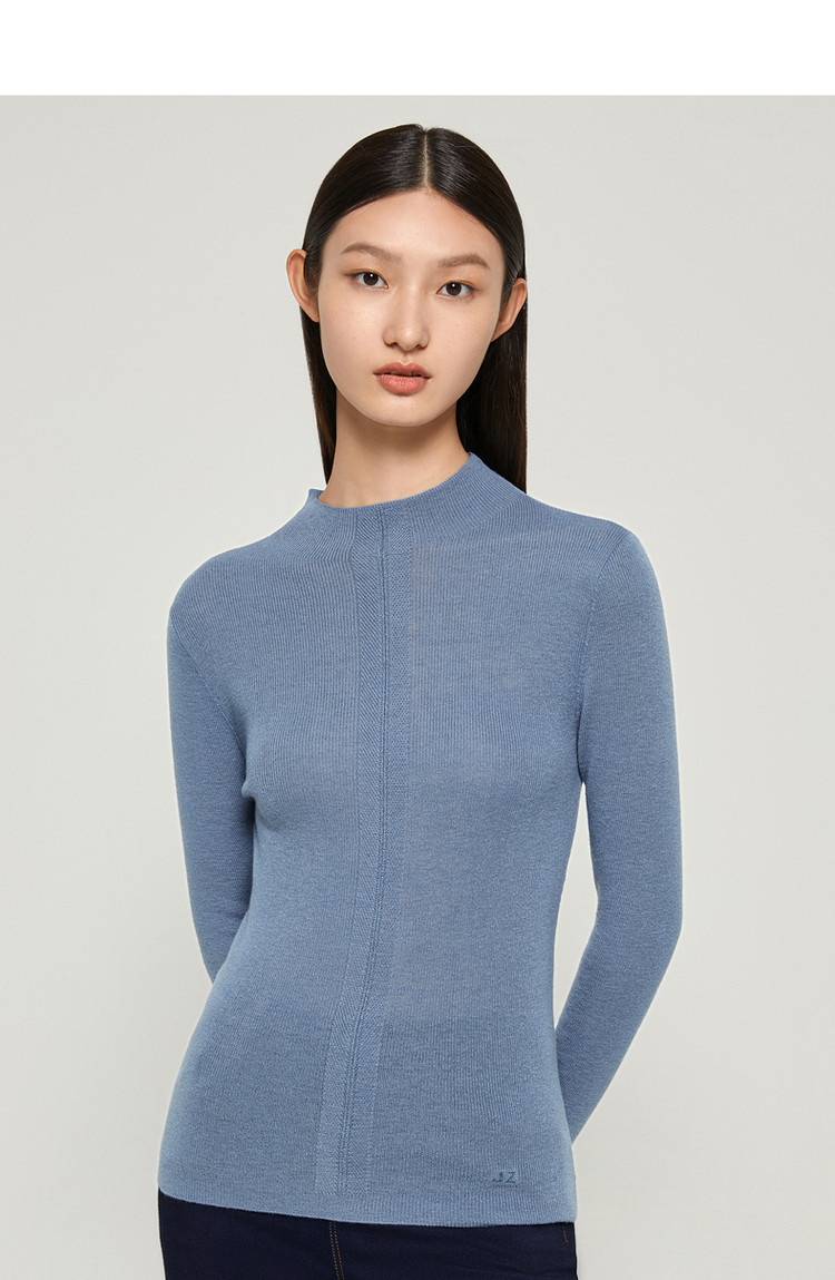 JZ玖姿绵羊毛针织打底衫女装秋季气质半高领简约易搭毛衣 774348