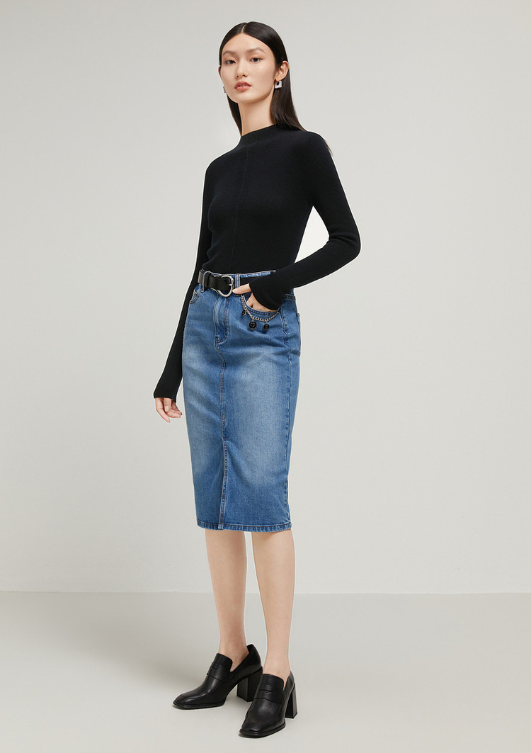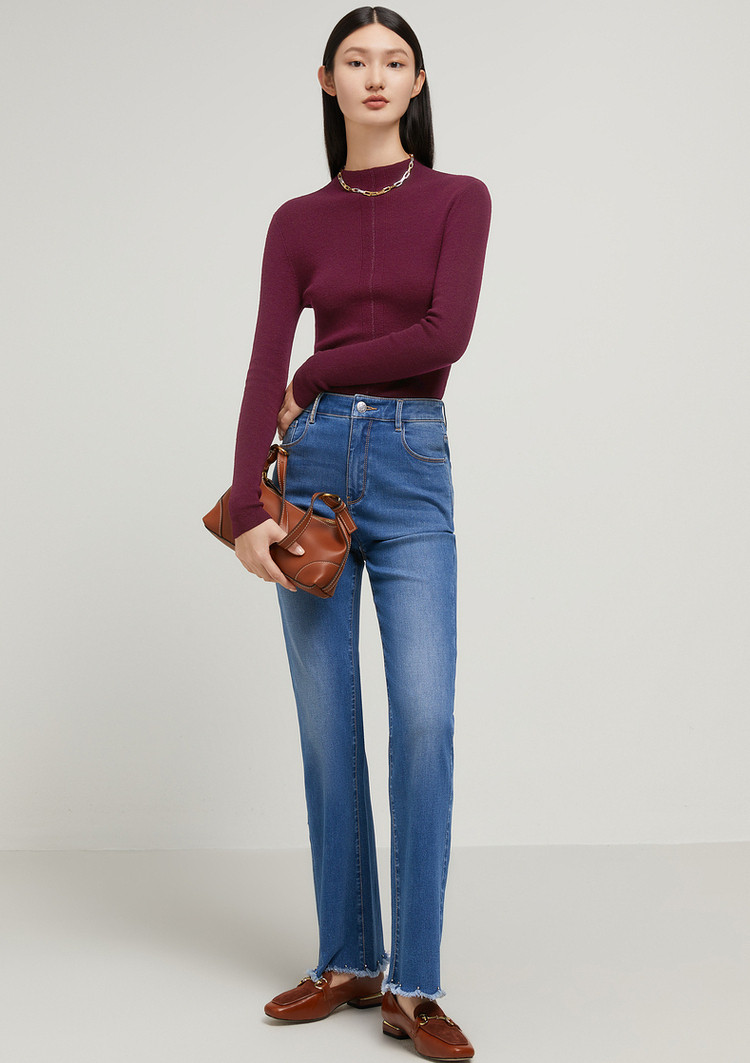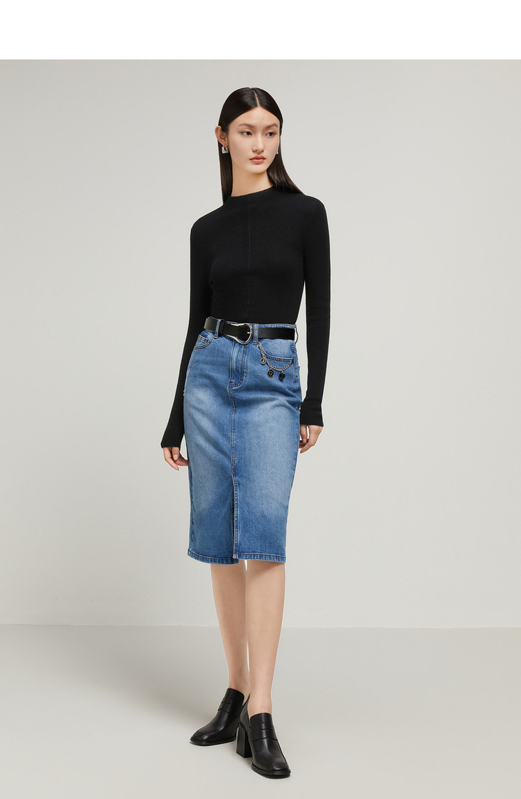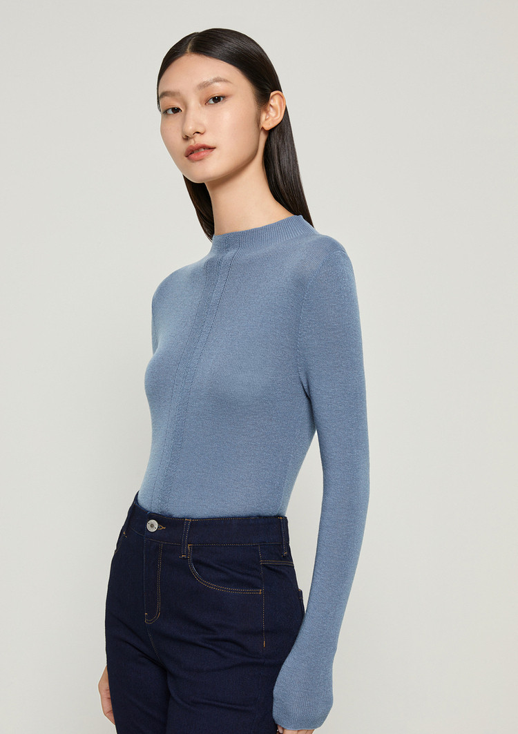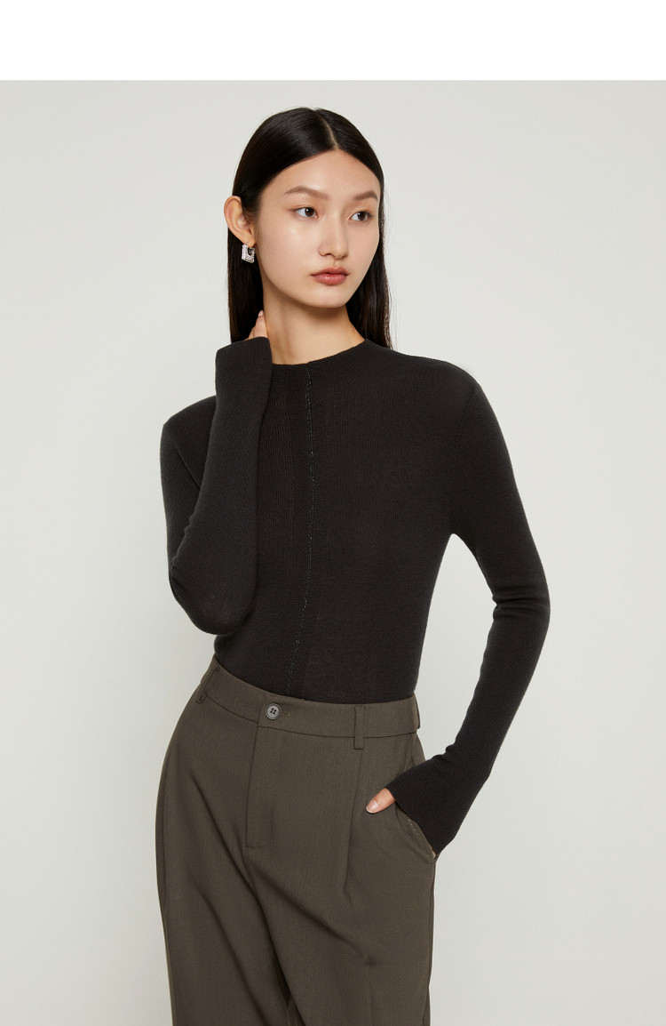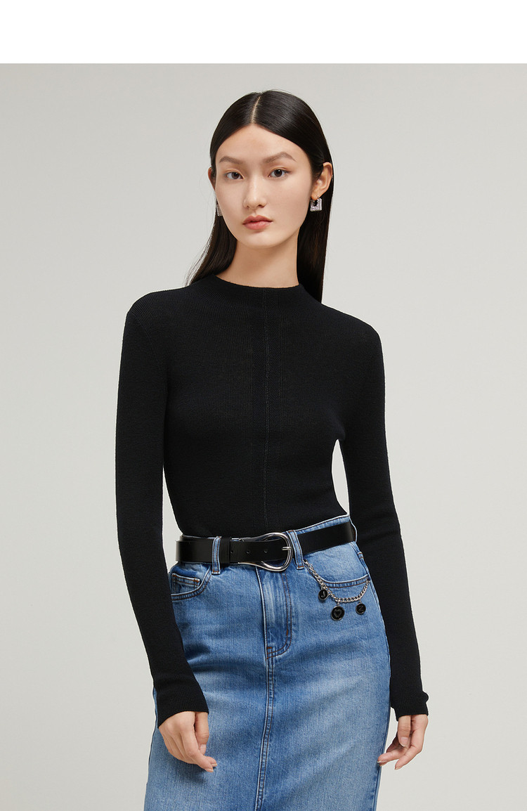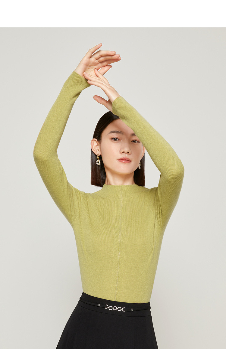 JZ玖姿绵羊毛针织打底衫女装秋季气质半高领简约易搭毛衣 774348