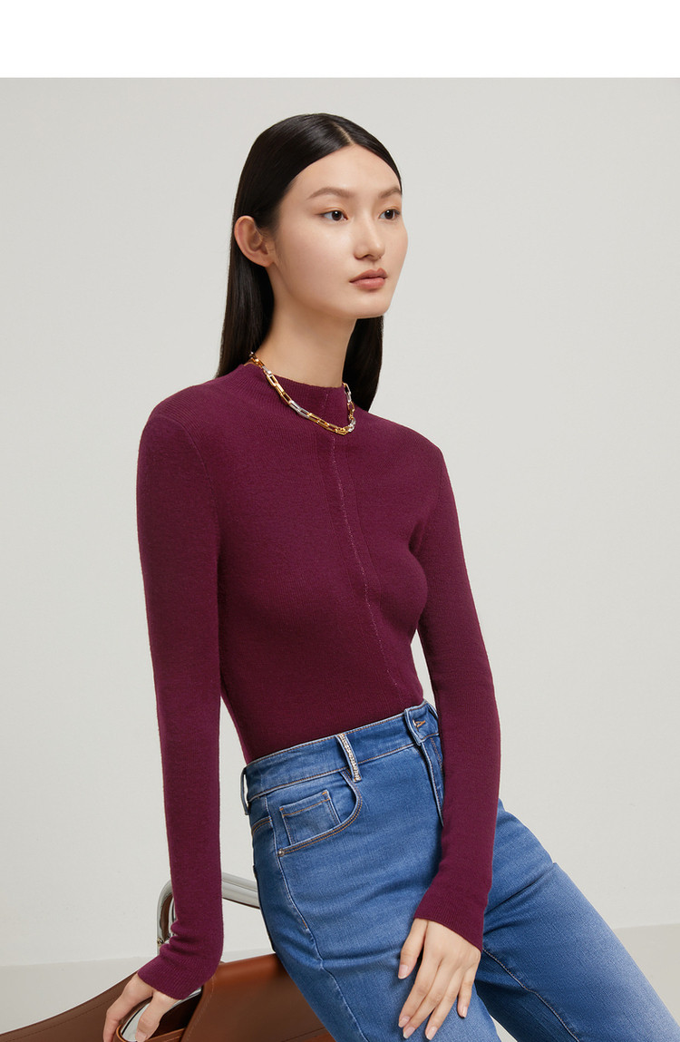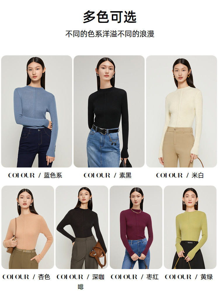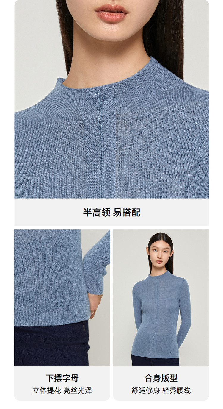 商品名称:JZ玖姿绵羊毛针织打底衫女装秋季气质半高领简约易搭毛衣 774348