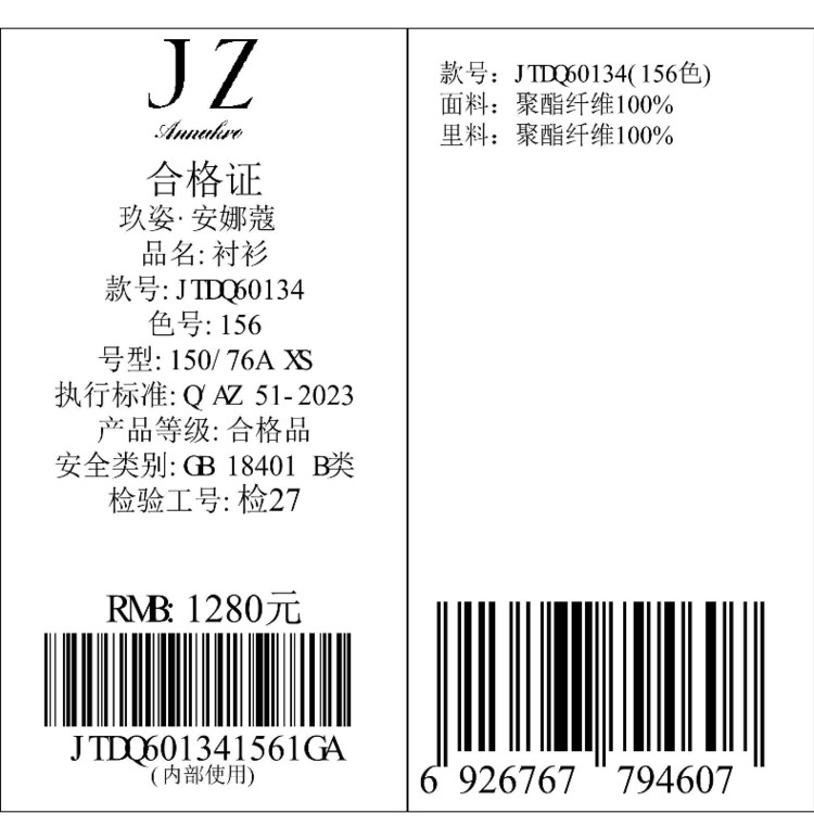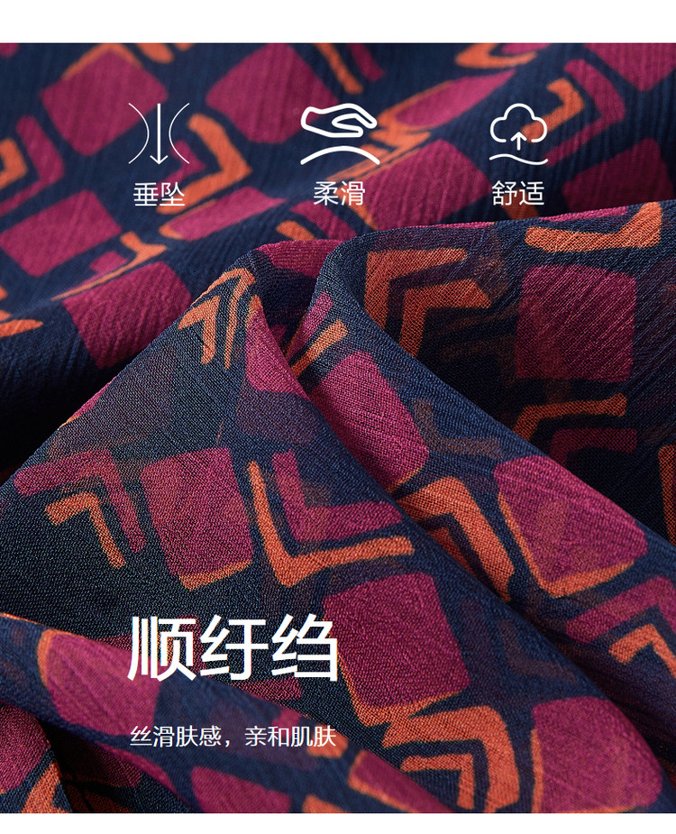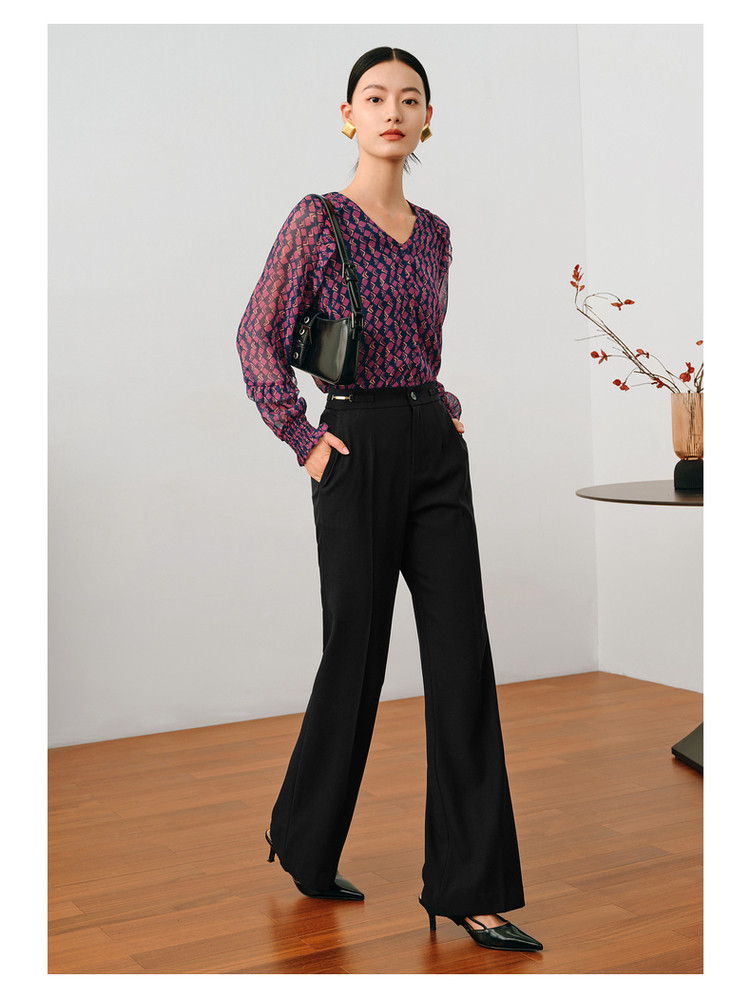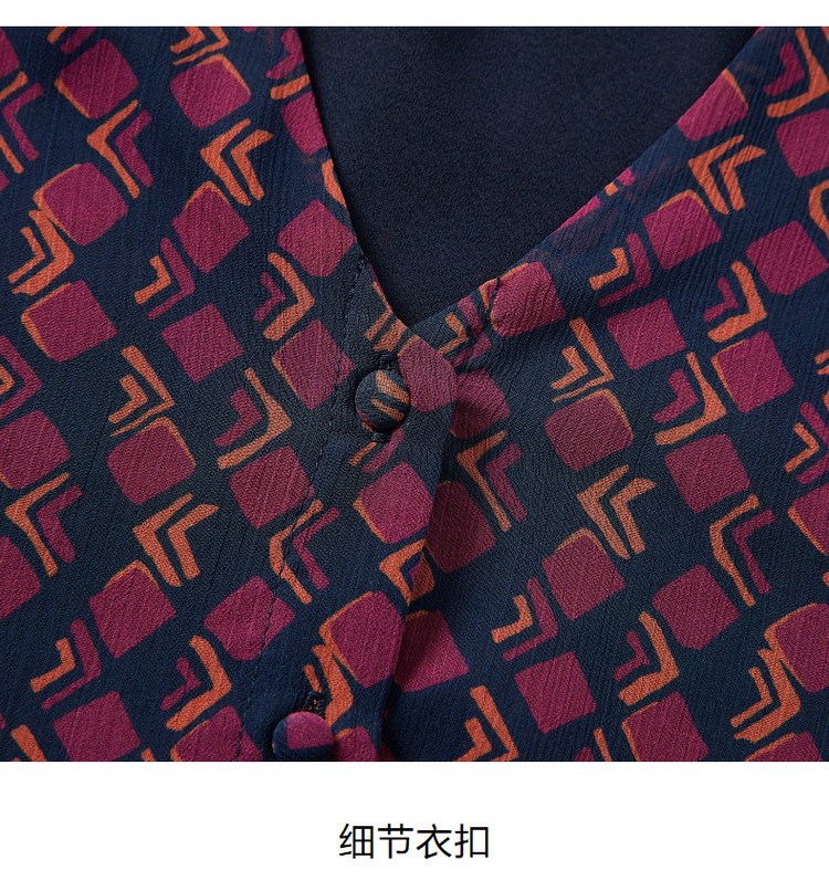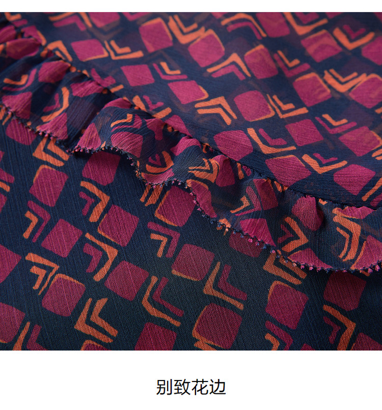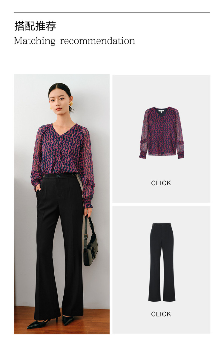 商品名称:玖姿旗下安娜蔻系列V领波普轻熟风几何H型质感长袖雪纺衬衫女秋季 472460