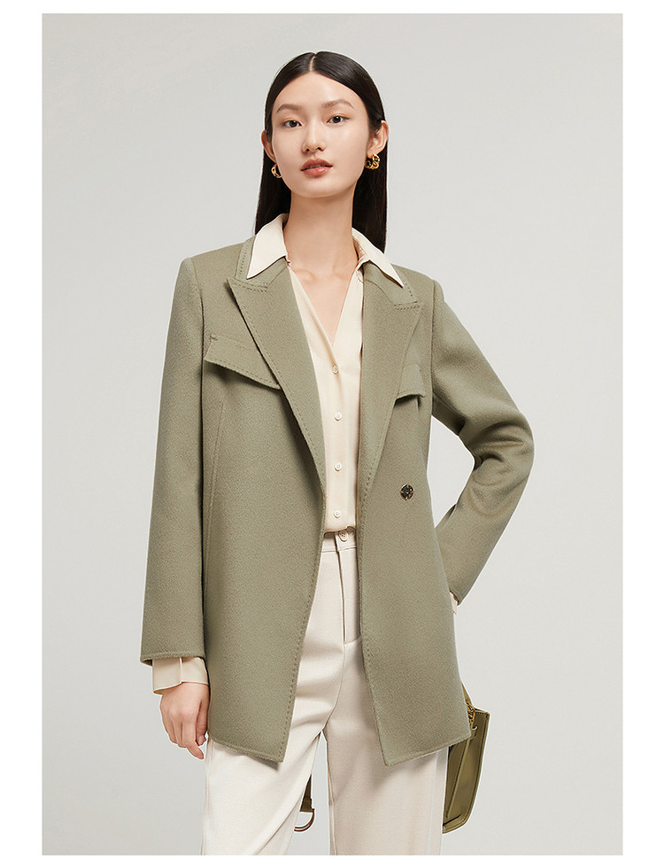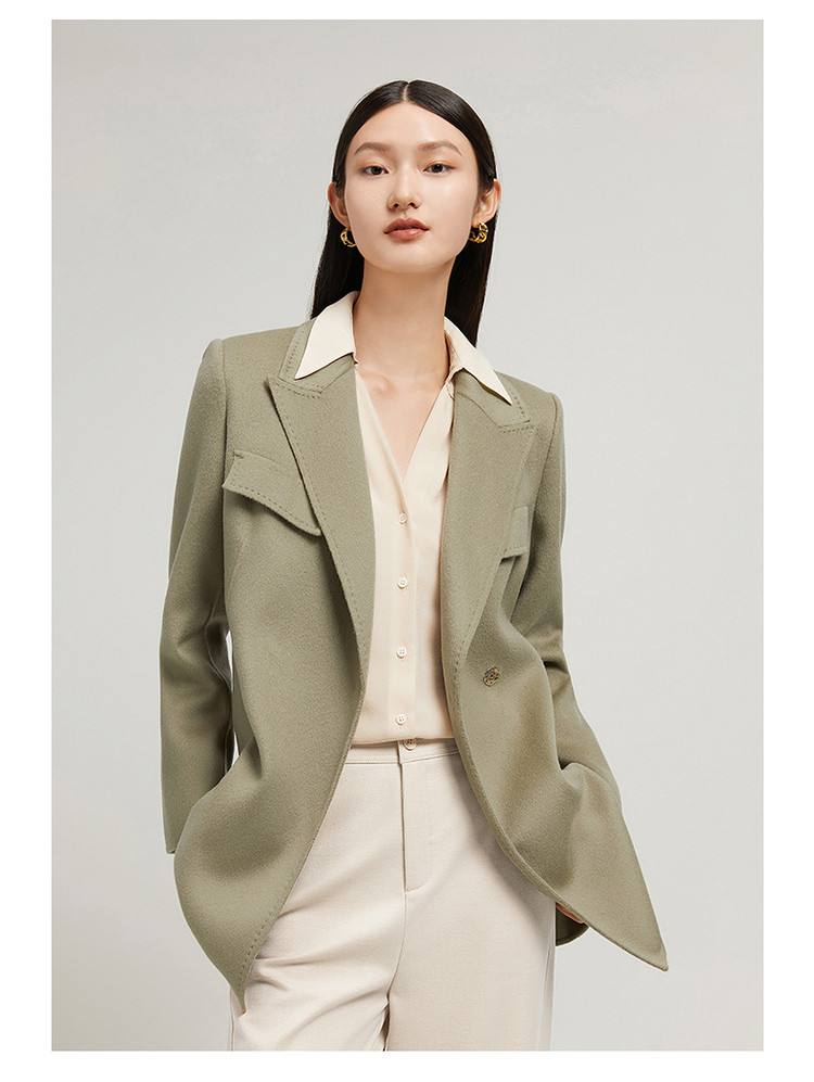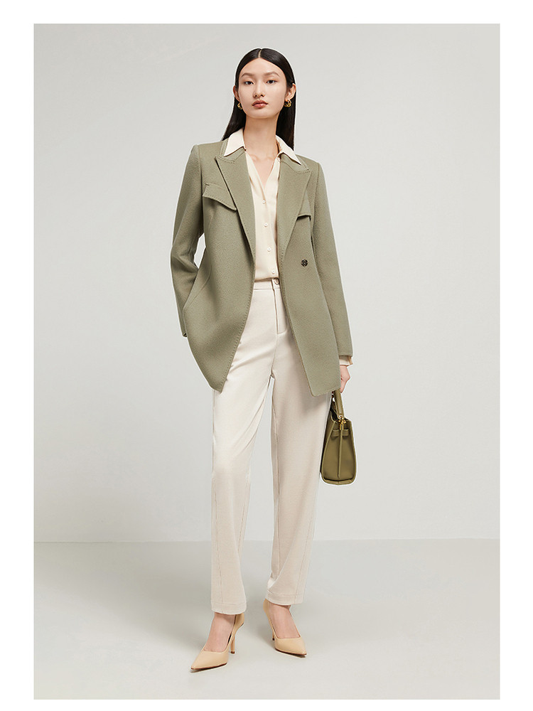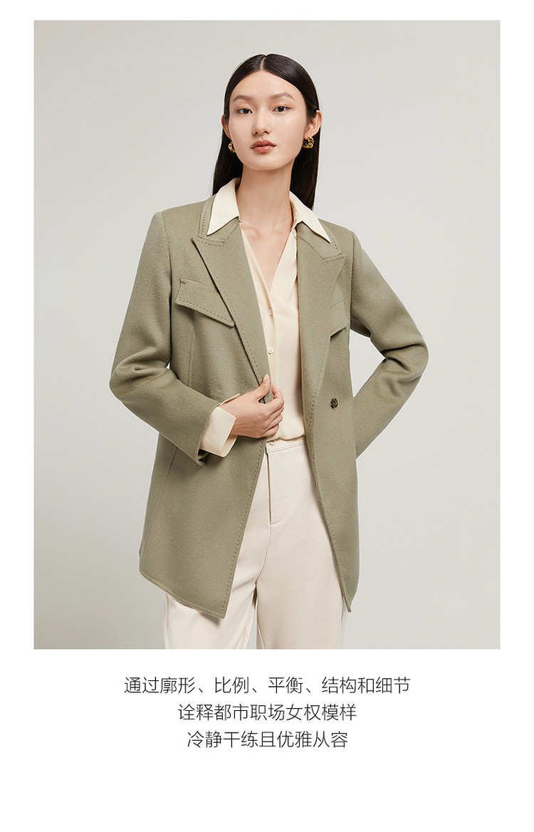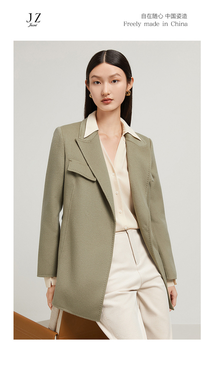 JZ玖姿枪驳领西装大衣女装秋季气质甘草色系双面尼外套 673612
