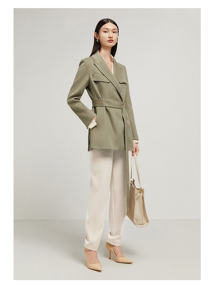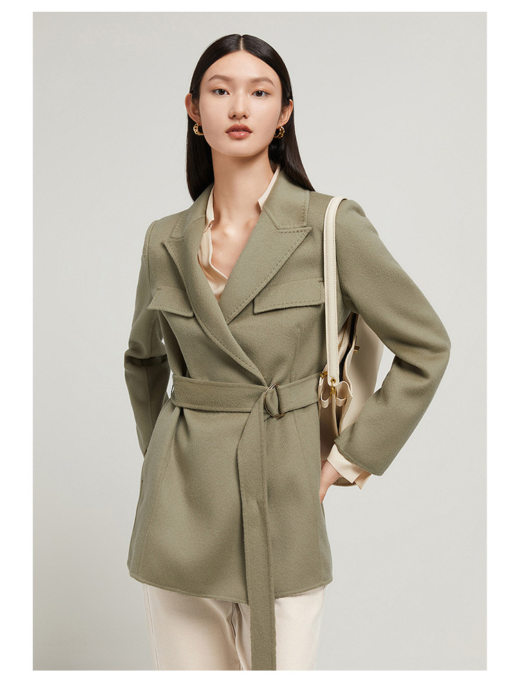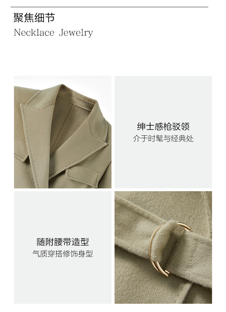 商品名称:JZ玖姿枪驳领西装大衣女装秋季气质甘草色系双面尼外套 673612