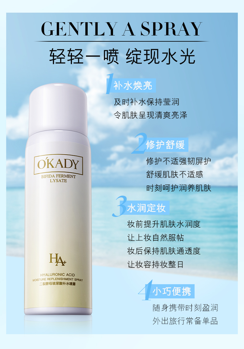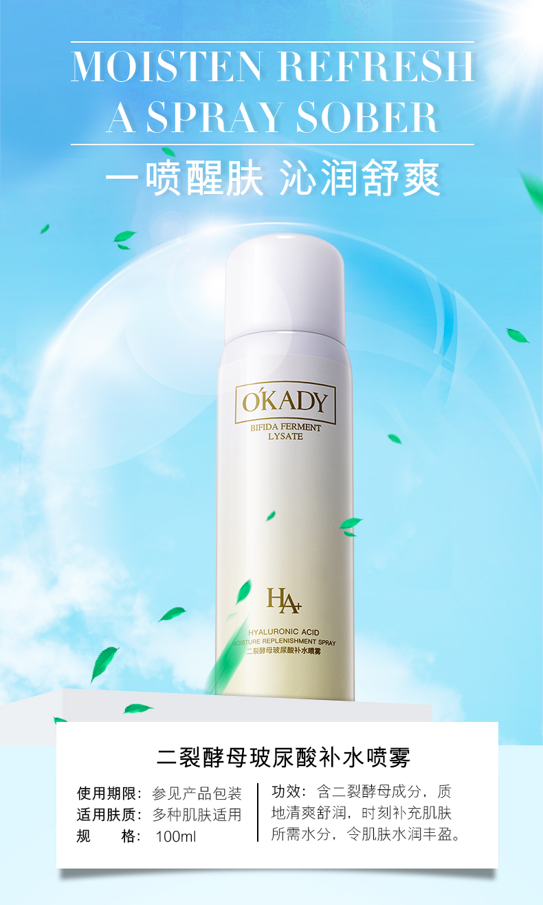 商品名称:欧佩 二裂酵母玻尿酸补水喷雾 100ml 保湿爽肤水舒缓细致毛孔小型随身