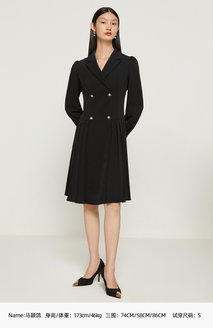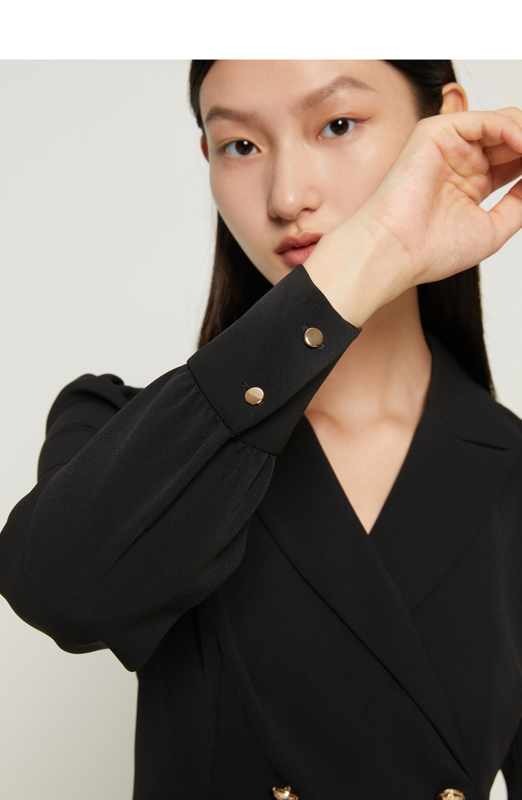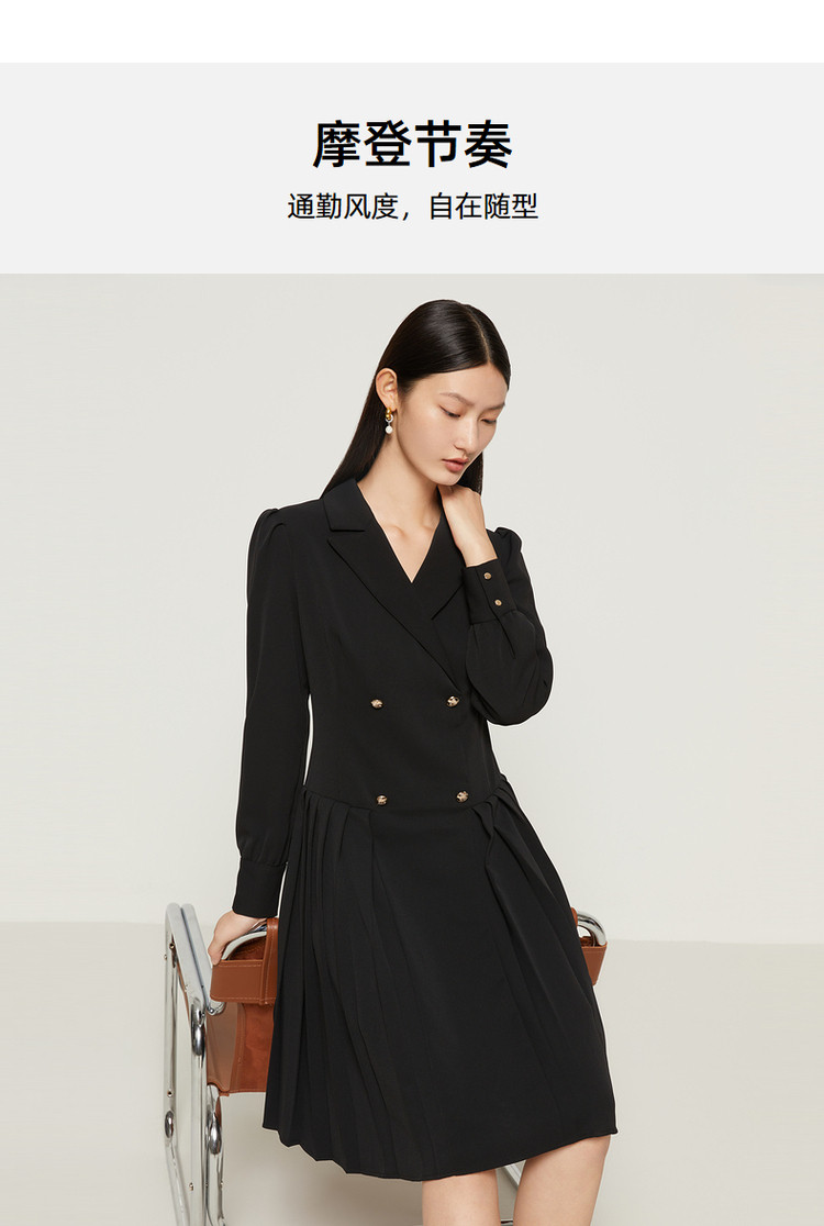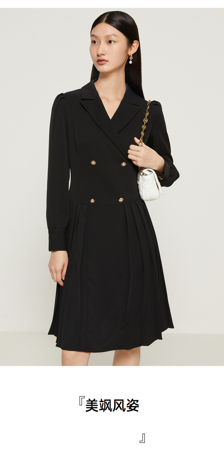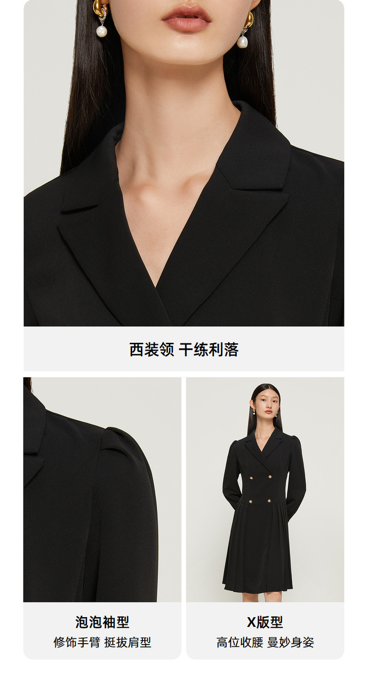 商品名称:JZ玖姿女装秋季职业通勤OL风泡泡袖雪纺裙子 079756