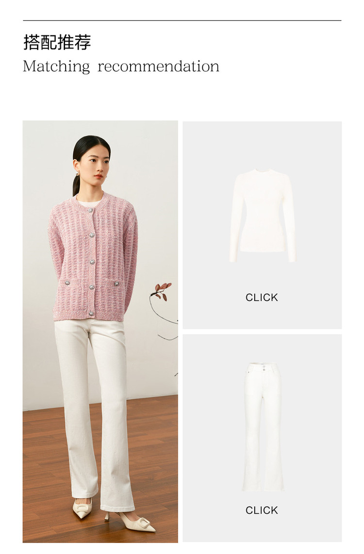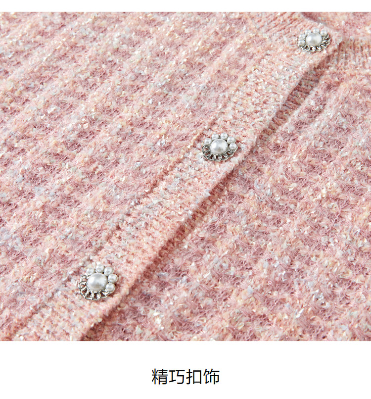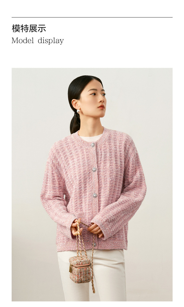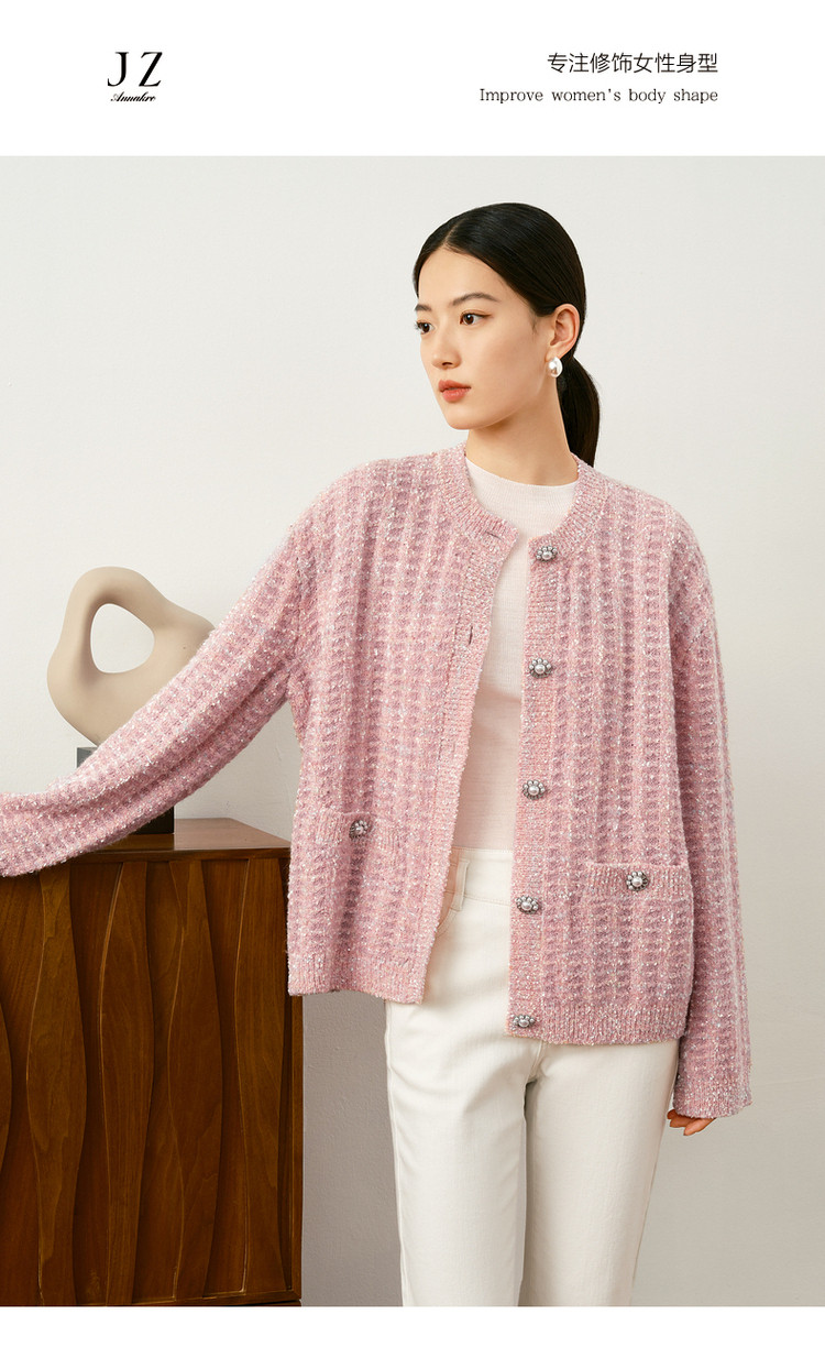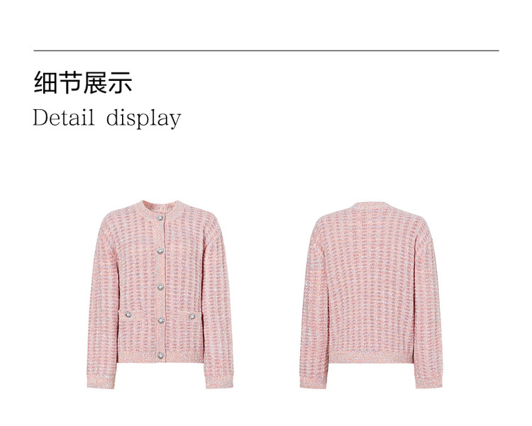 商品名称:玖姿旗下安娜蔻系列优雅小香风肌理提花H型蝴蝶纱长袖开衫毛衫女 515916