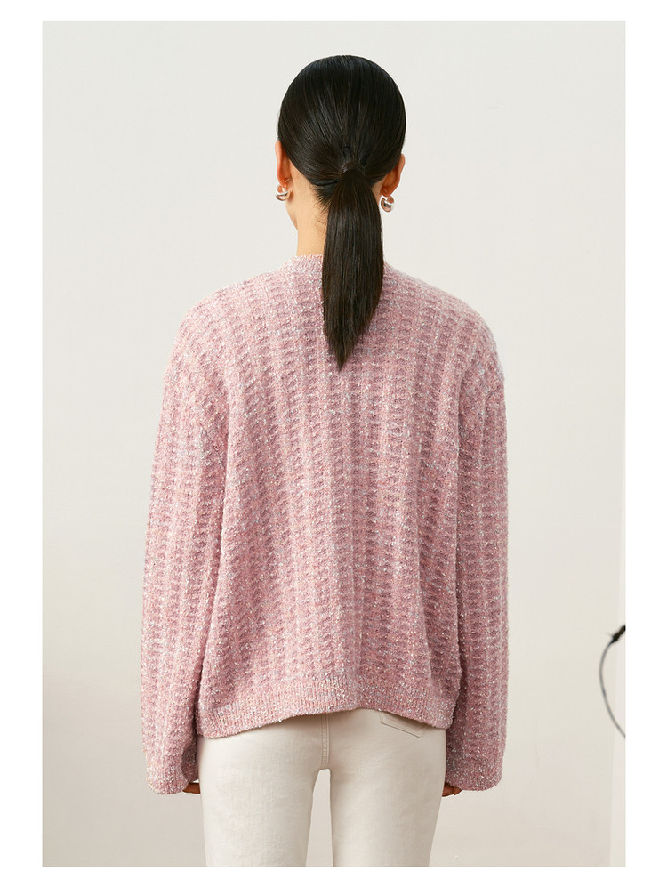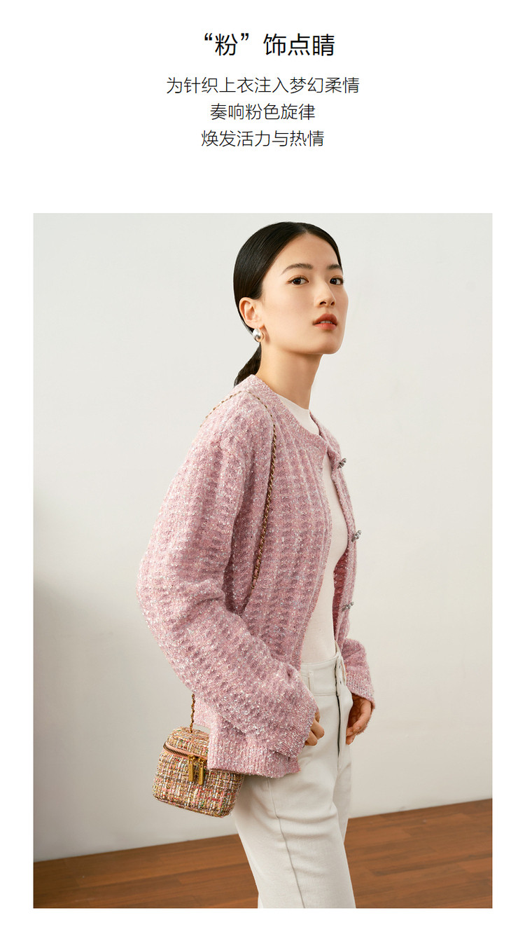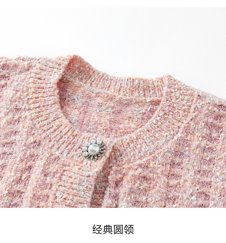 玖姿旗下安娜蔻系列优雅小香风肌理提花H型蝴蝶纱长袖开衫毛衫女 515916