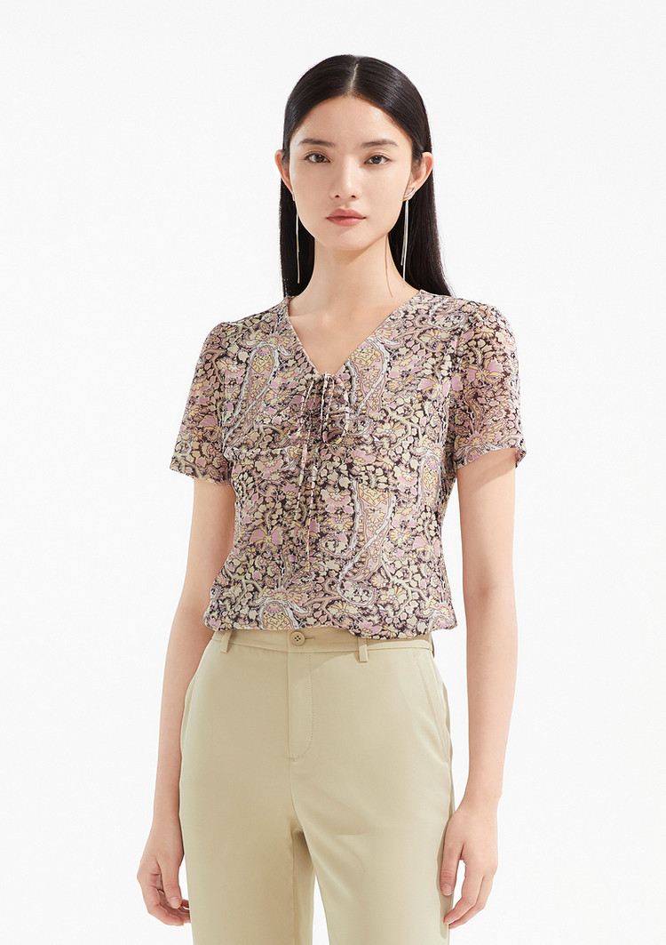 JZ玖姿商场同款印花真丝小衫女装春季桑蚕丝单上衣 254348