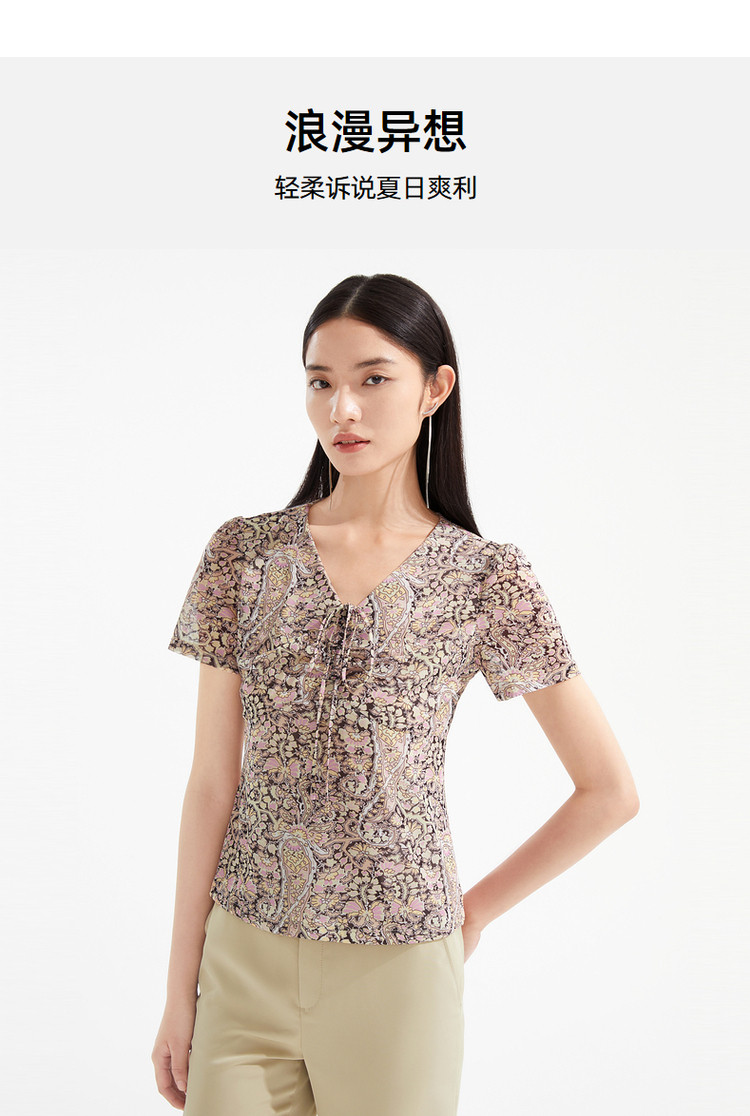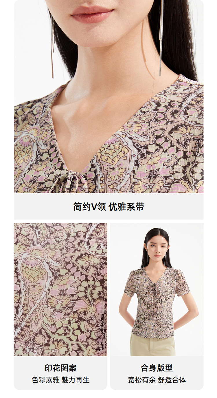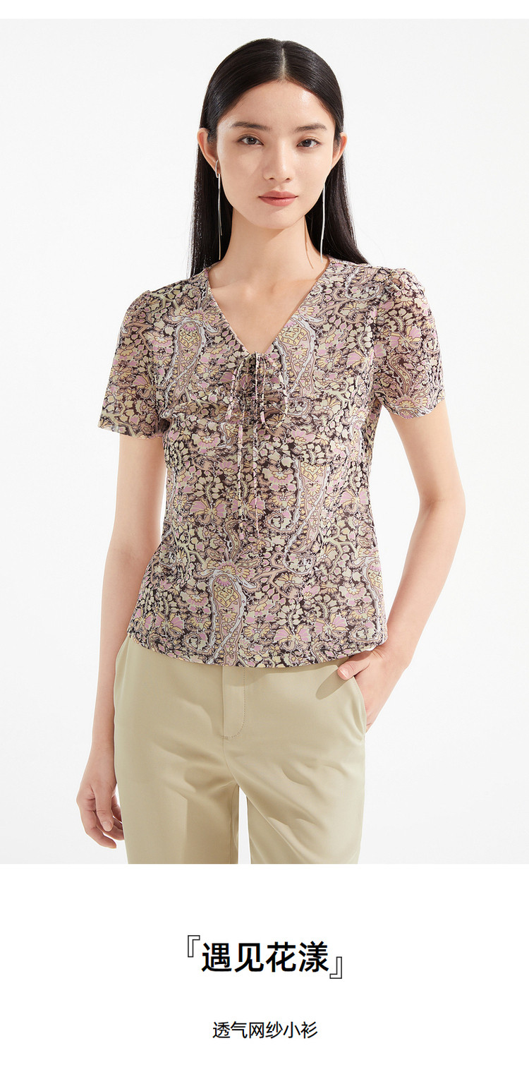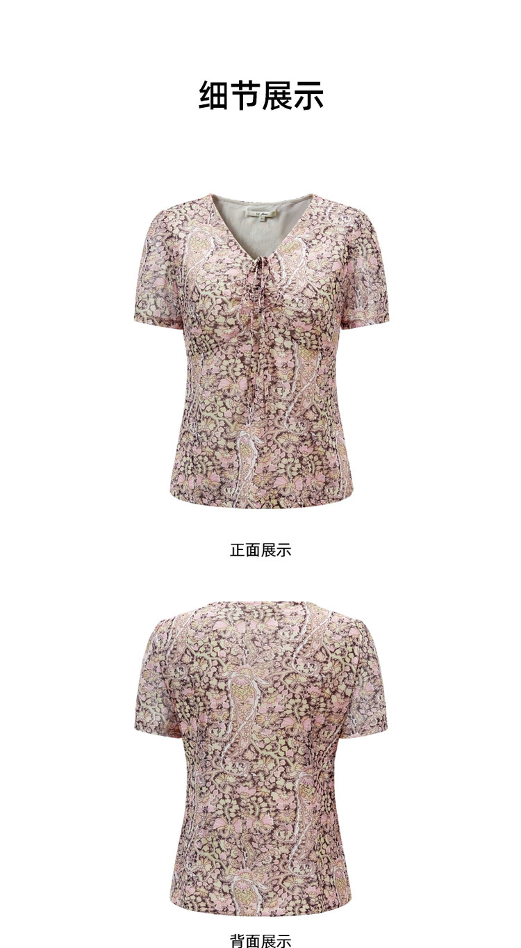 商品名称:玖姿商场同款透气网纱小衫女夏季弹力印花T恤JWCX80365 720652