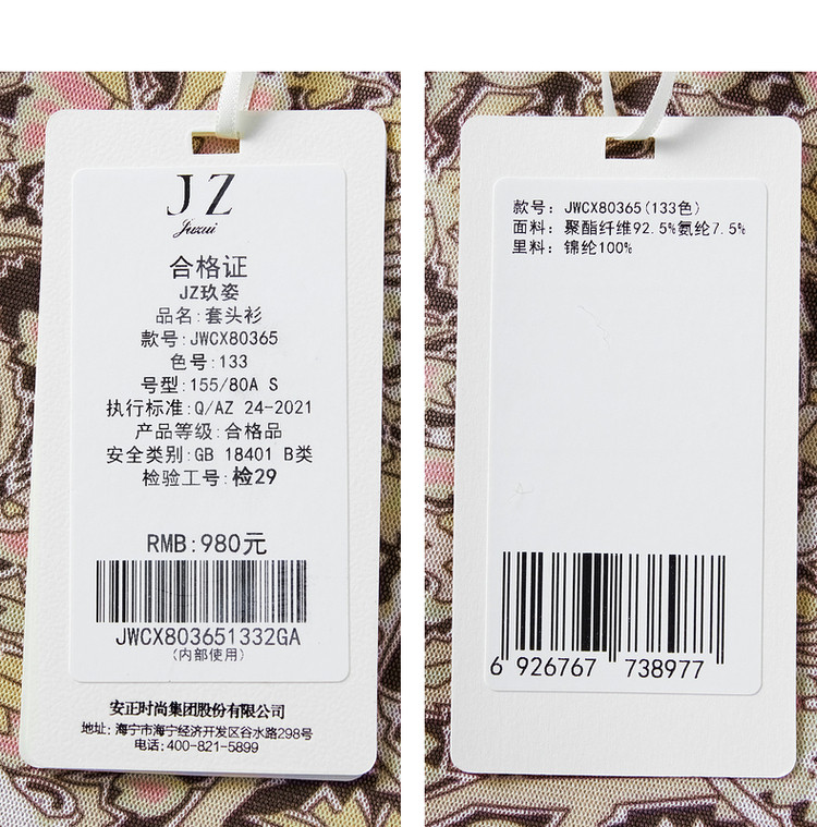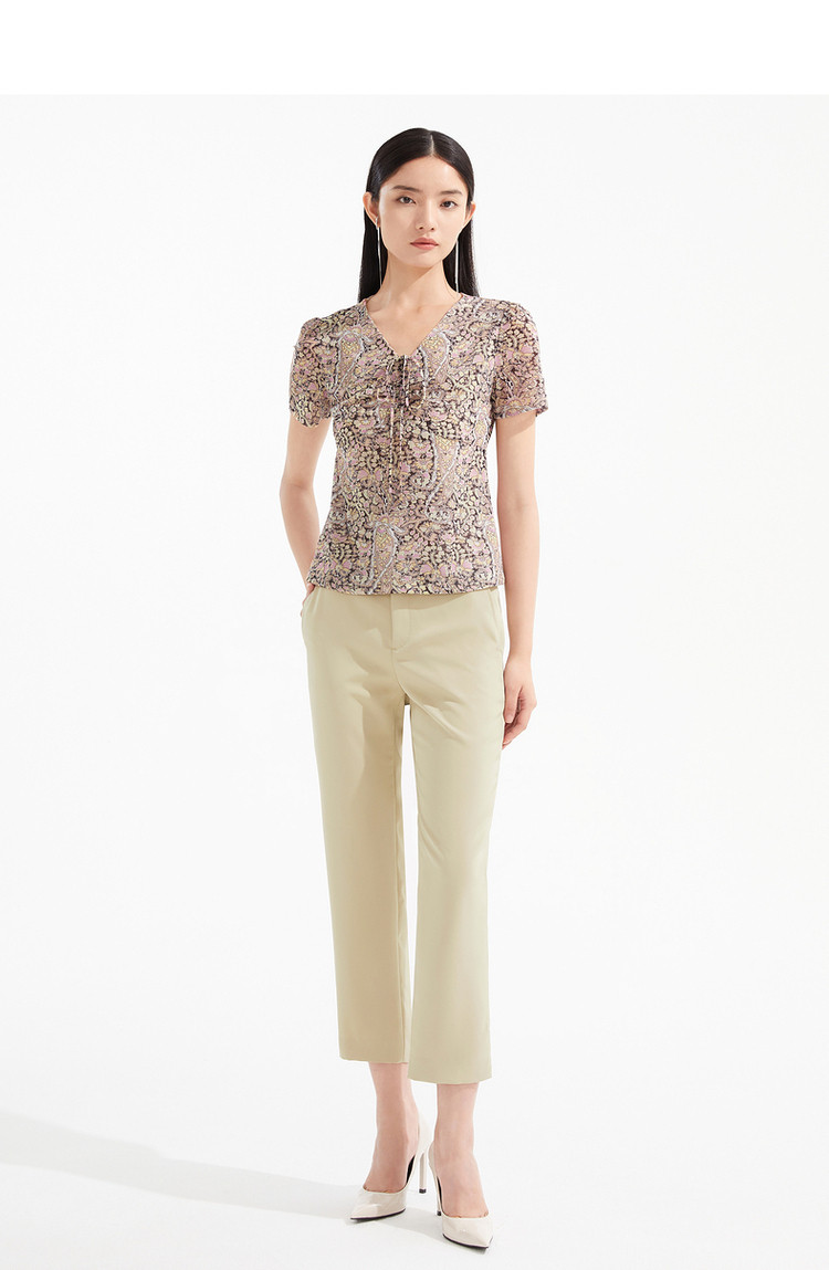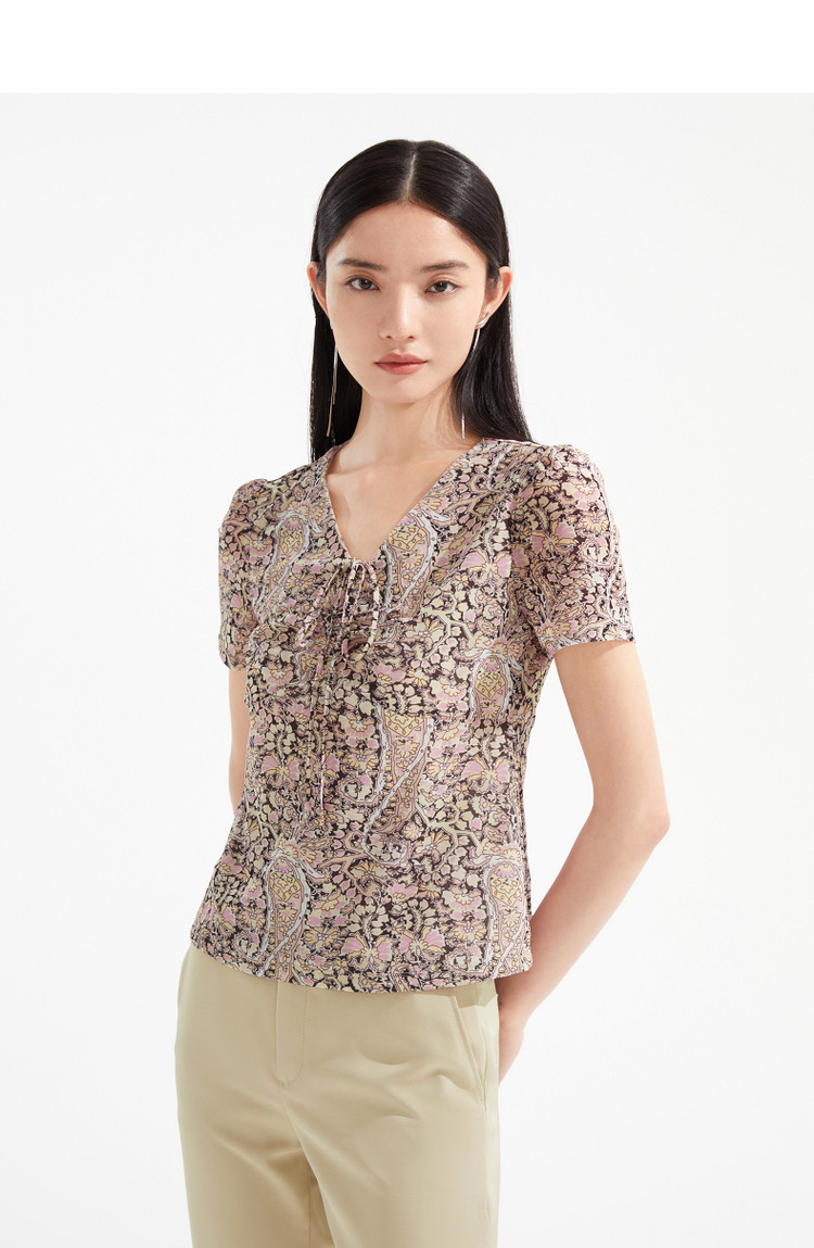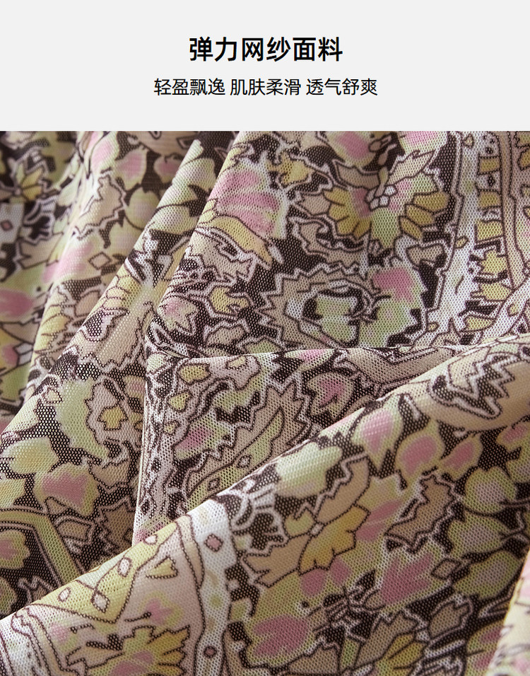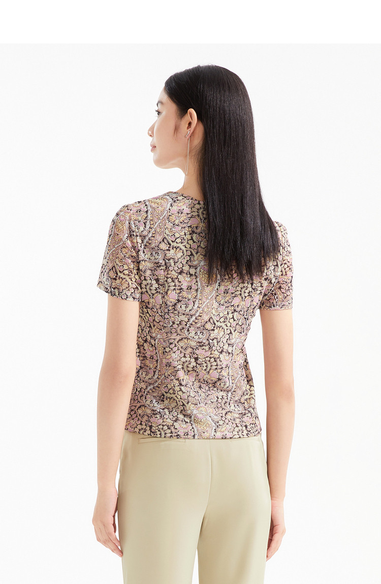 商品名称:玖姿商场同款透气网纱小衫女夏季弹力印花T恤JWCX80365 720652