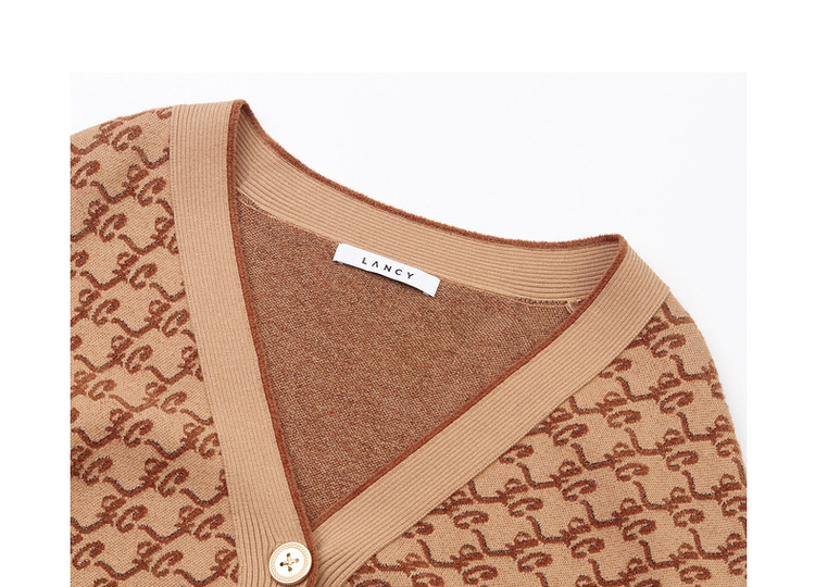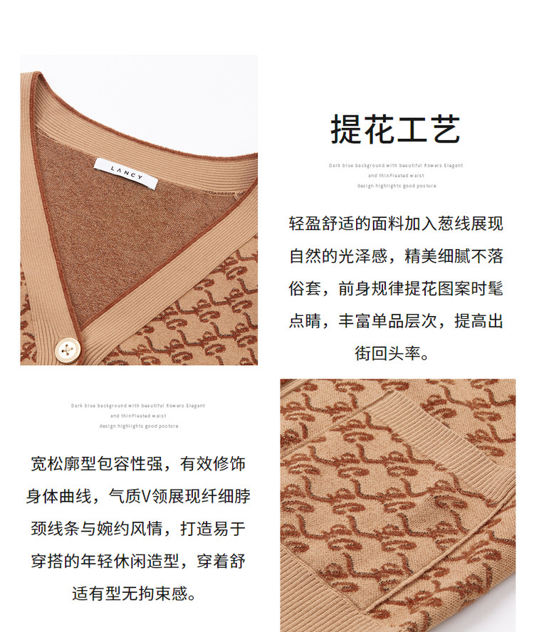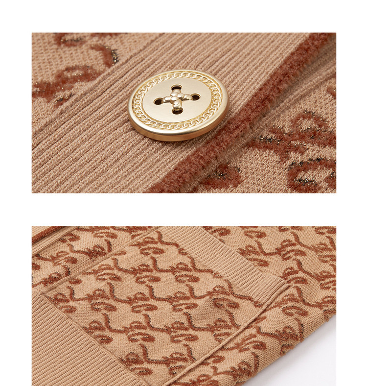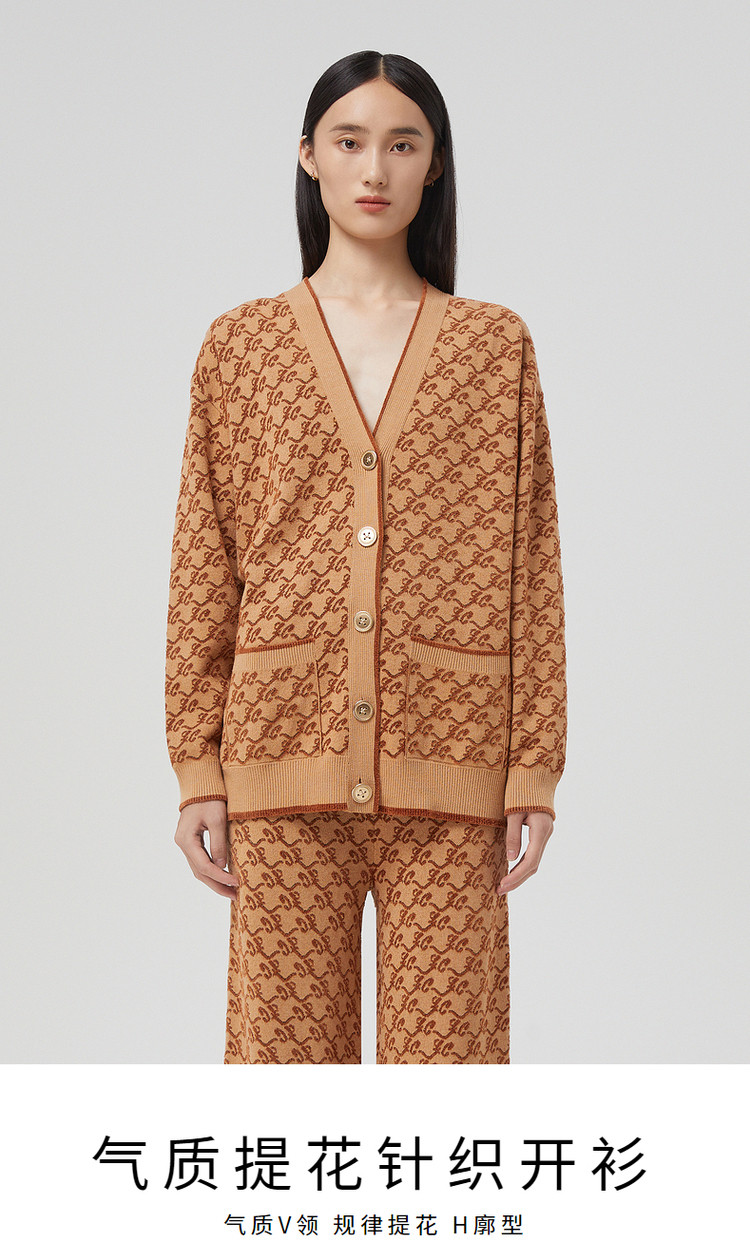 春秋针织外套女驼色长袖高级通勤女装设计感 596889