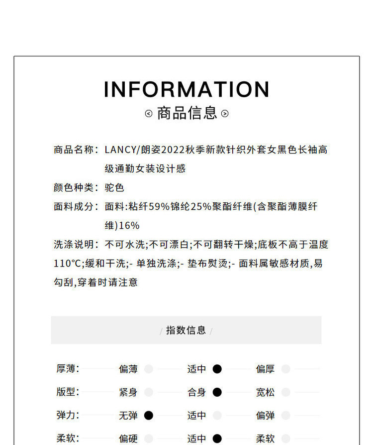 商品名称:春秋针织外套女驼色长袖高级通勤女装设计感 596889