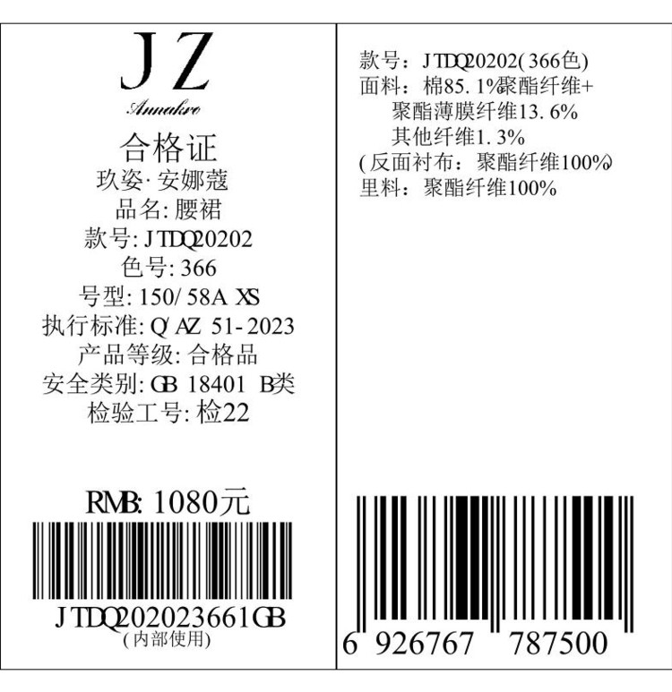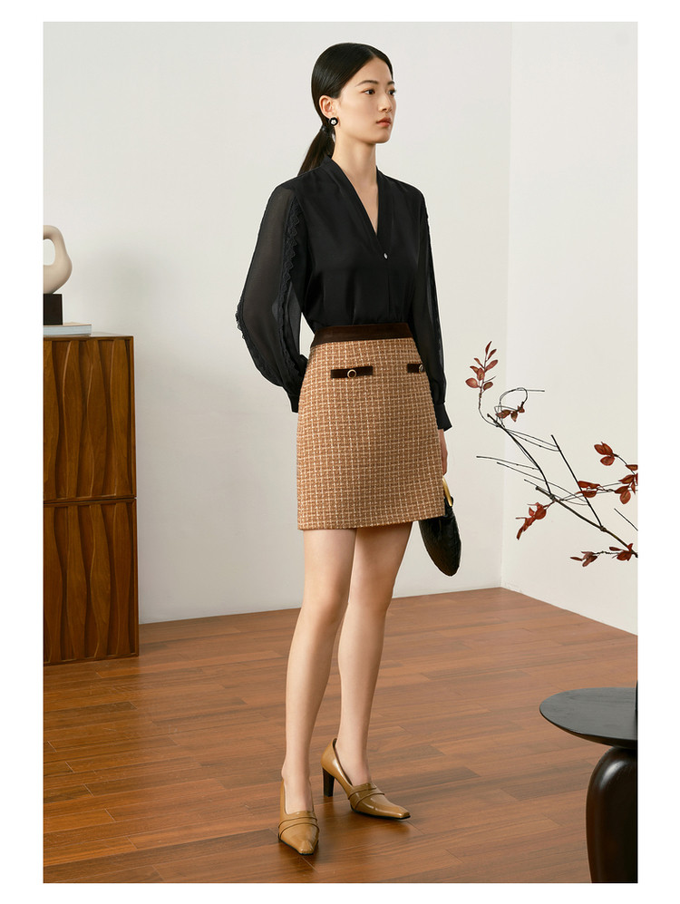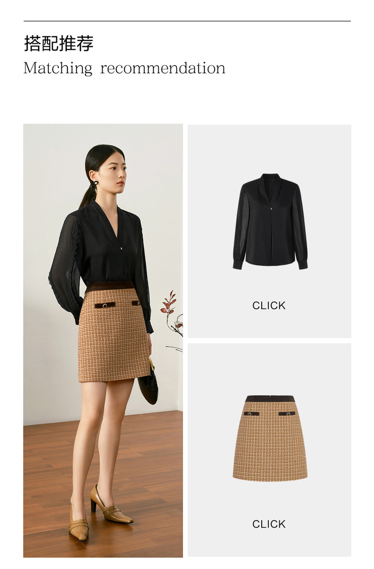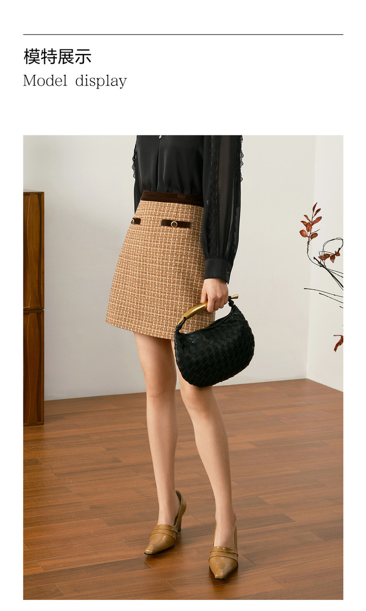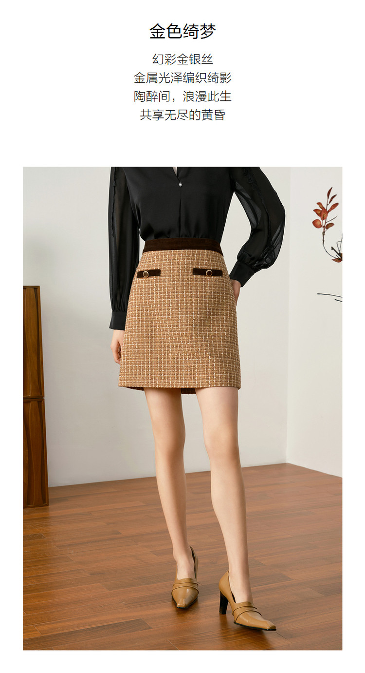 商品名称:玖姿旗下安娜蔻系列知性大气优雅小香风A字裙半身裙短裙女秋 708108