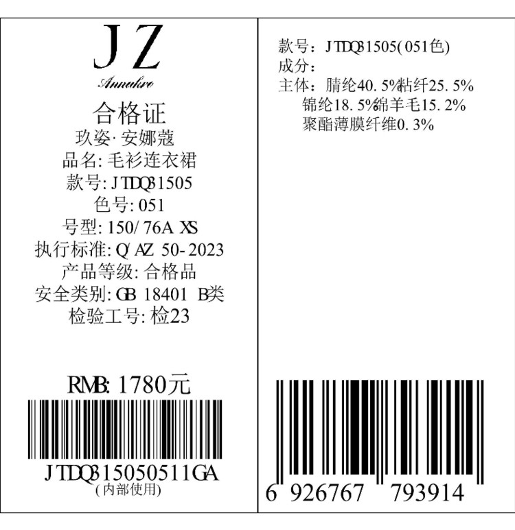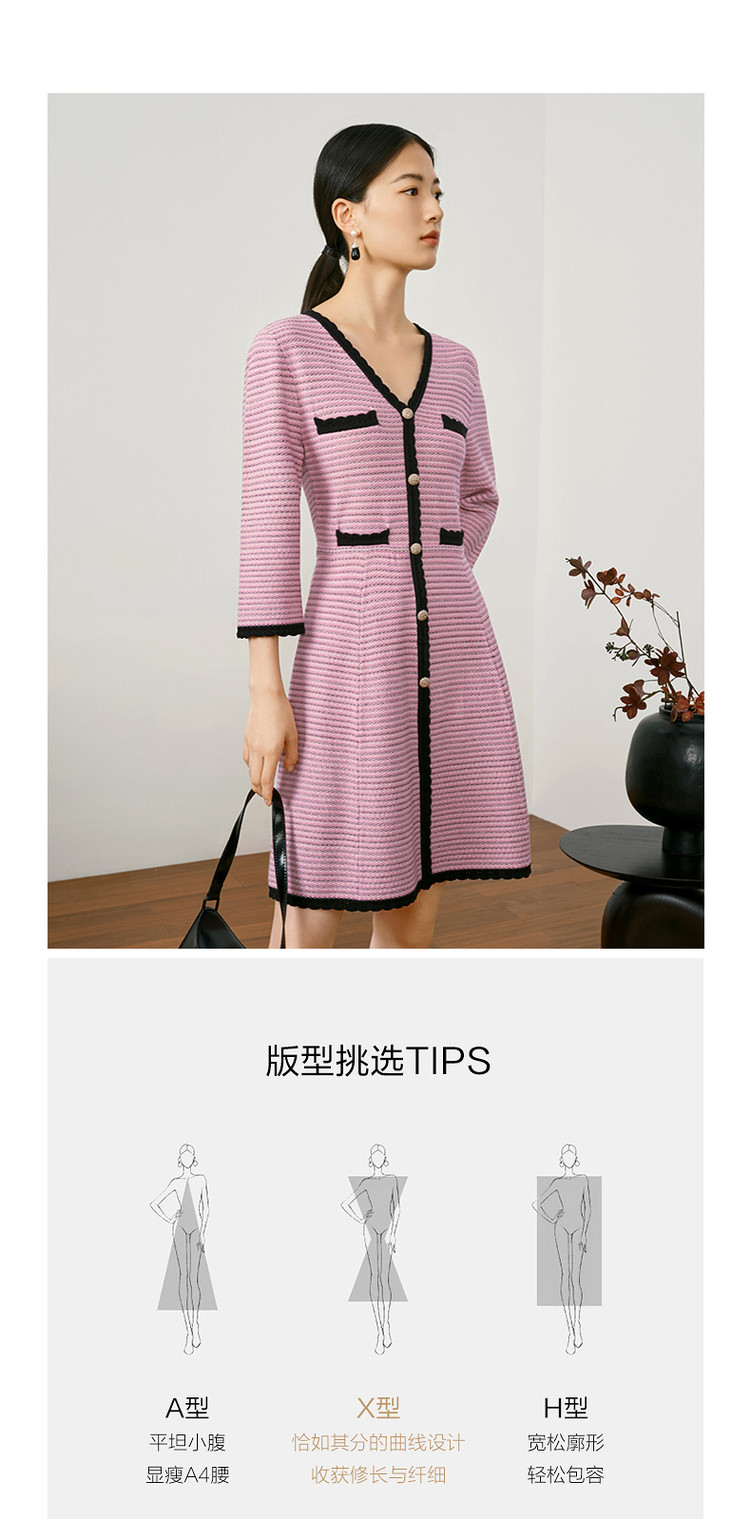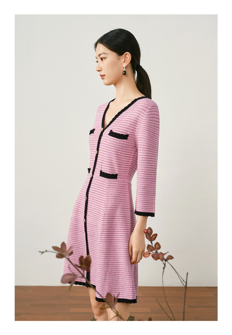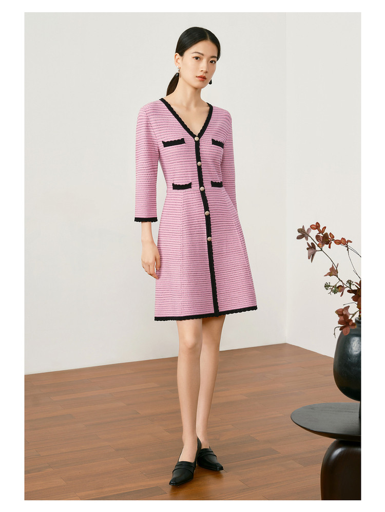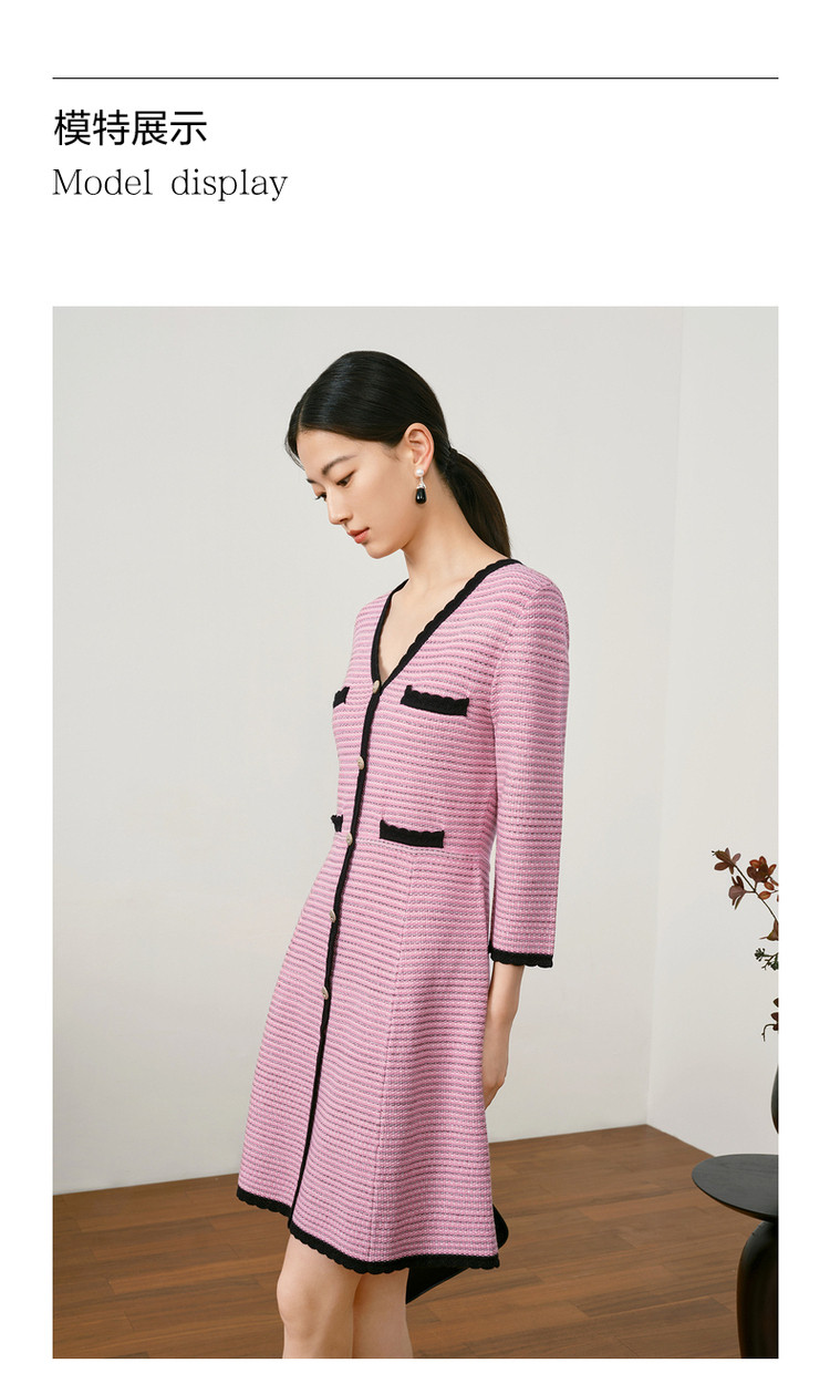 商品名称:玖姿旗下安娜蔻系列小香风V领套头毛衫针织连衣裙女秋季 936460