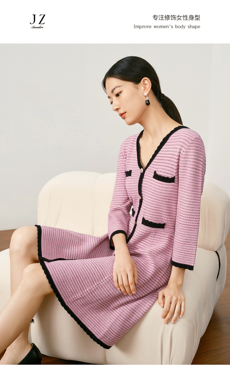 玖姿旗下安娜蔻系列小香风V领套头毛衫针织连衣裙女秋季 936460