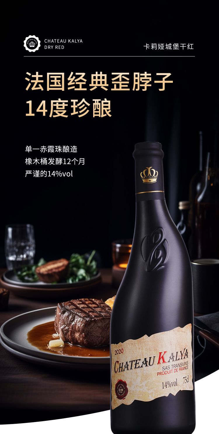 商品名称:法国进口原液卡莉娅城堡歪脖子干红葡萄酒750ml*2瓶 送礼袋海马刀