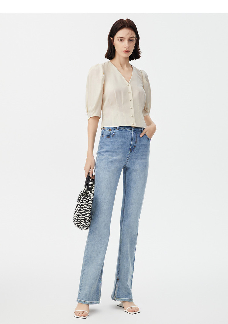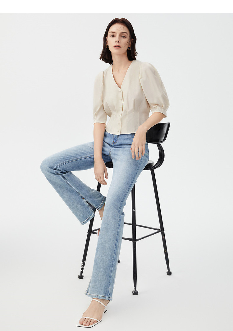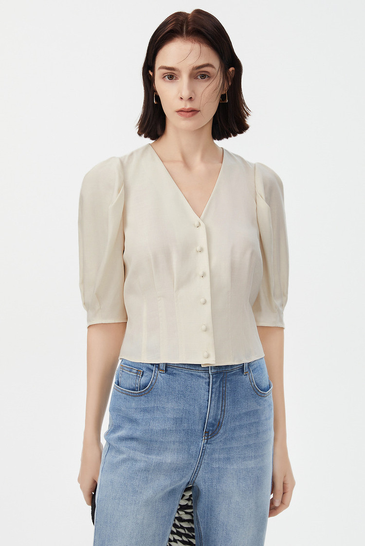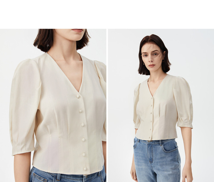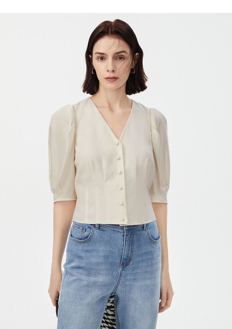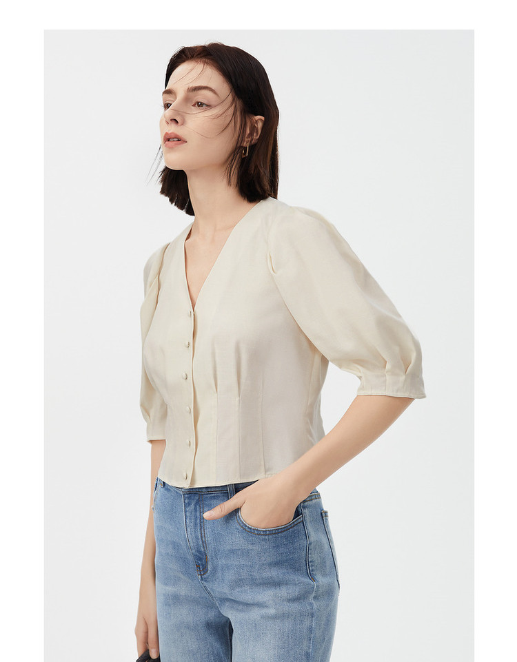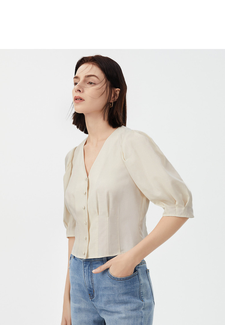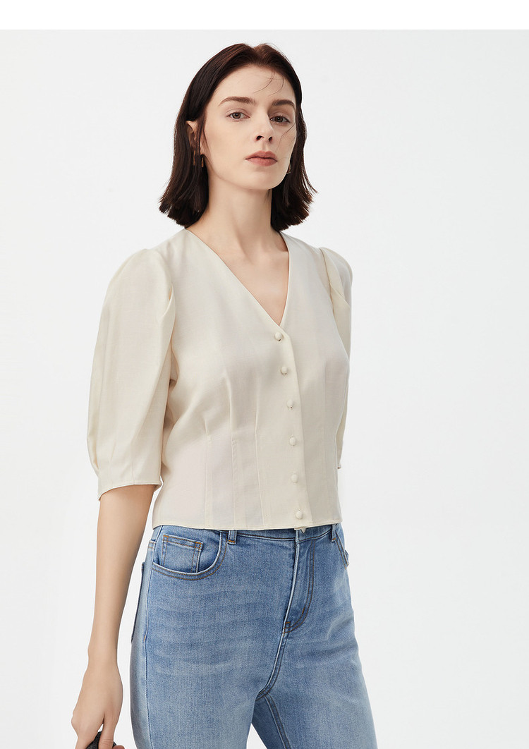 商品名称:天丝亚麻法式复古衬衫半袖衬衣夏上衣女设计感朗姿集团 245657