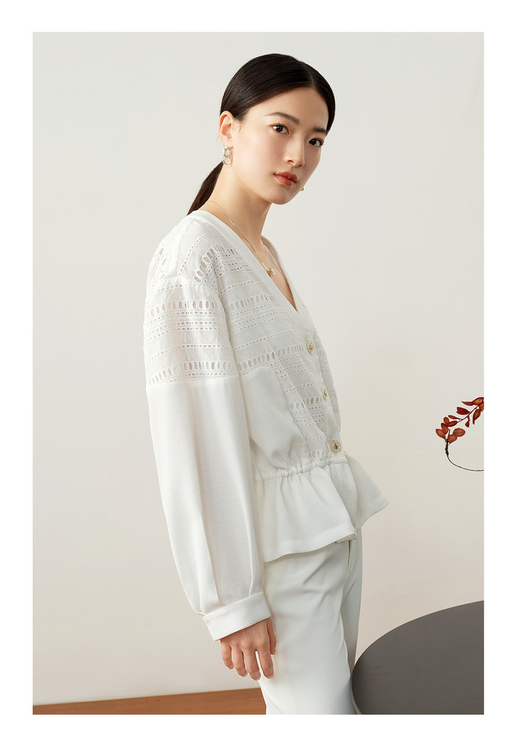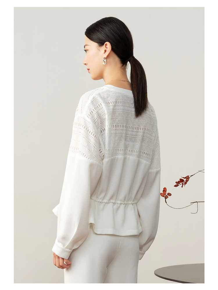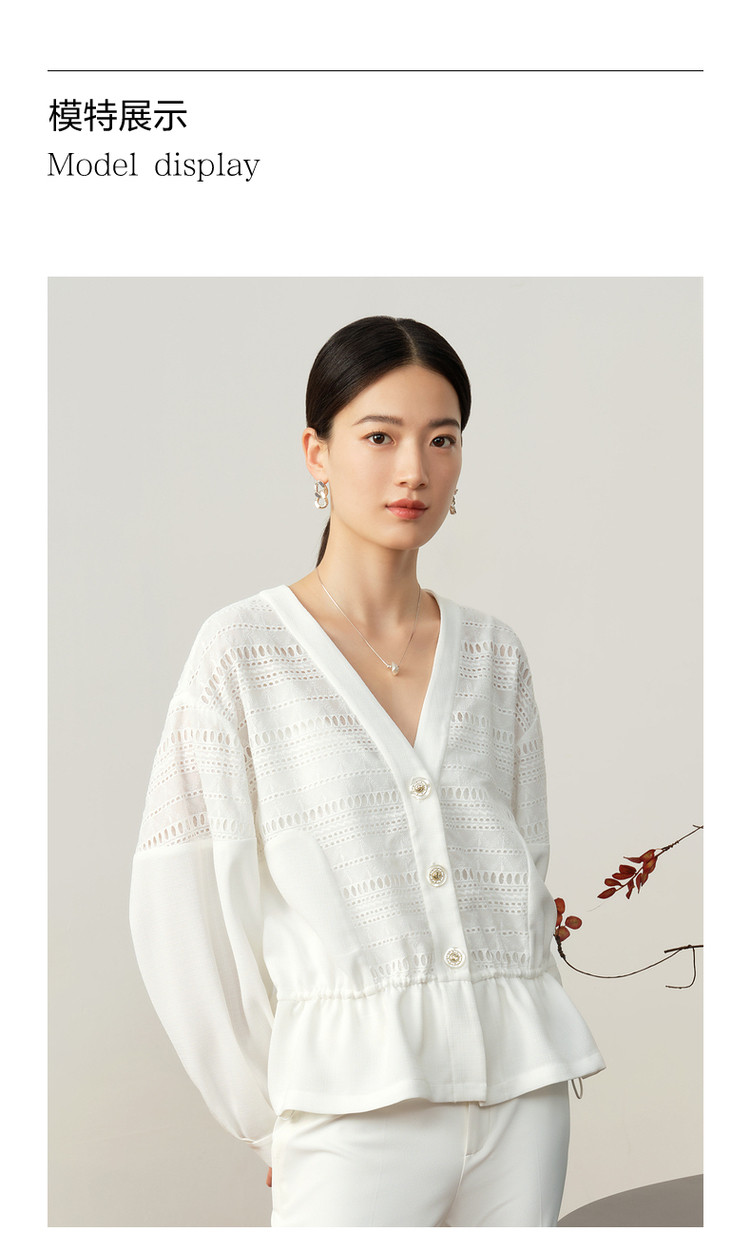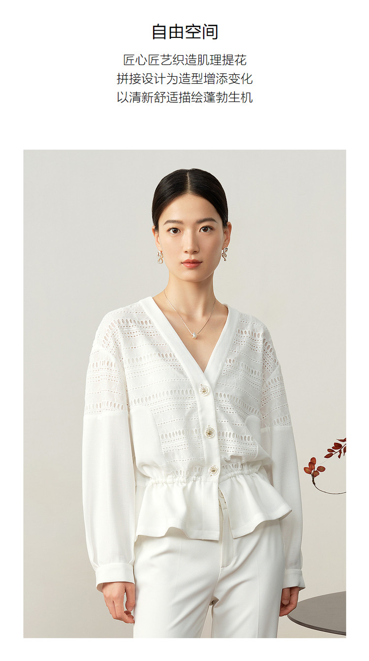 玖姿旗下安娜蔻系列轻熟风休闲镂空收腰拼接外套女秋季 352012