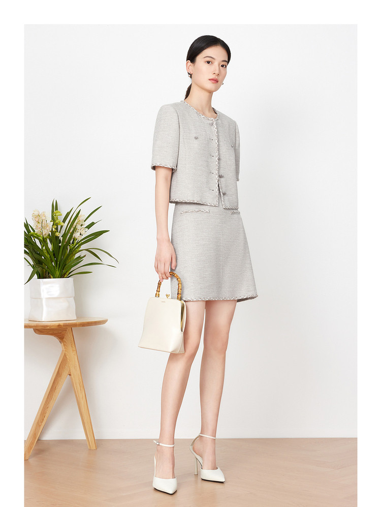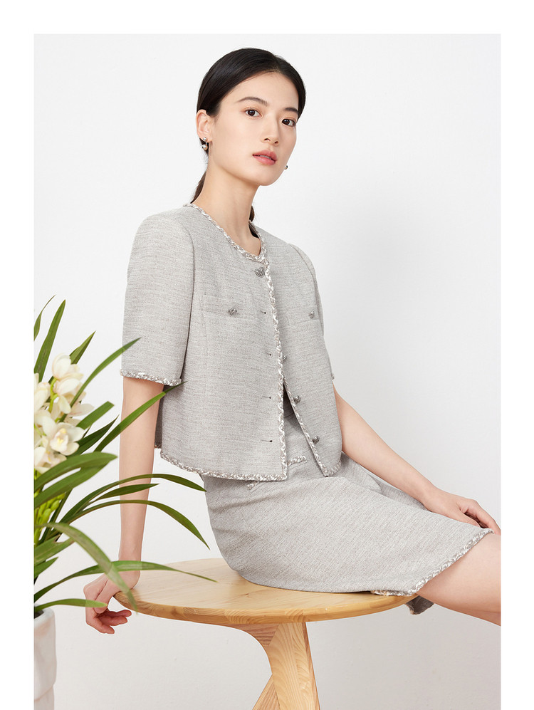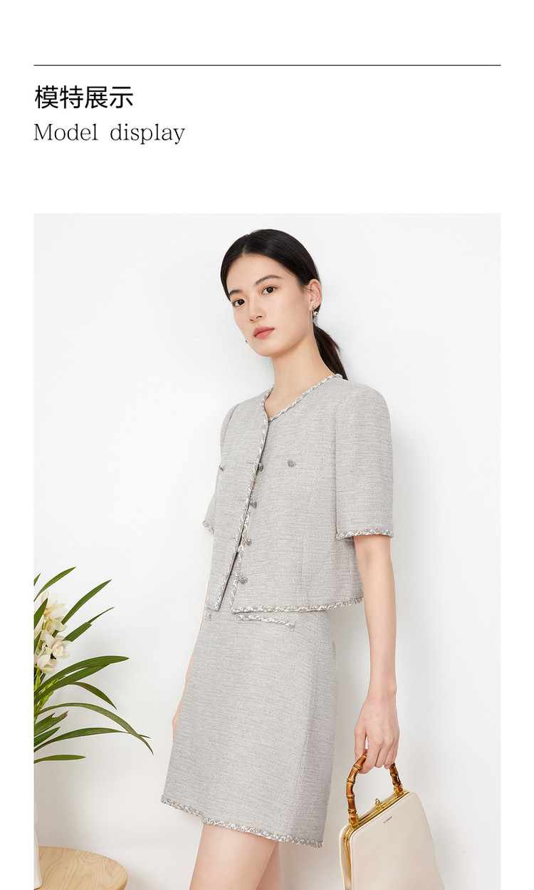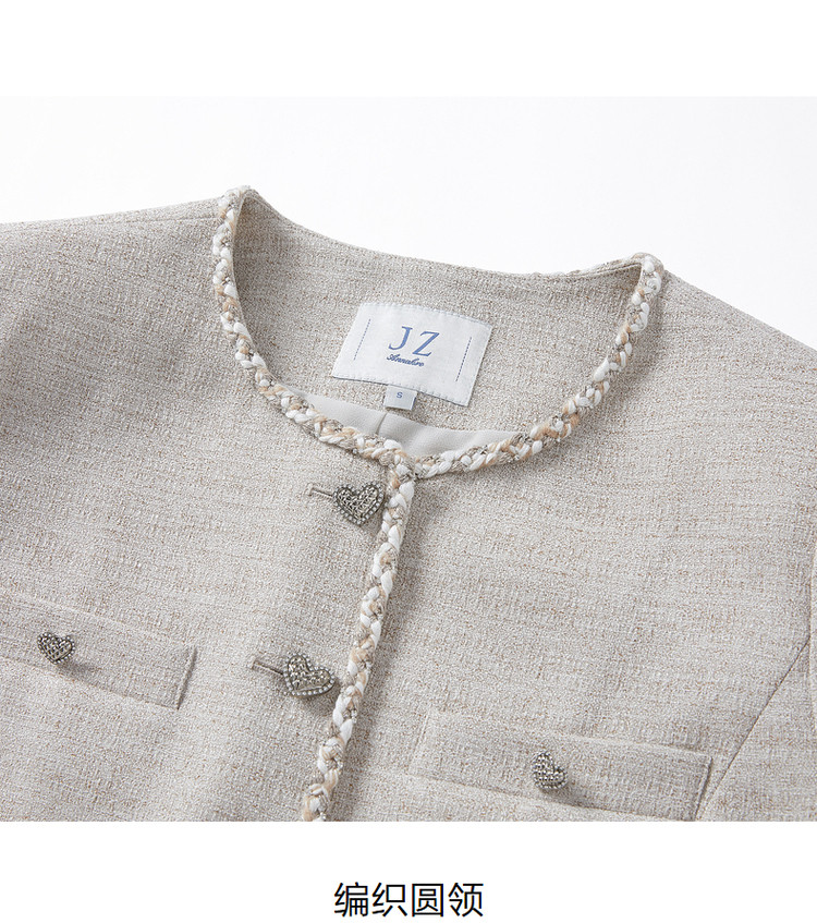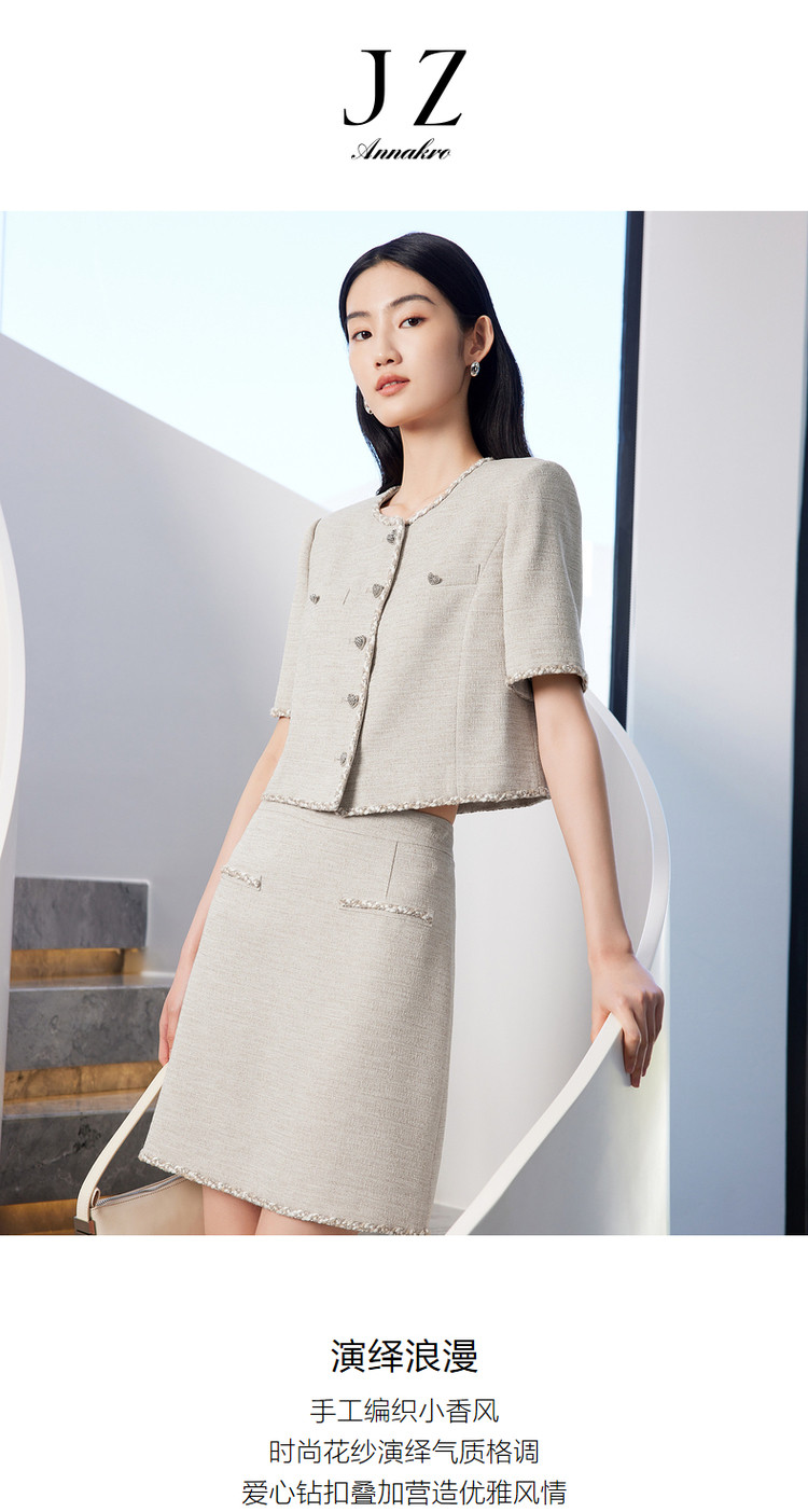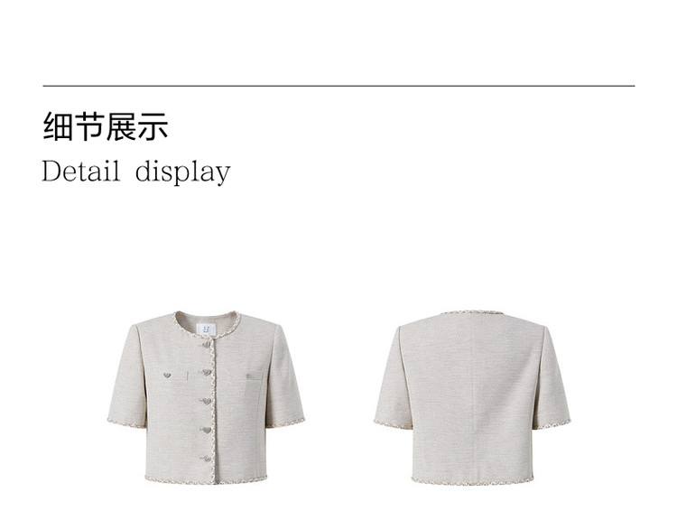 商品名称:玖姿旗下安娜蔻系列小香风短款外套女装夏季爱心花纱上衣 541004