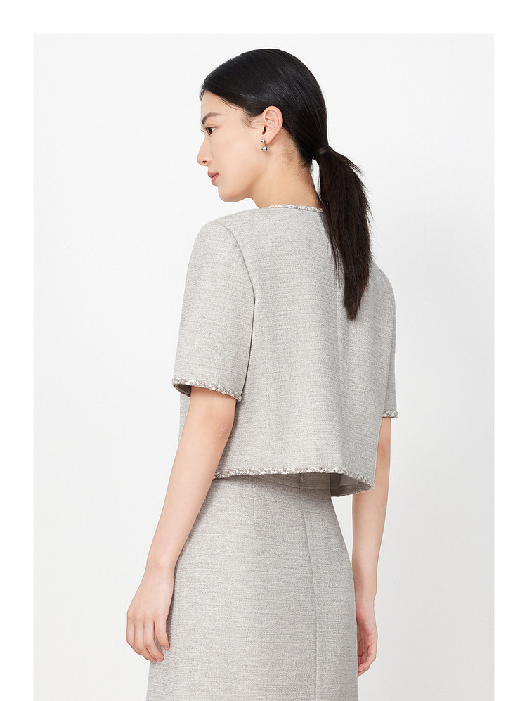 玖姿旗下安娜蔻系列小香风短款外套女装夏季爱心花纱上衣 541004