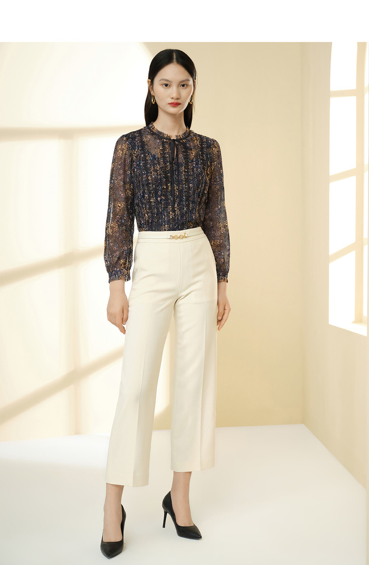 商品名称:复古碎花网纱上衣女春季优雅系带时尚小衫商场同款 552524