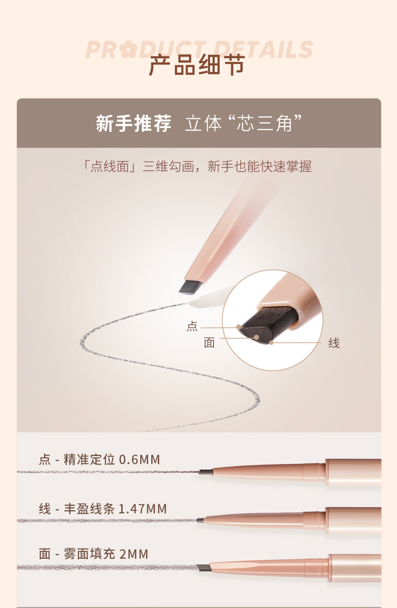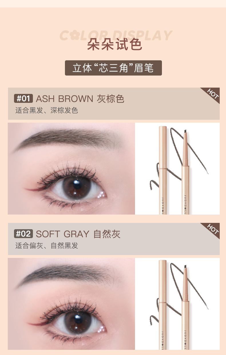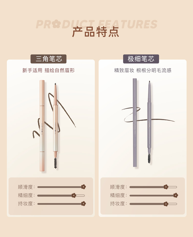 商品名称:Judydoll/橘朵 极细眉笔细头旋转自然持久不脱色耐汗显色顺滑