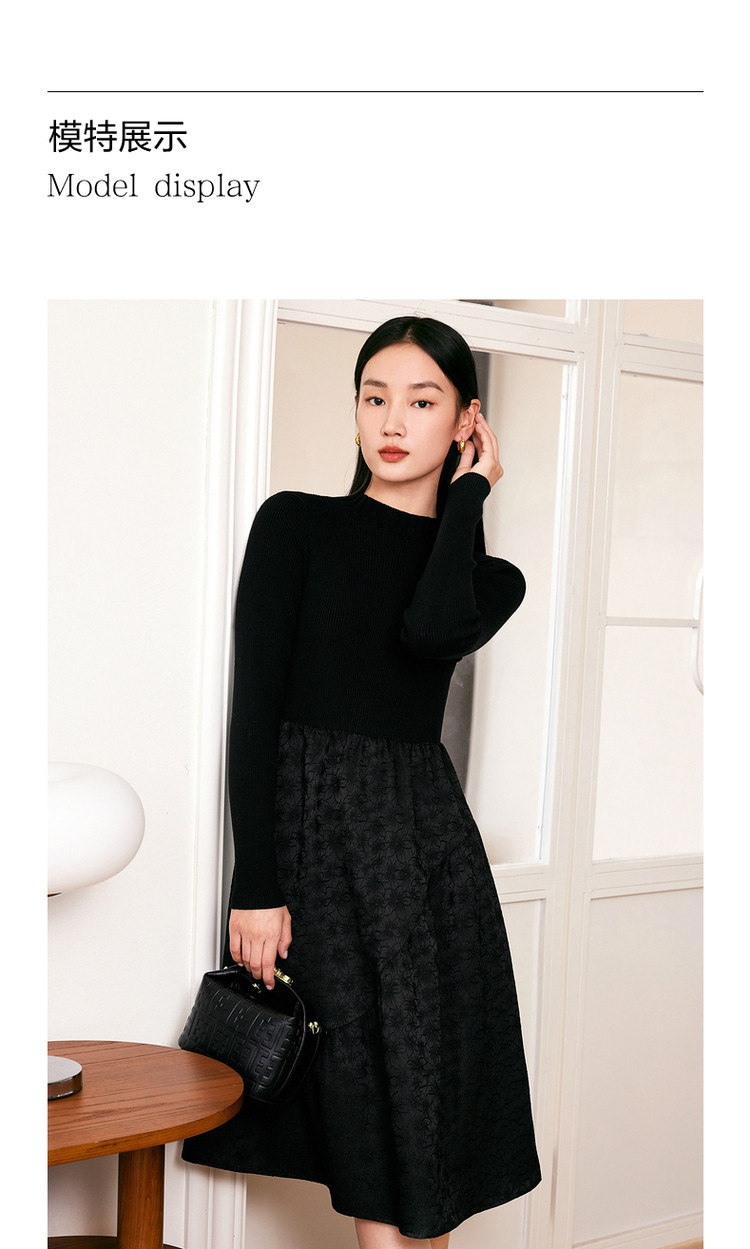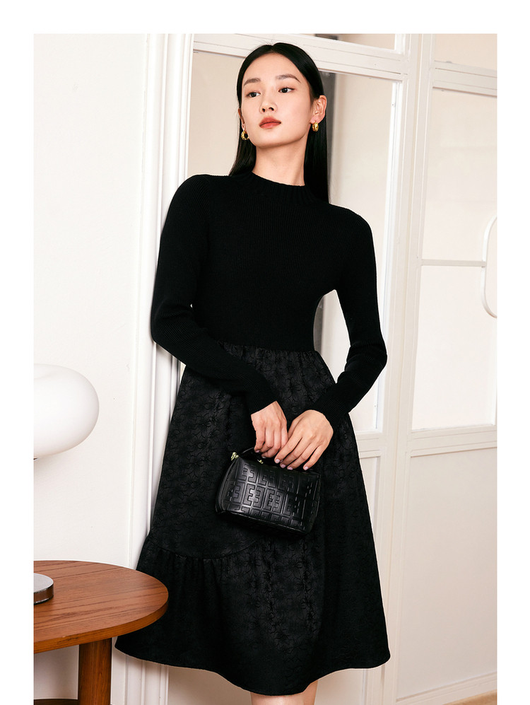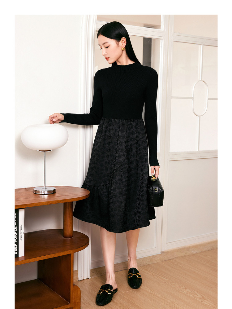 商品名称:半高领针织连衣裙女装春季小众设计感花卉裙子 775052
