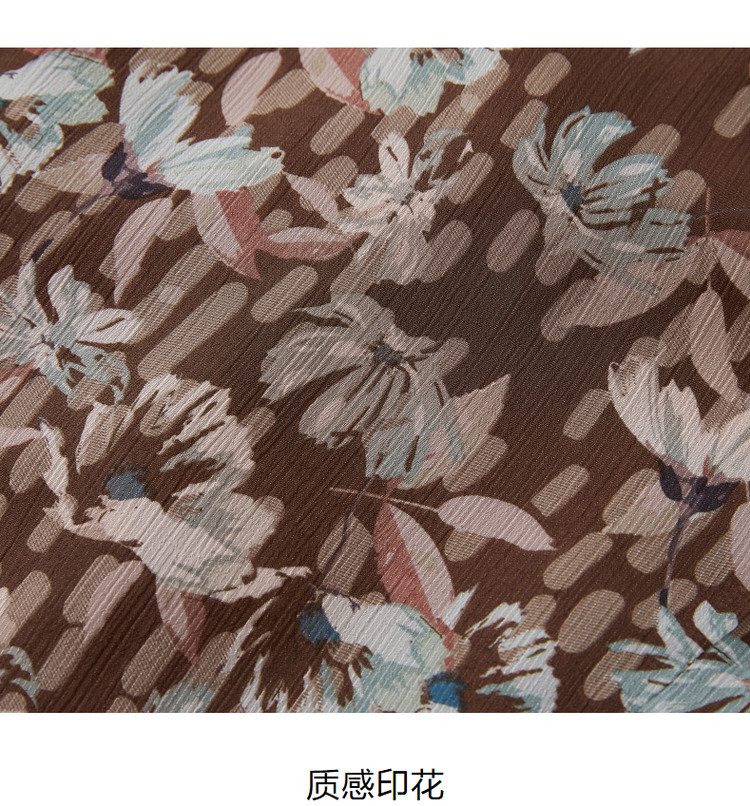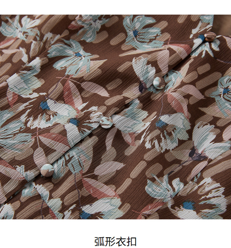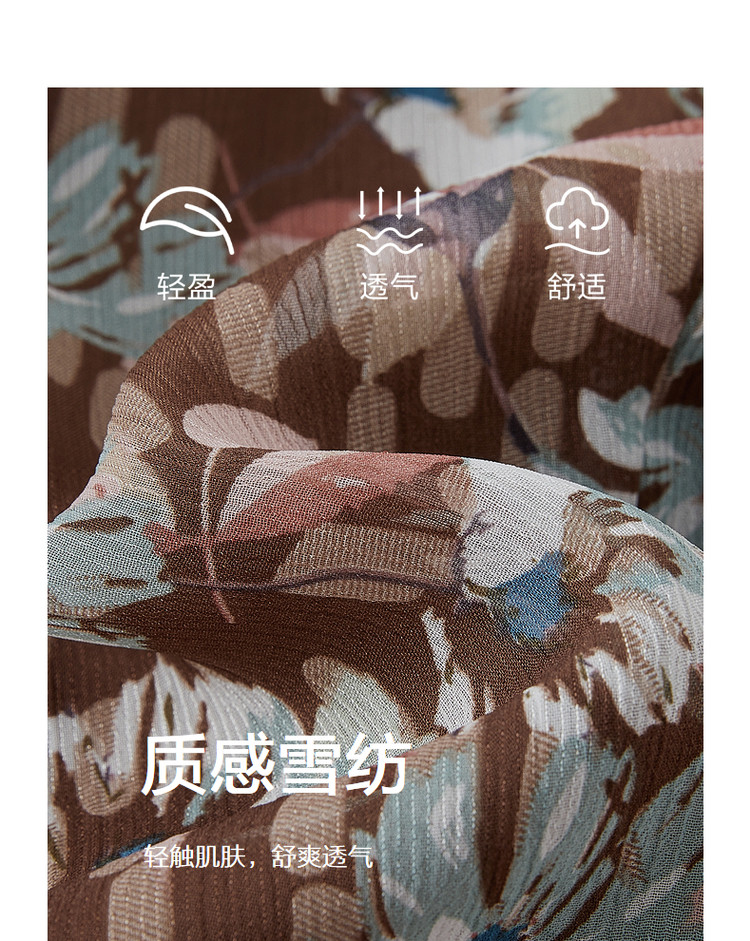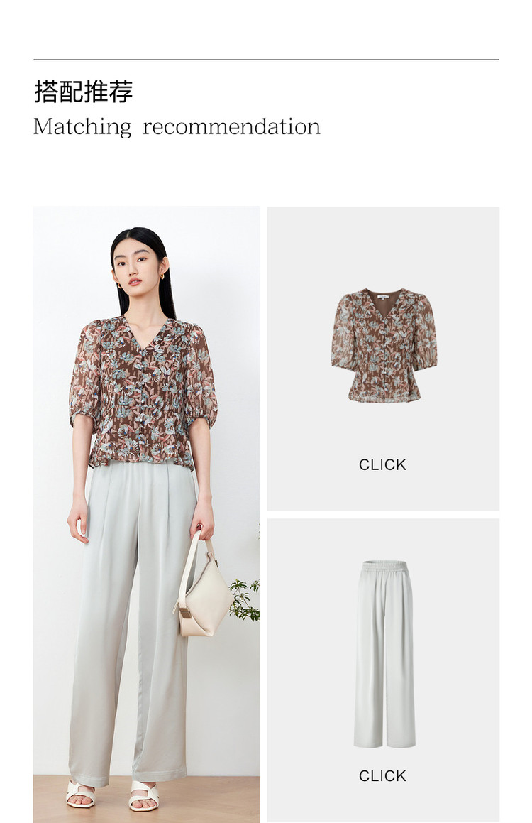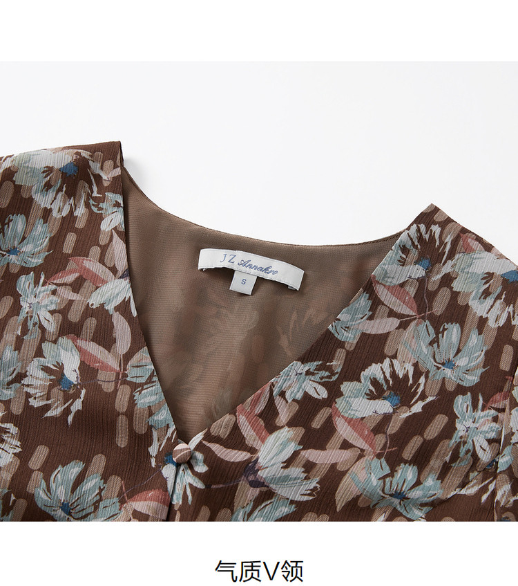 商品名称:玖姿旗下安娜蔻系列印花雪纺衬衫女装夏季V领泡泡袖轻盈感上衣 086028