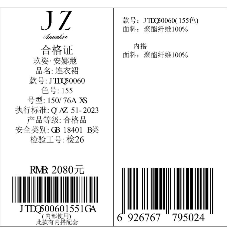 | 尺码 | 裙长(cm) | 肩宽(cm) | 腰围(cm) | 袖长(cm) | 胸围(cm) | 号型 |