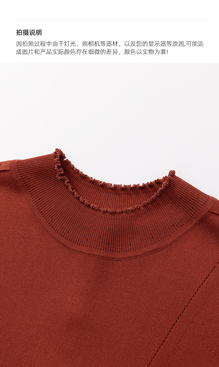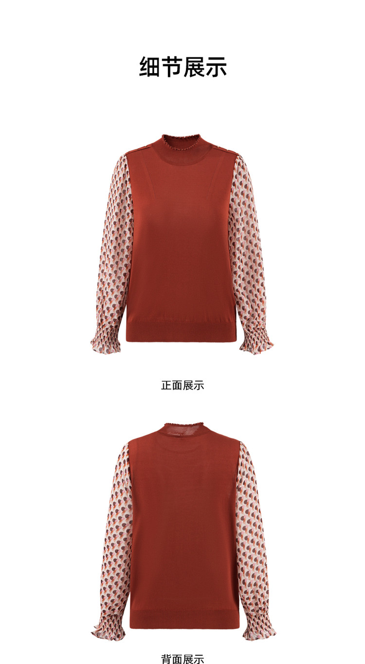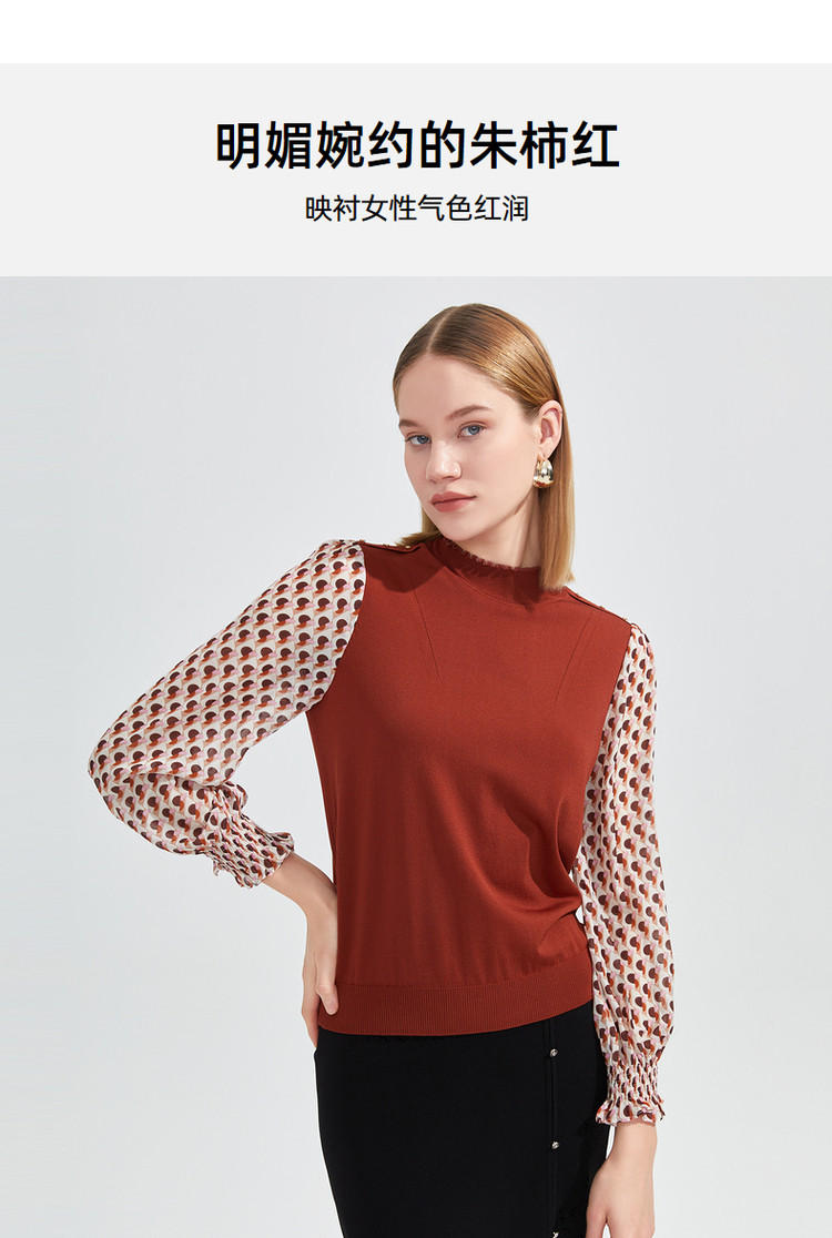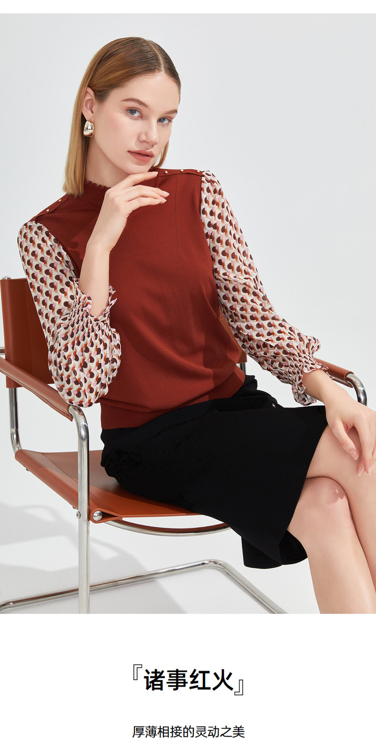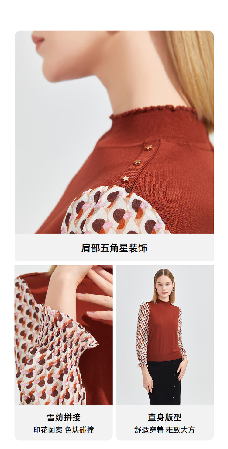 商品名称:JZ玖姿假两件时尚气质花边小衫女春季雪纺拼接针织衫 254732