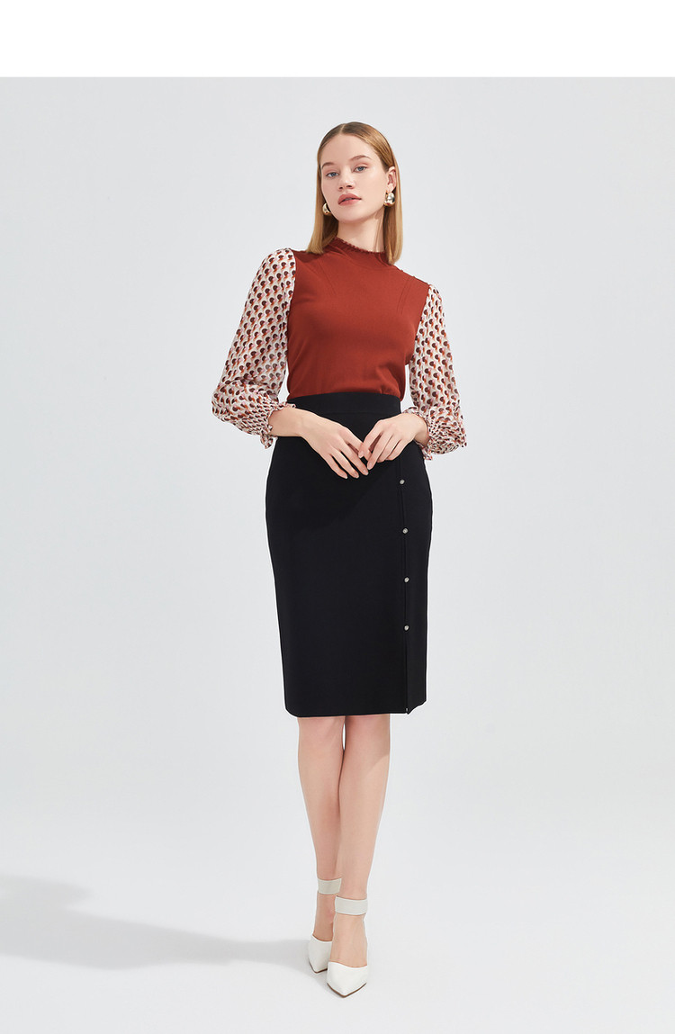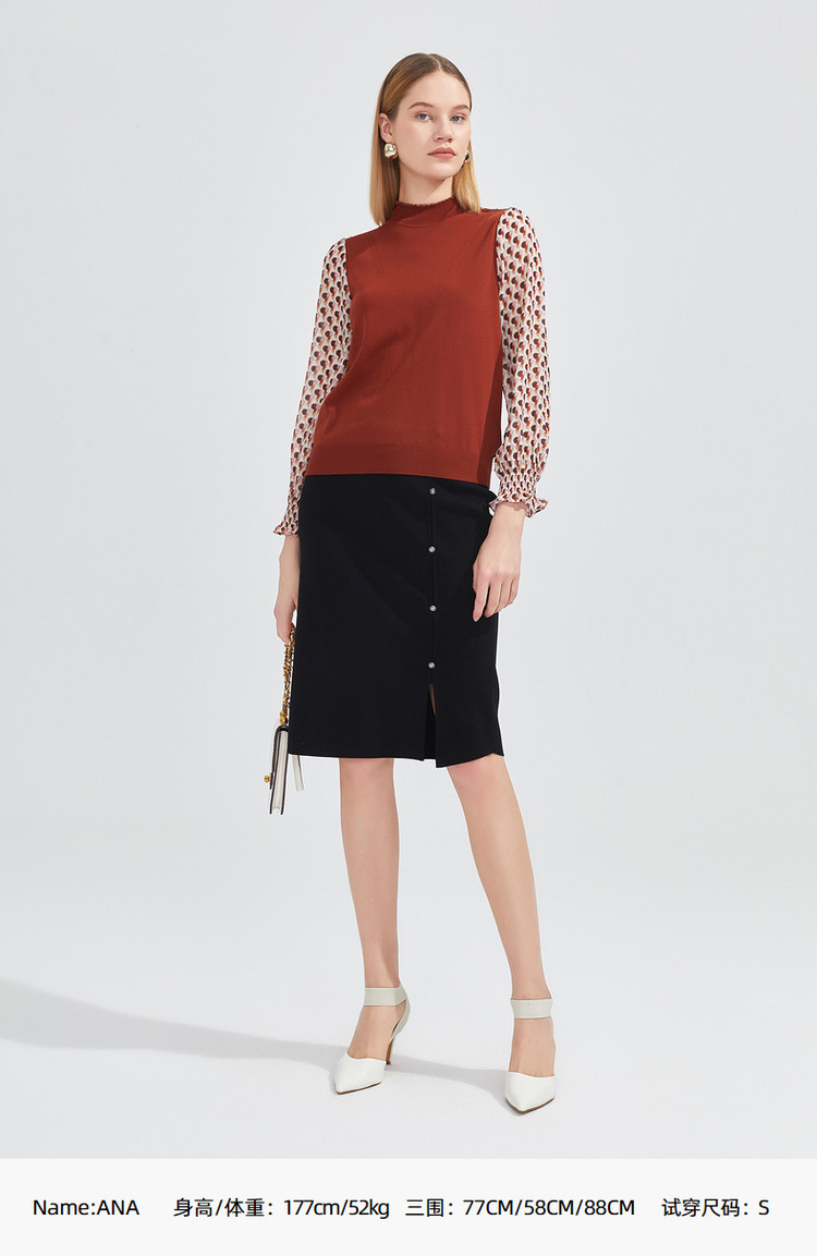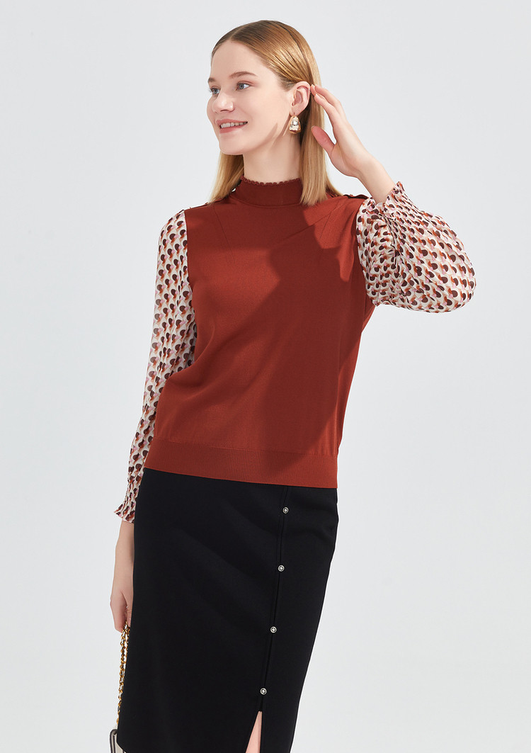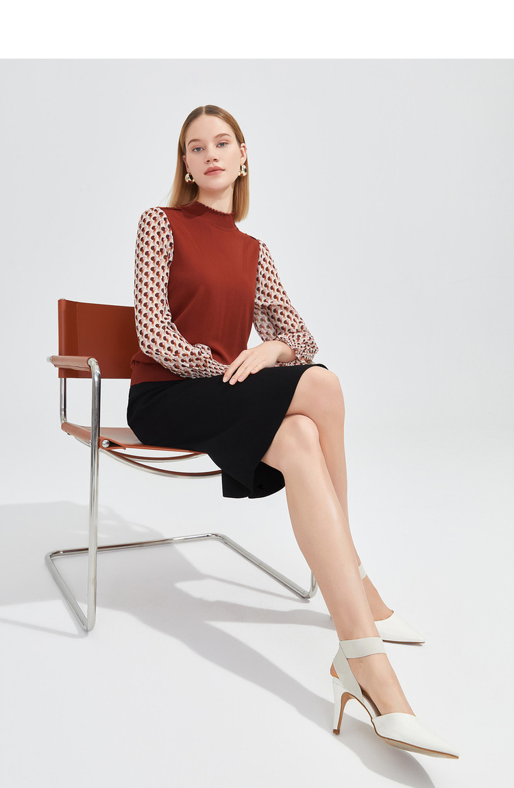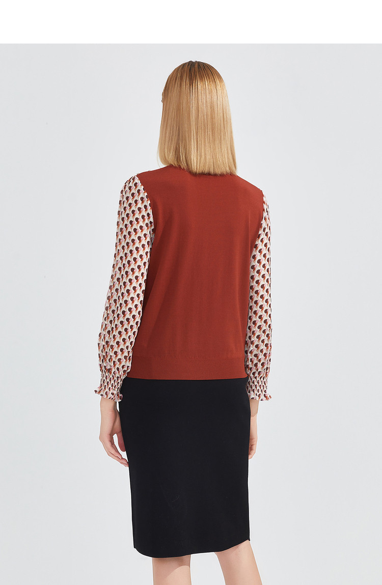 商品名称:JZ玖姿假两件时尚气质花边小衫女春季雪纺拼接针织衫 254732