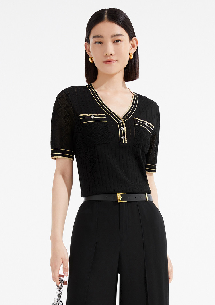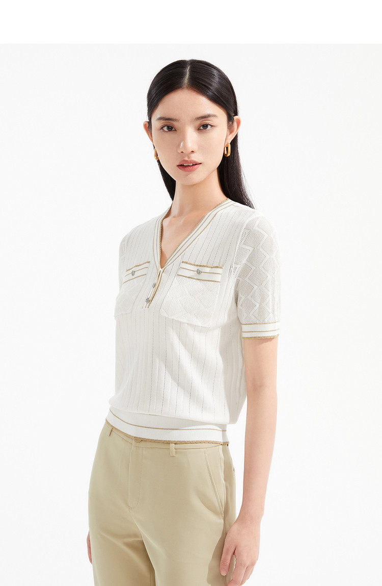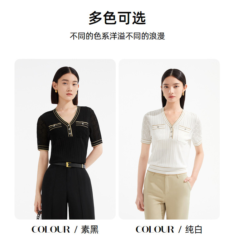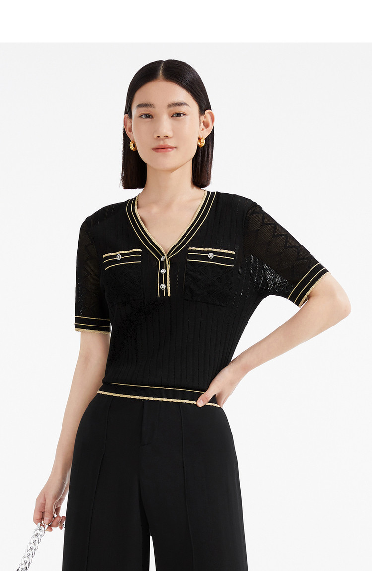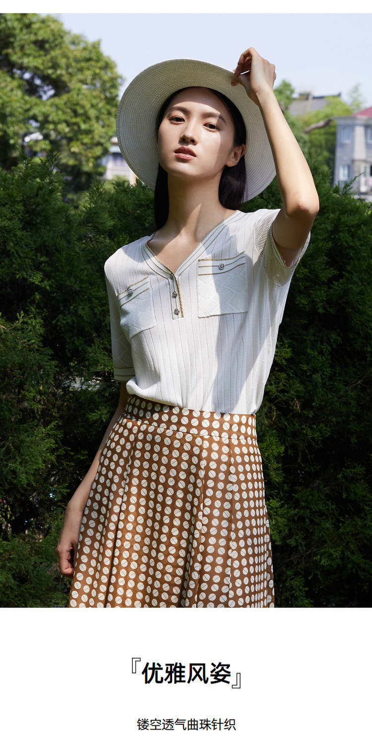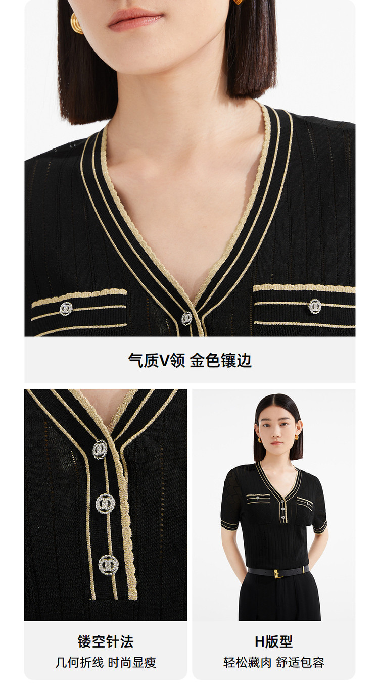 商品名称:JZ玖姿商场同款小香风镂空针织衫女装夏季上衣 756364
