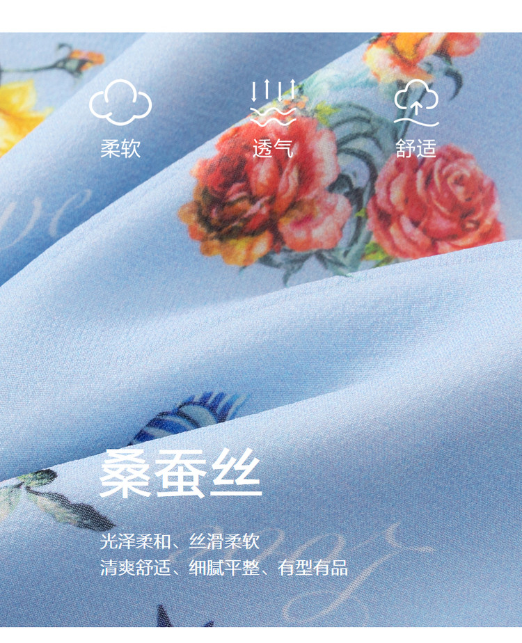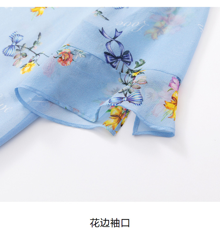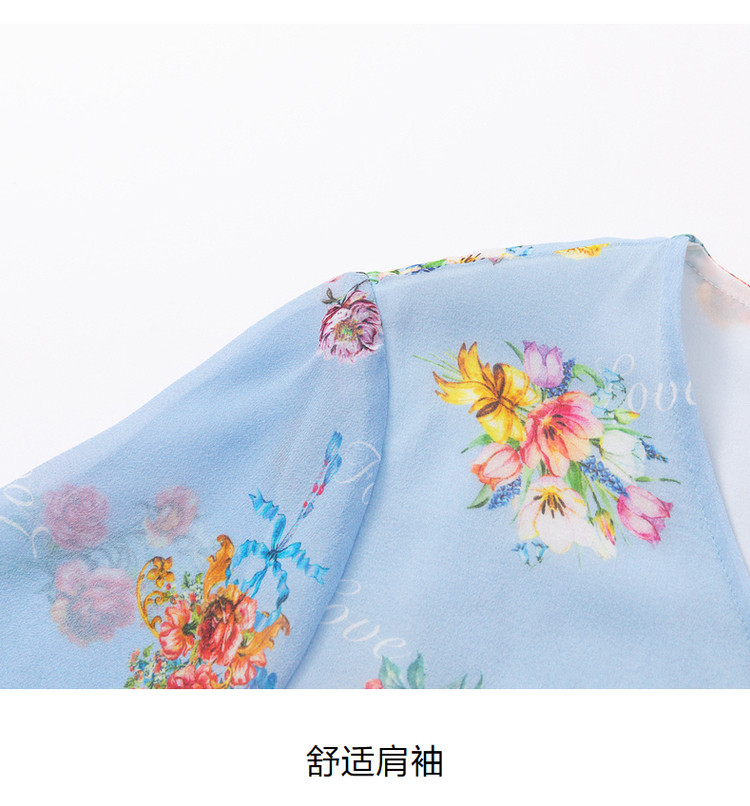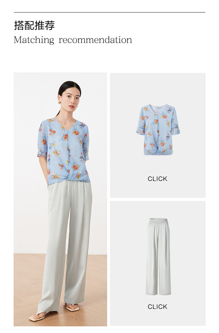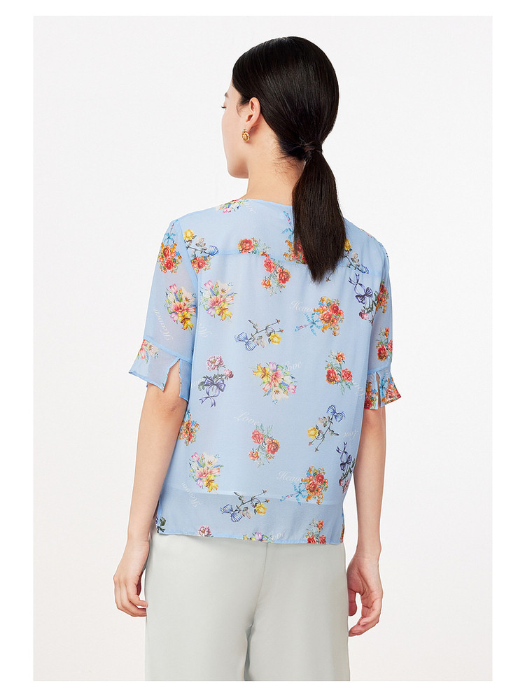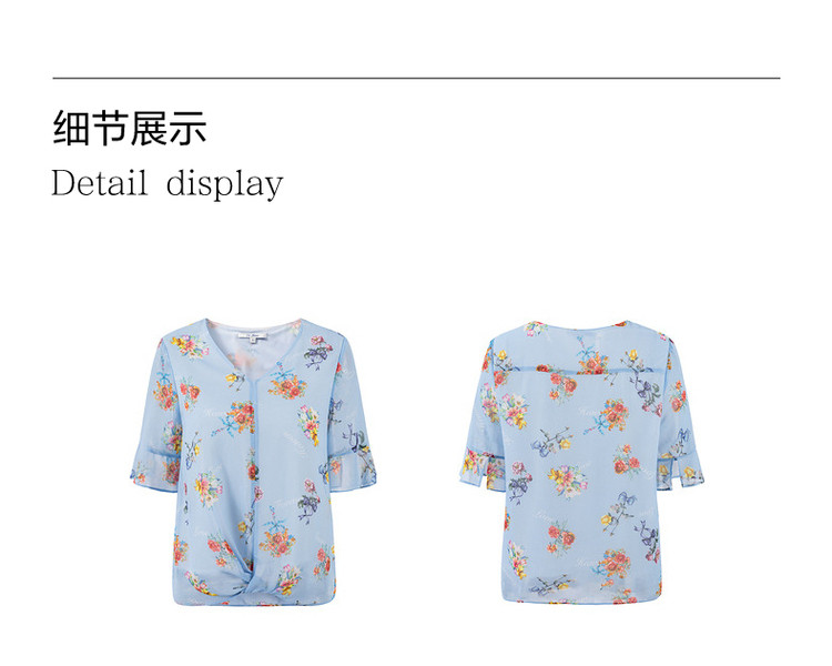 商品名称:玖姿夏季花卉点缀时尚V领桑蚕丝女式T恤 519628