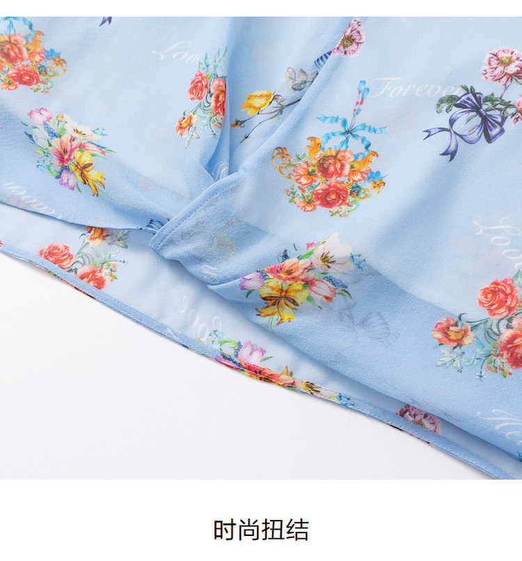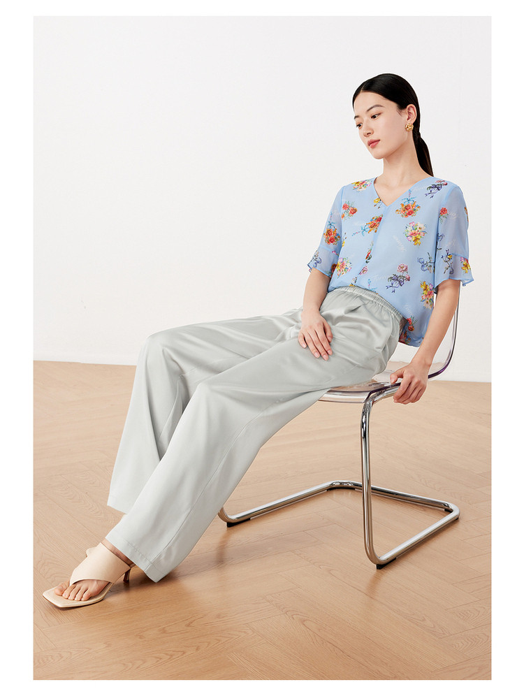 玖姿夏季花卉点缀时尚V领桑蚕丝女式T恤 519628