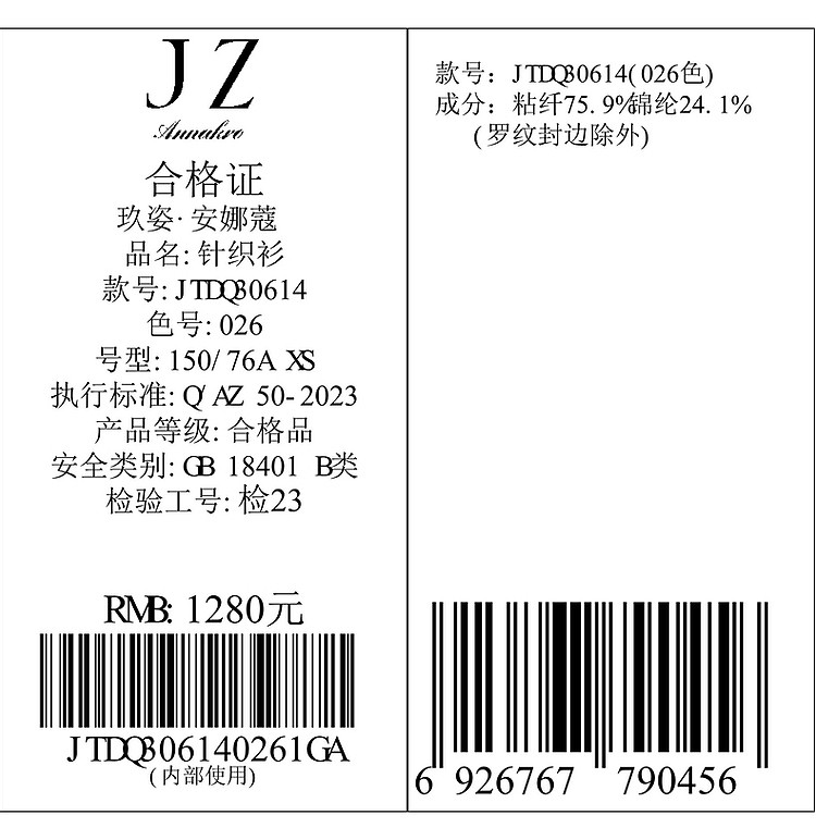 商品名称:玖姿旗下安娜蔻系列休闲提花H型伊力特长袖套头毛衫女秋季 752460