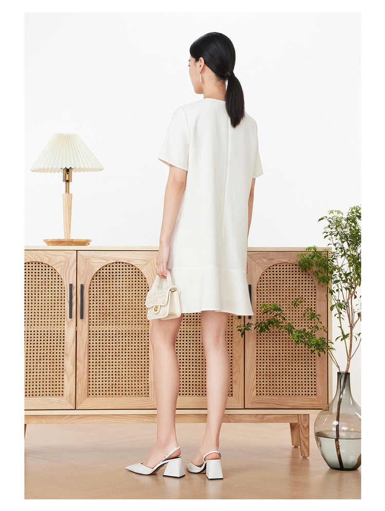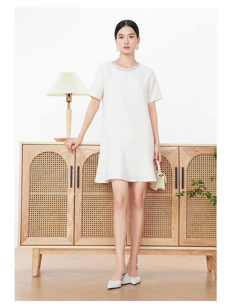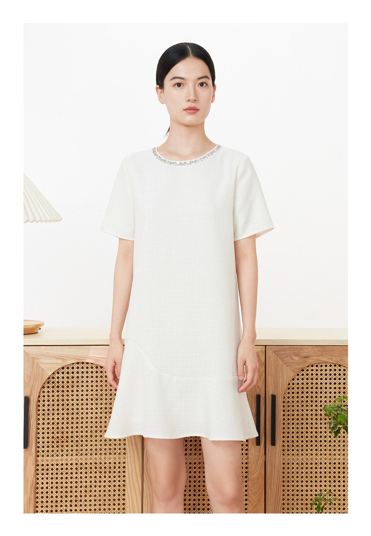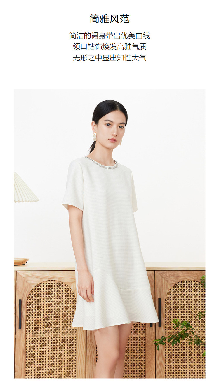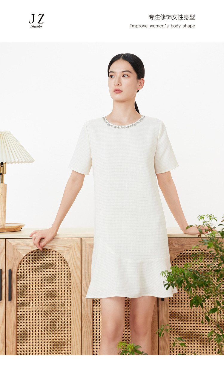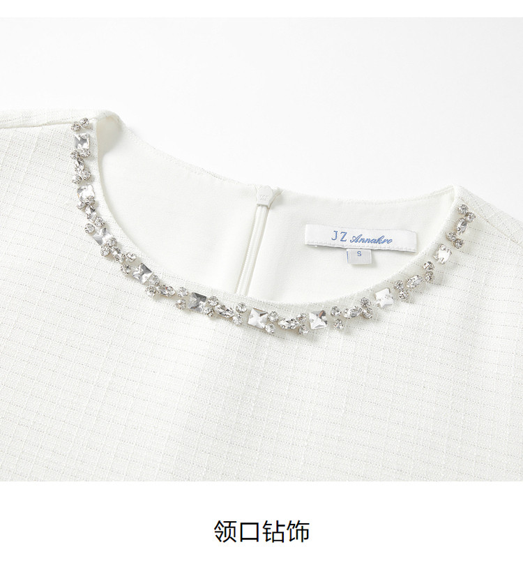 商品名称:玖姿旗下安娜蔻系列法式小香风钻饰花呢格纹中长款连衣裙夏新 420940