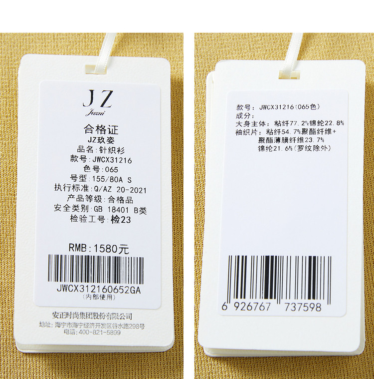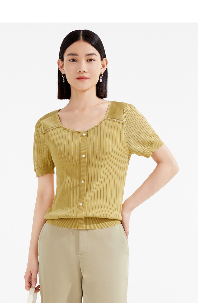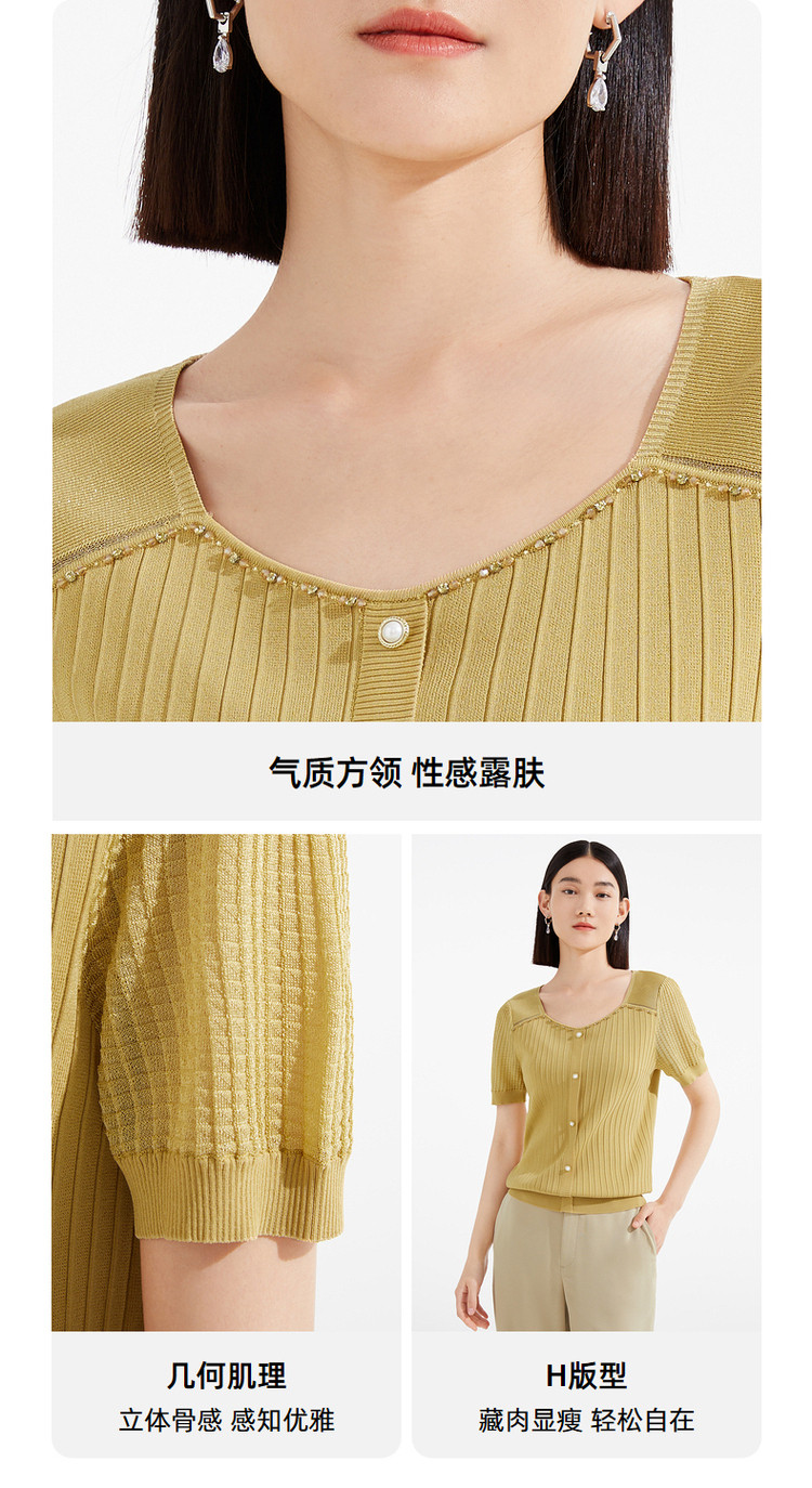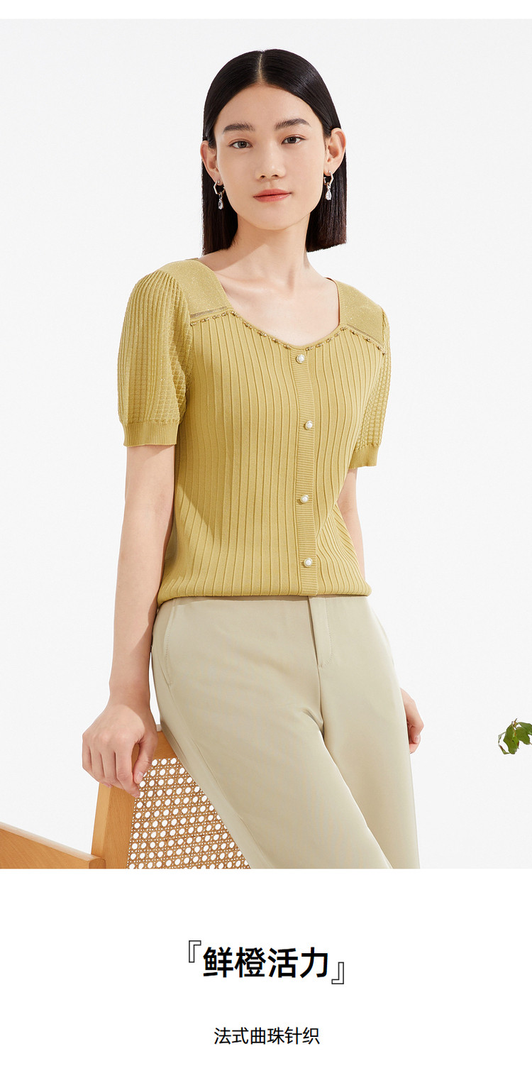 商品名称:JZ玖姿商场同款法式方领针织衫女装夏季上衣JWCX31216 486284