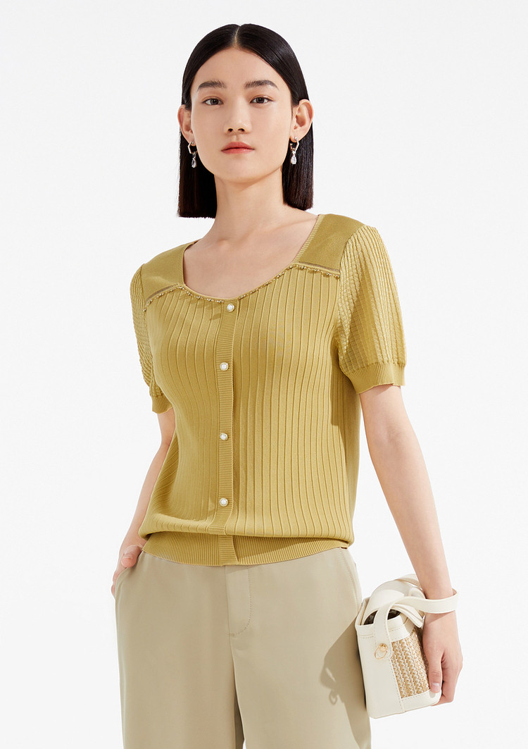 JZ玖姿商场同款法式方领针织衫女装夏季上衣JWCX31216 486284