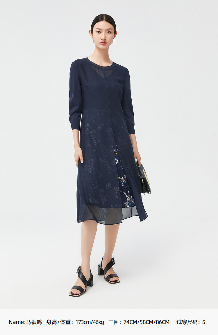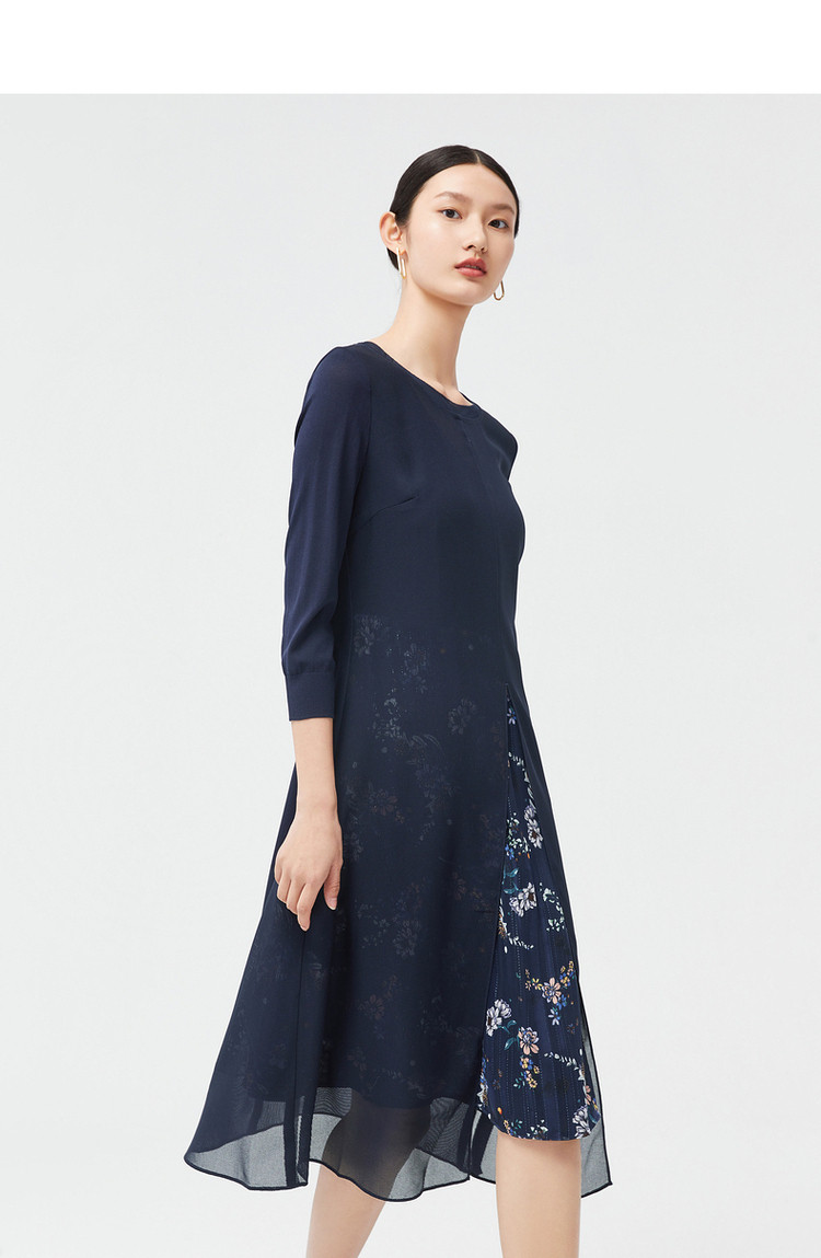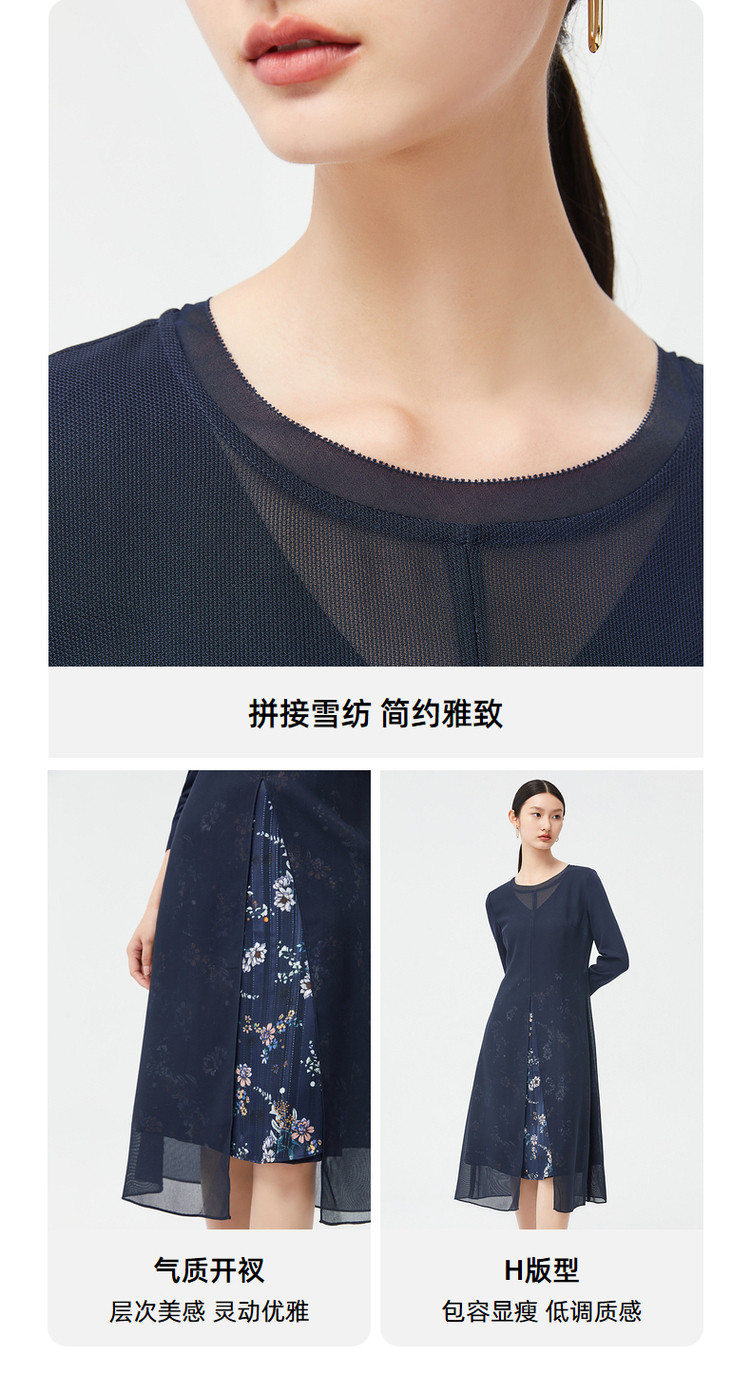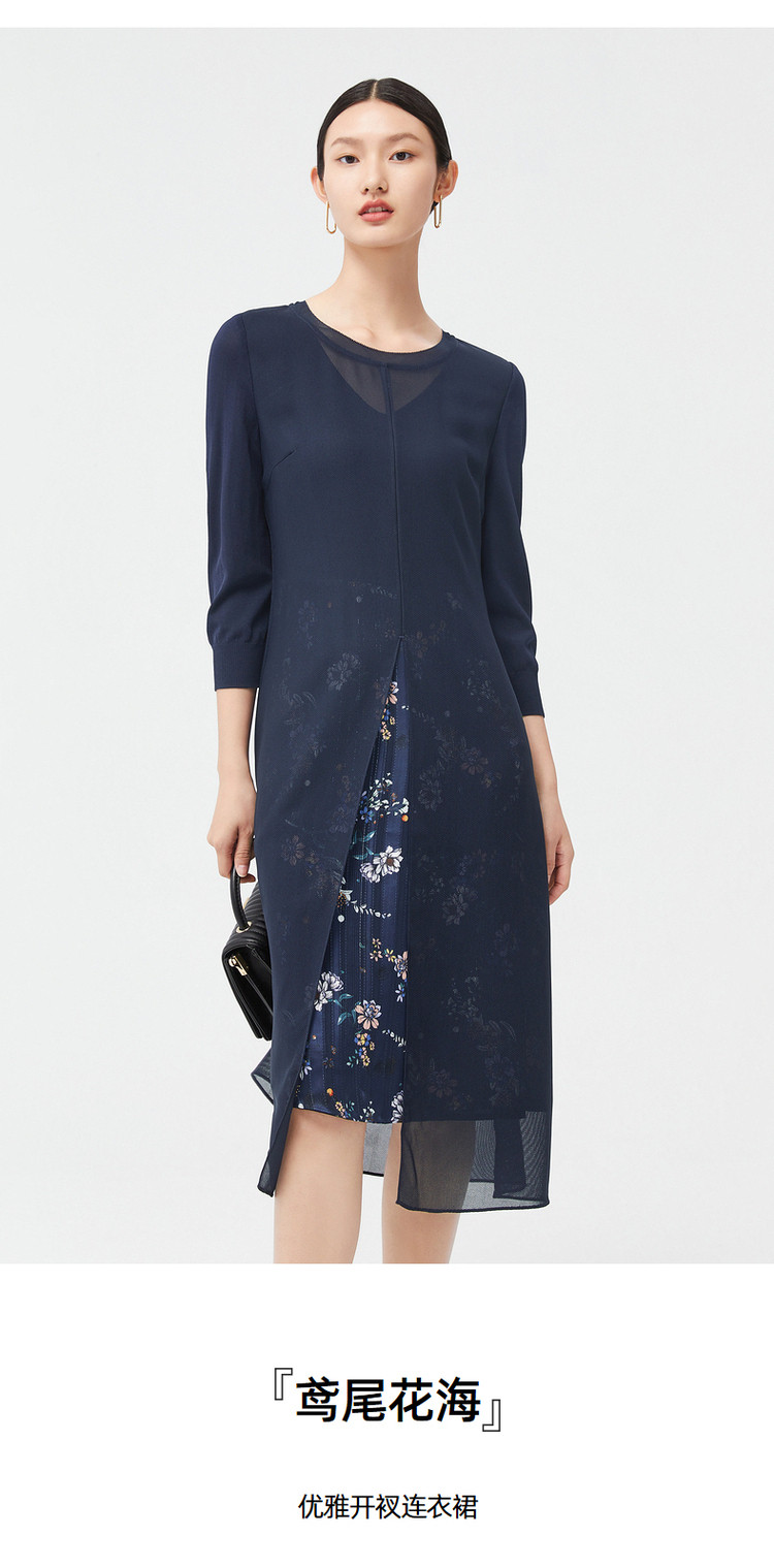 商品名称:JZ玖姿秋季优雅鸢尾花气质开叉拼接连衣裙 542220